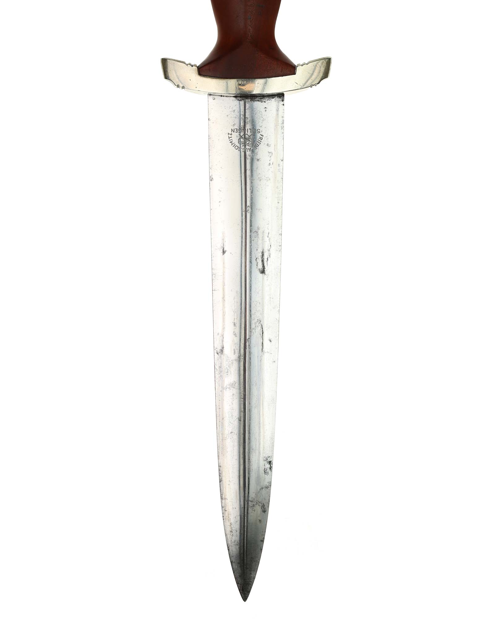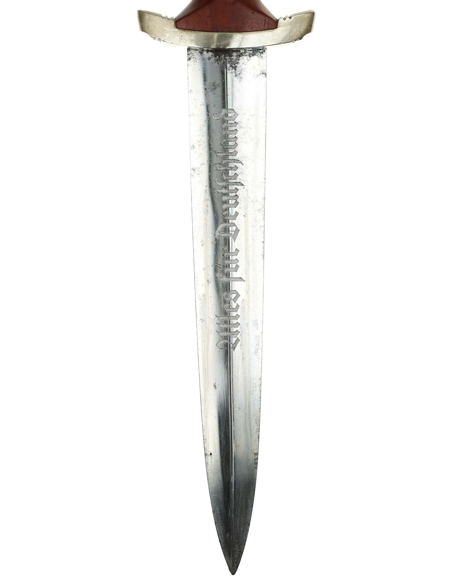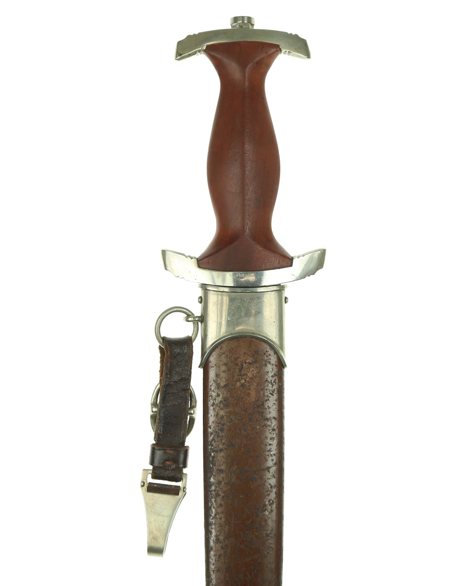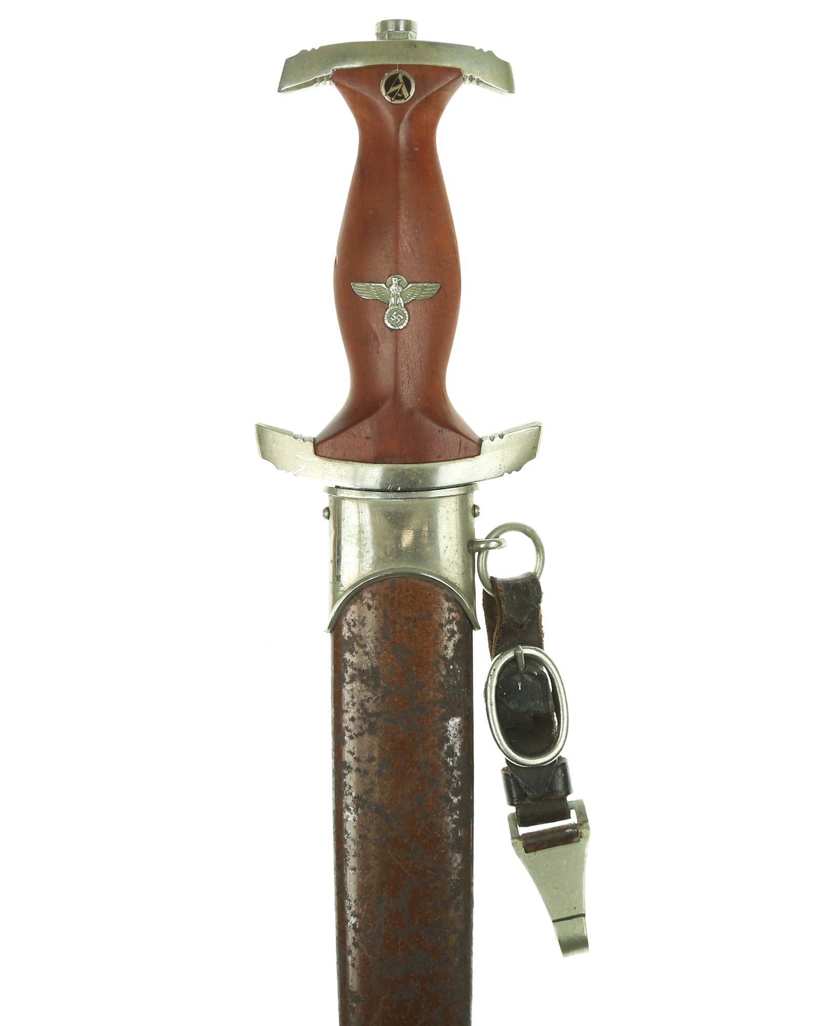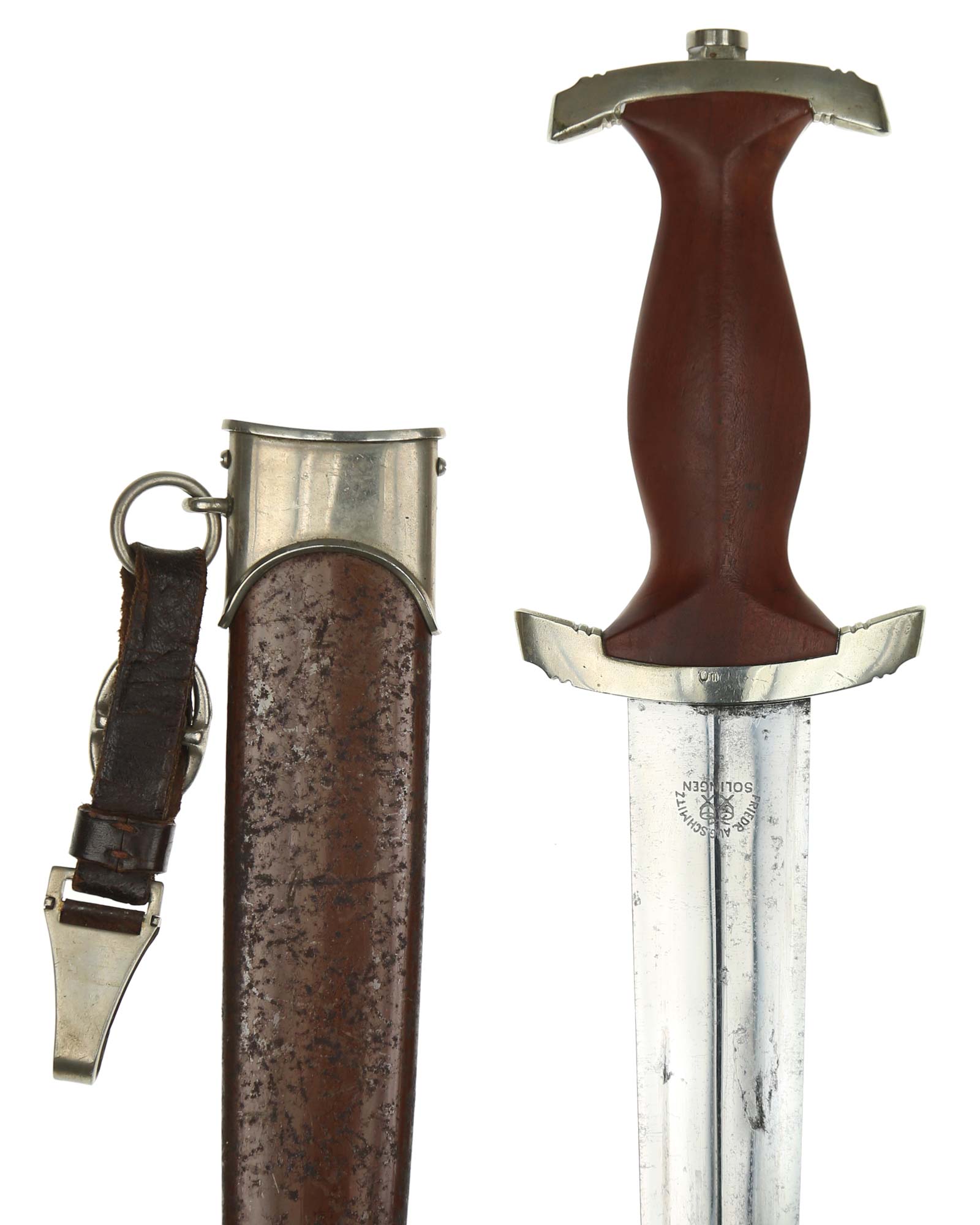 Dienstdolch der Sturmabteilung [SA] in früher Fertigung 1933-1935, mit Hersteller: Friedrich Aug. Schmitz Solingen. Untere Parierstange mit Gruppenstempelung «Om» Ostmark.