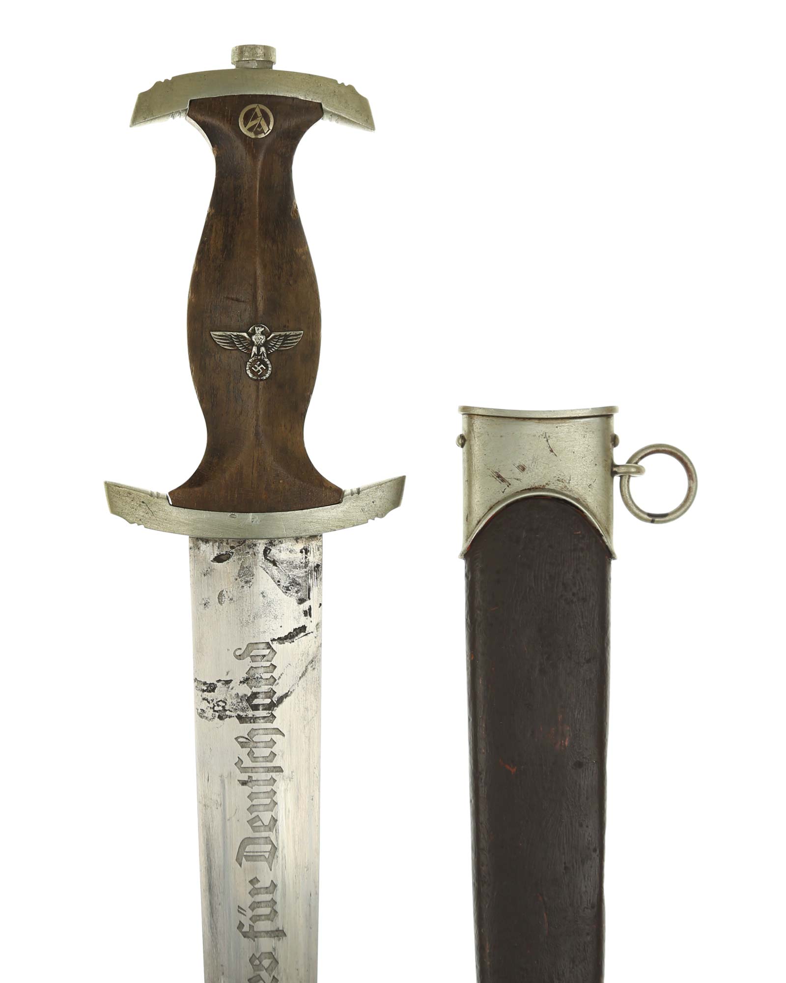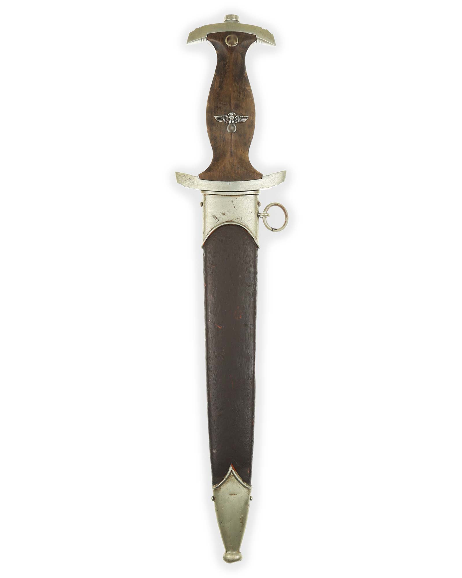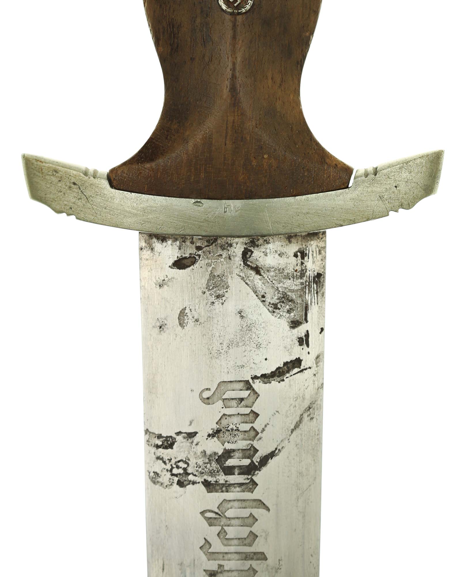 Dienstdolch der Sturmabteilung [SA] in früher Fertigung 1933-1935, mit sehr seltenem Suhler Hersteller auf der Klinge: Wilh. Kober & Co. Suhl. Untere Parierstange mit passender Gruppenstempelung He für Hessen.