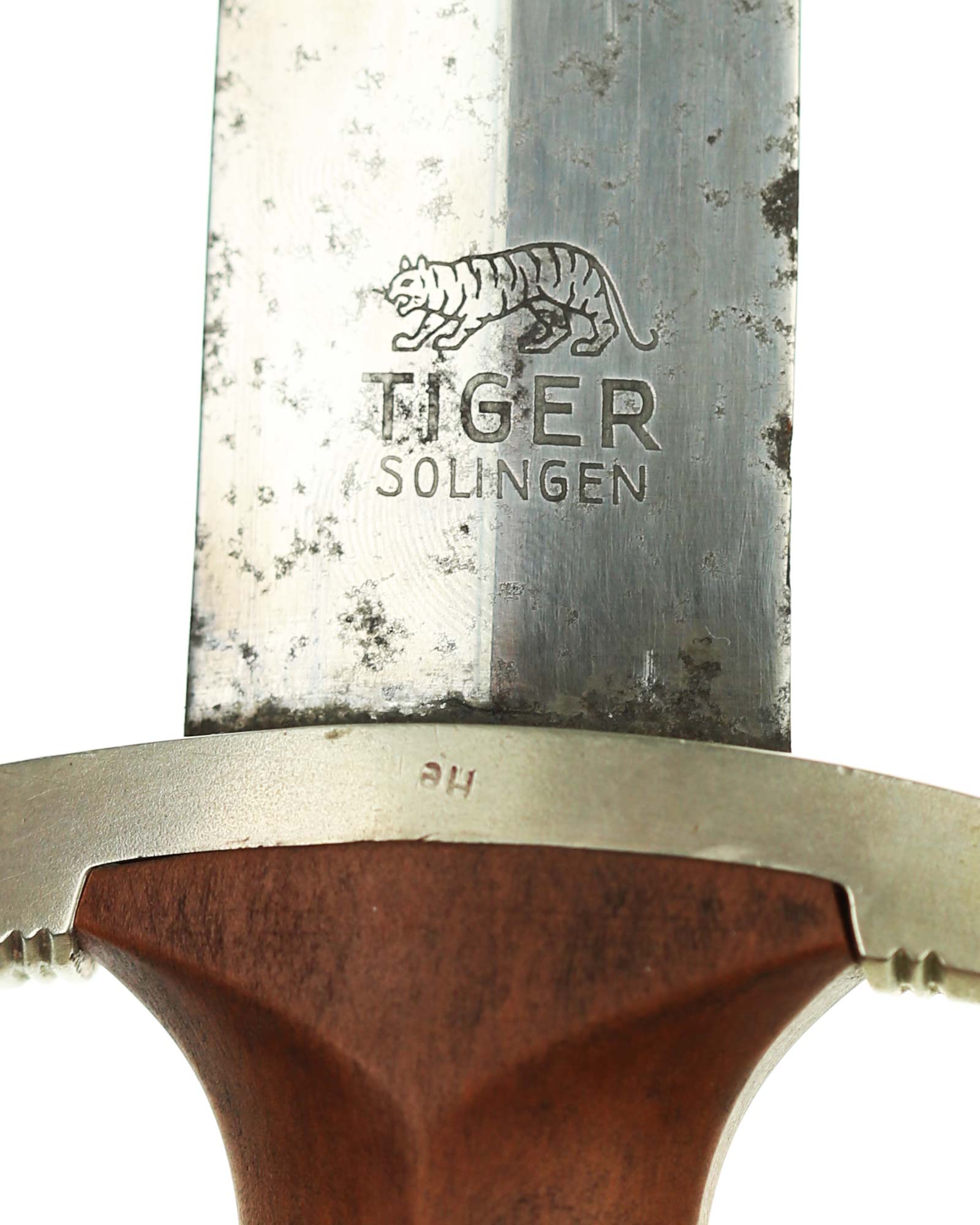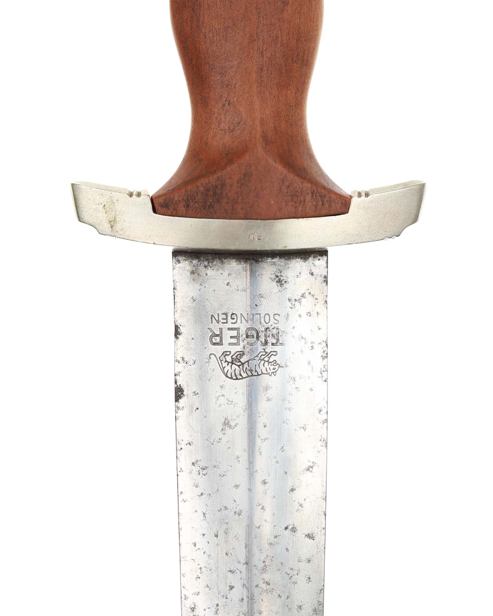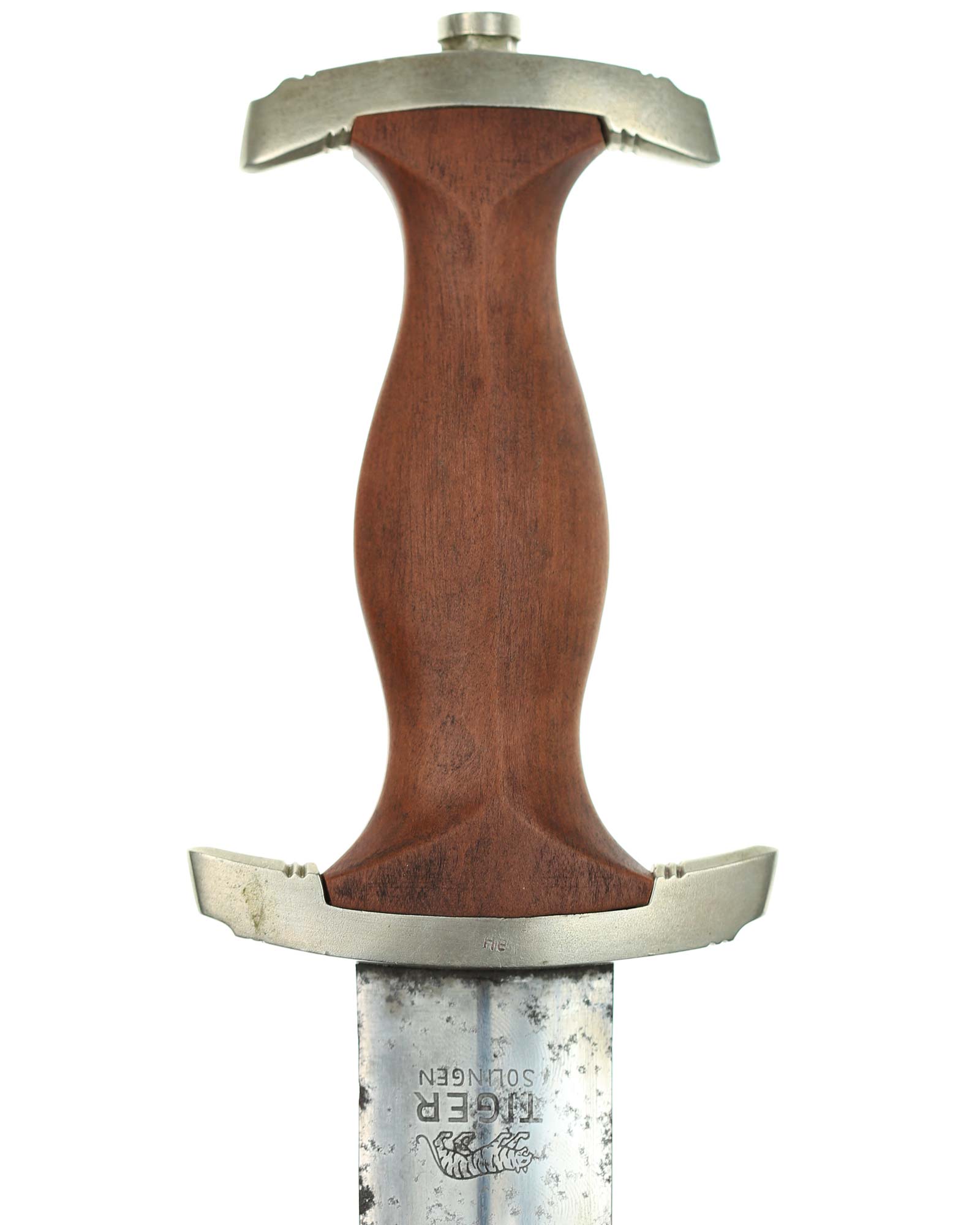 Klinge: Auf der Vorderseite der Klinge befindet sich die SA Devise, mit der Inschrift: Alles für Deutschland. Auf der Rückseite befindet sich das Herstellerlogo TIGER Solingen. Die Klingenschultern passen perfekt zu der unteren Parierstange.