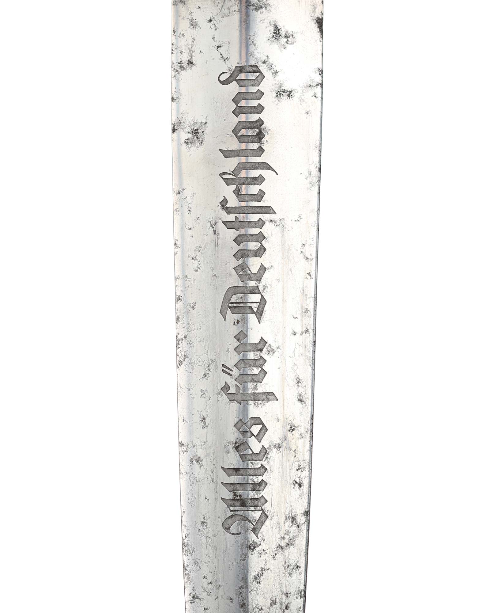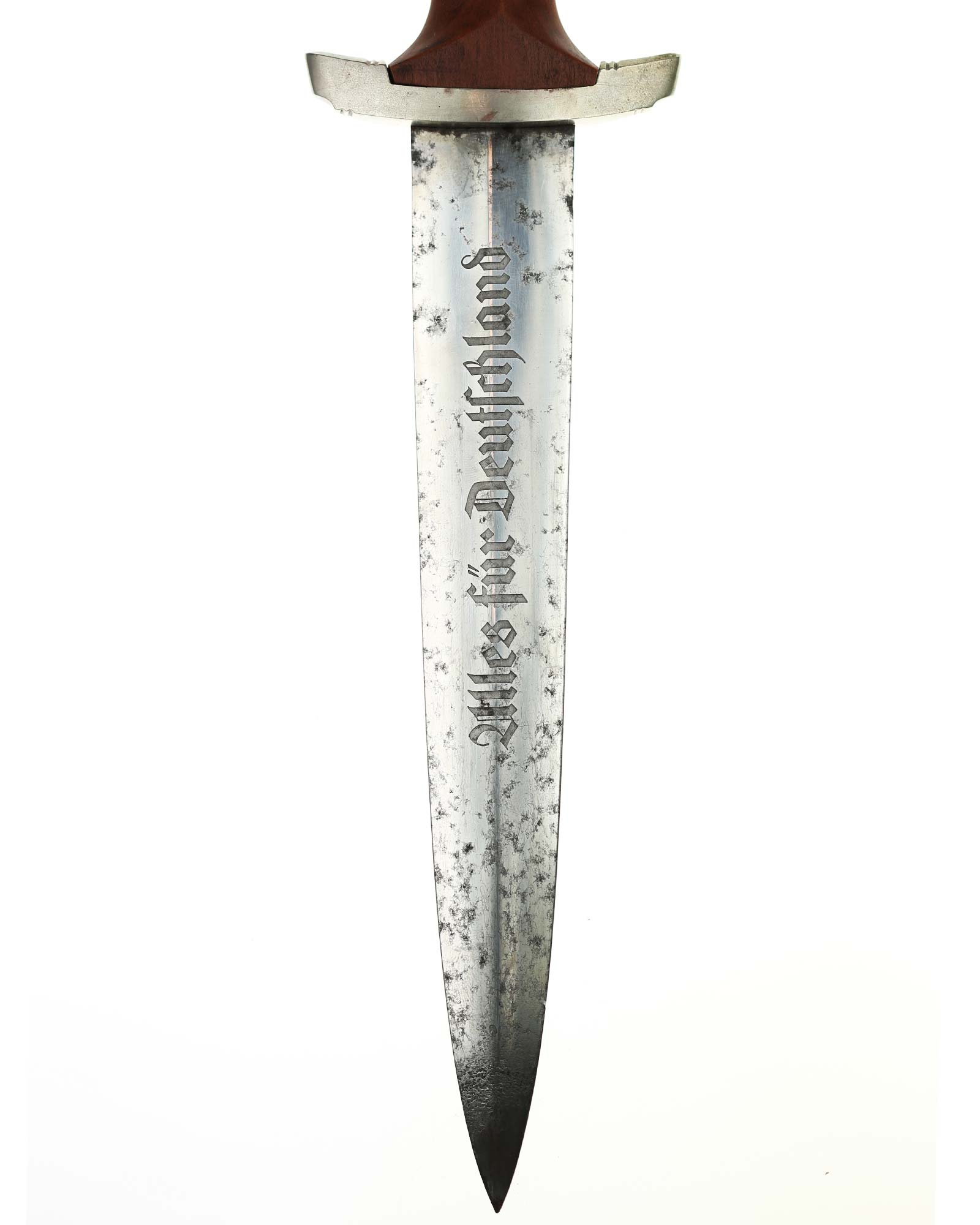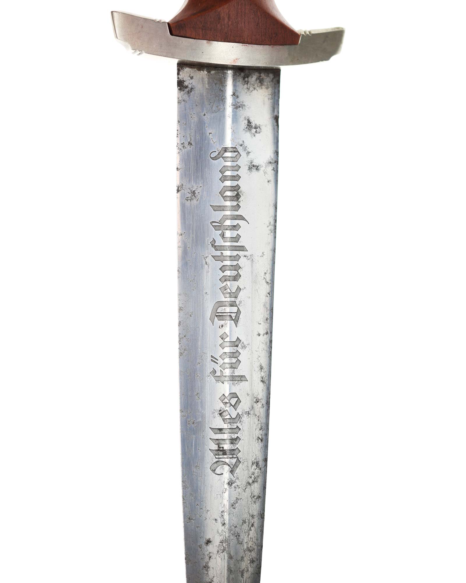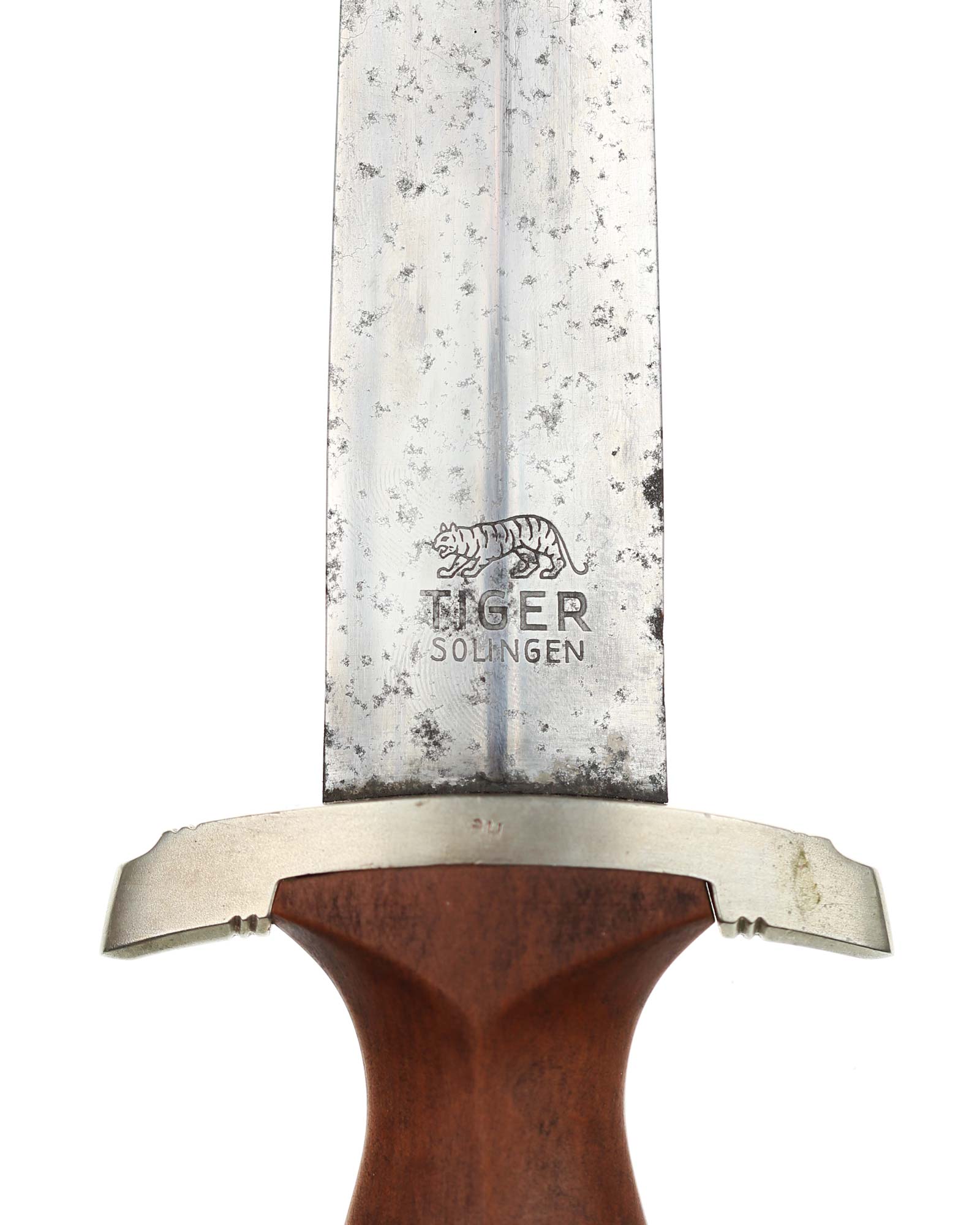 Klinge: Auf der Vorderseite der Klinge befindet sich die SA Devise, mit der Inschrift: Alles für Deutschland. Auf der Rückseite befindet sich das Herstellerlogo TIGER Solingen. Die Klingenschultern passen perfekt zu der unteren Parierstange.