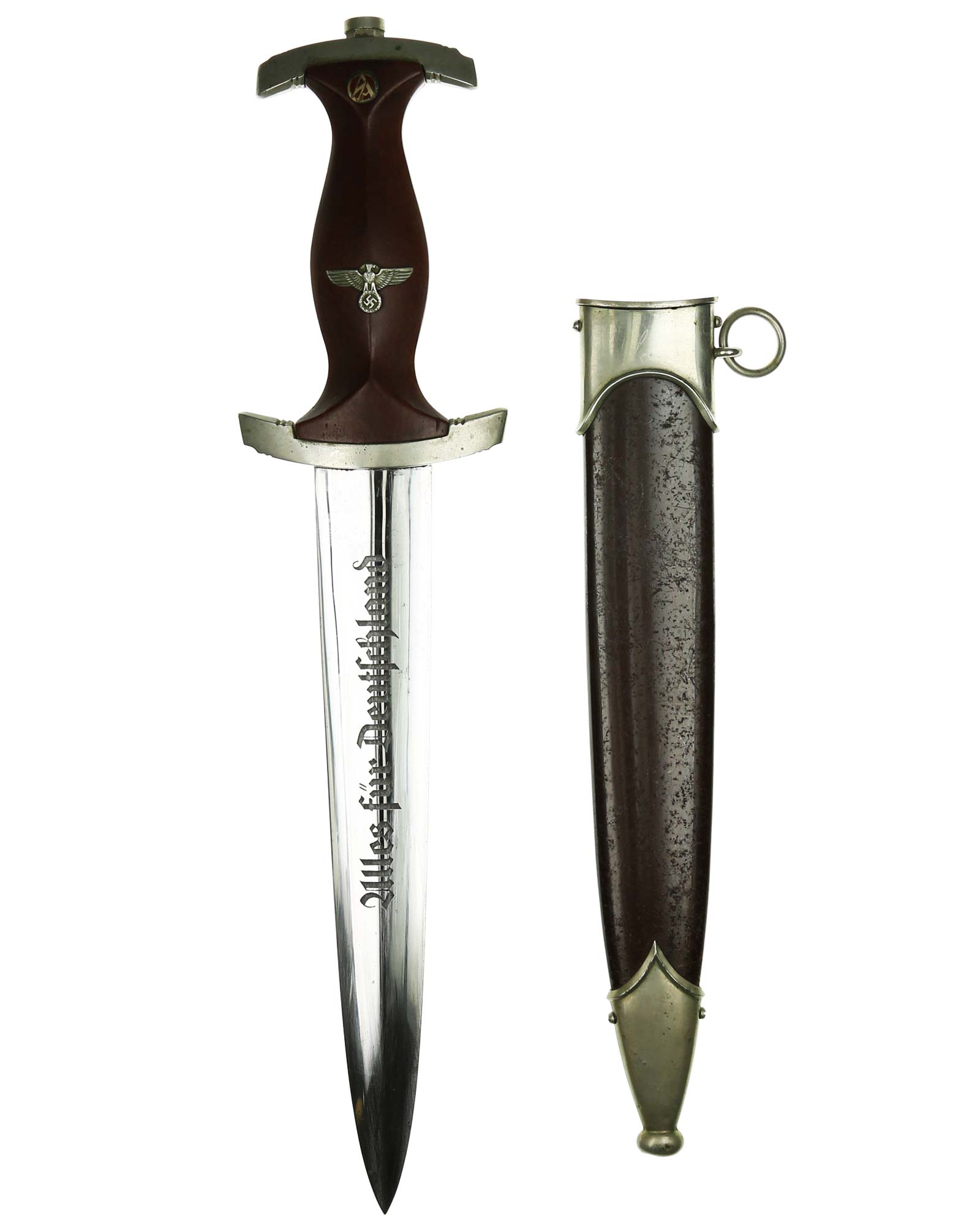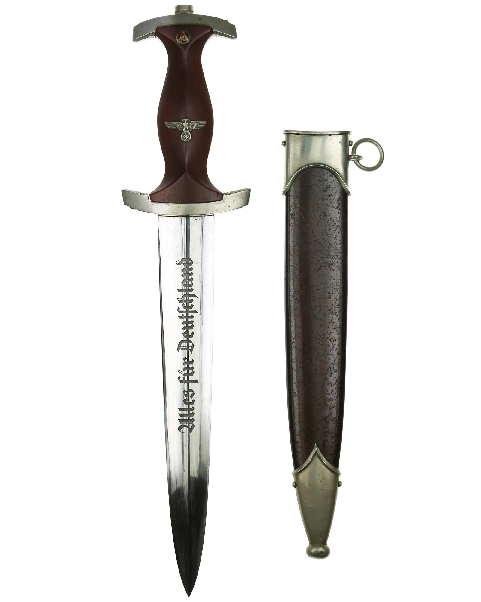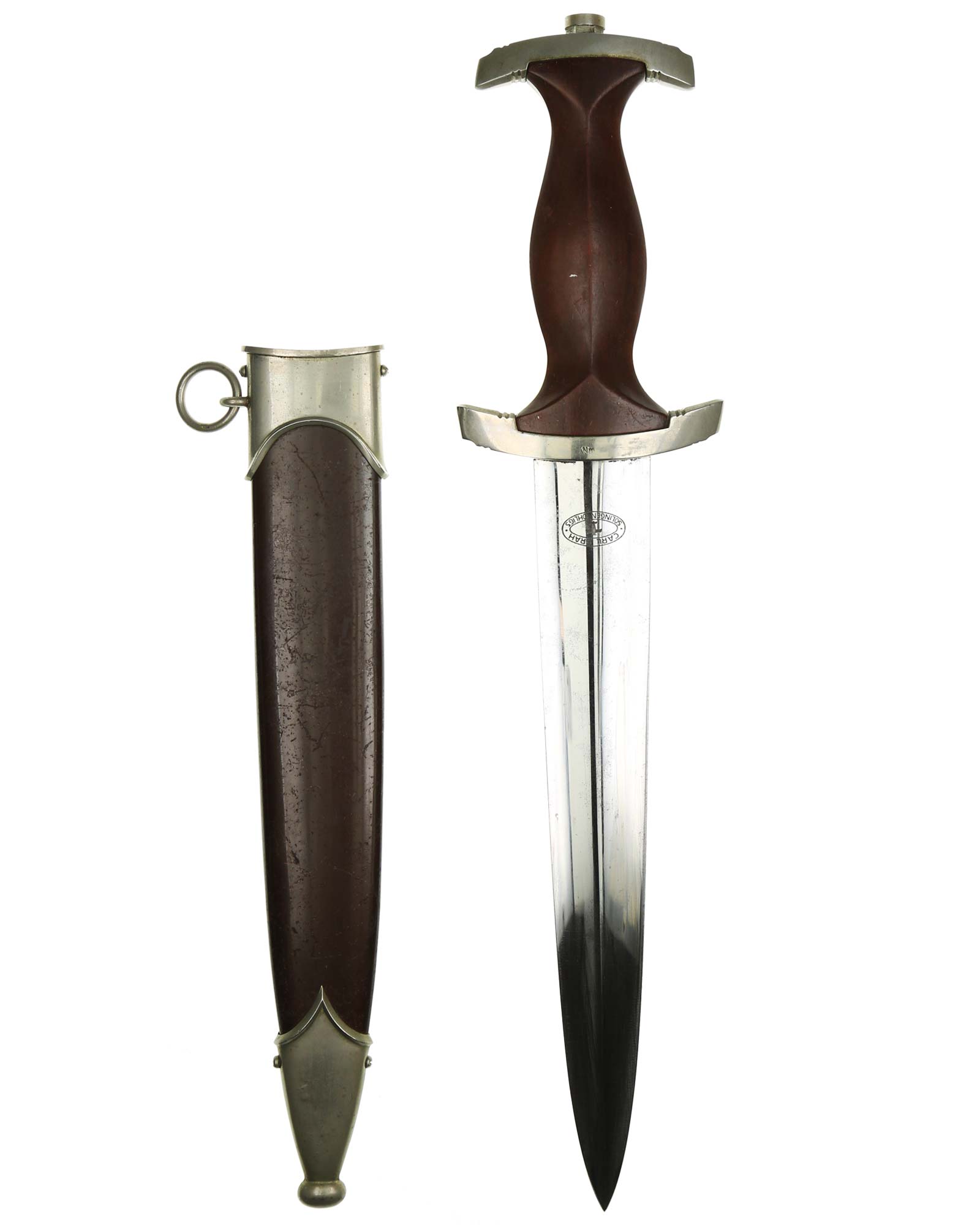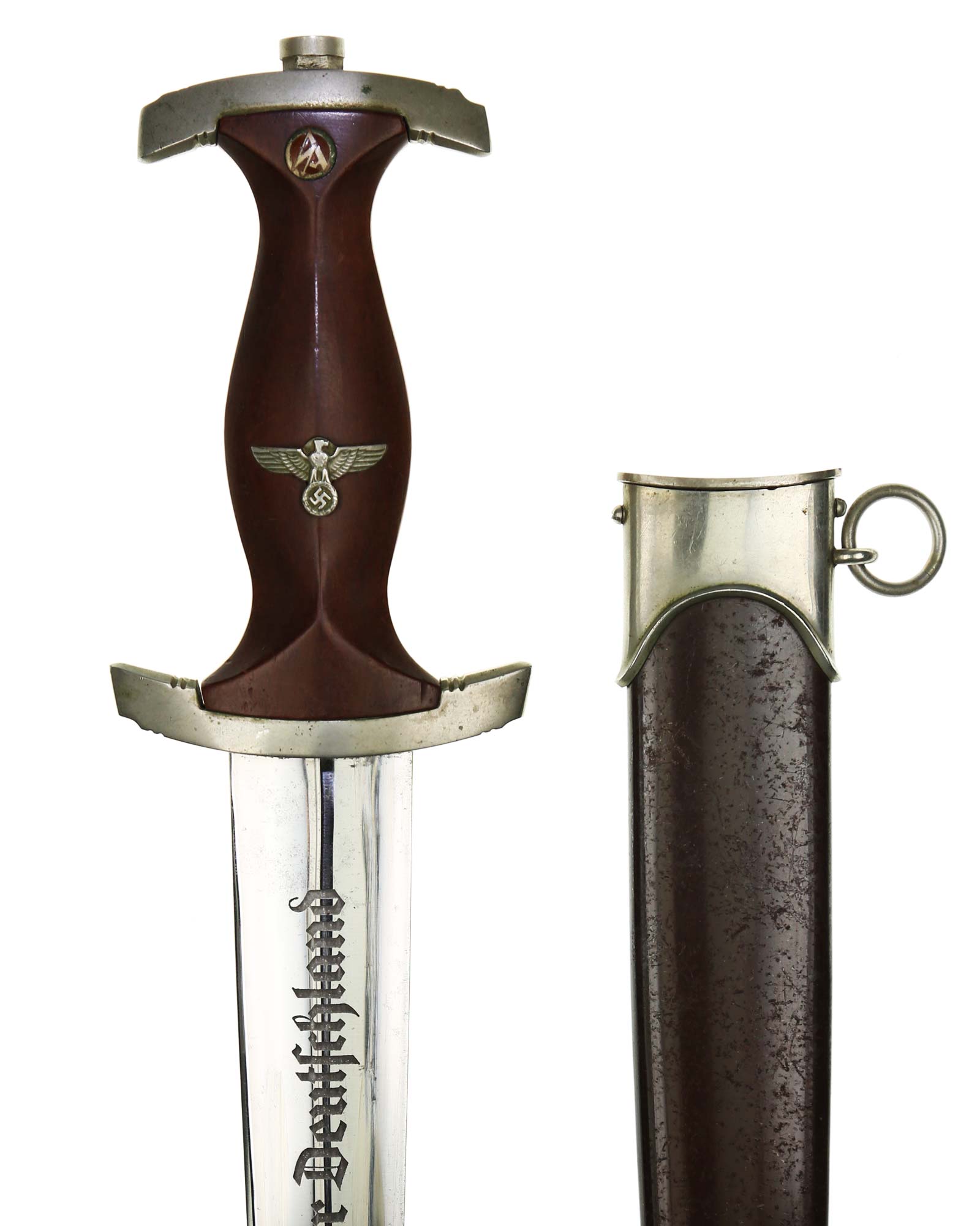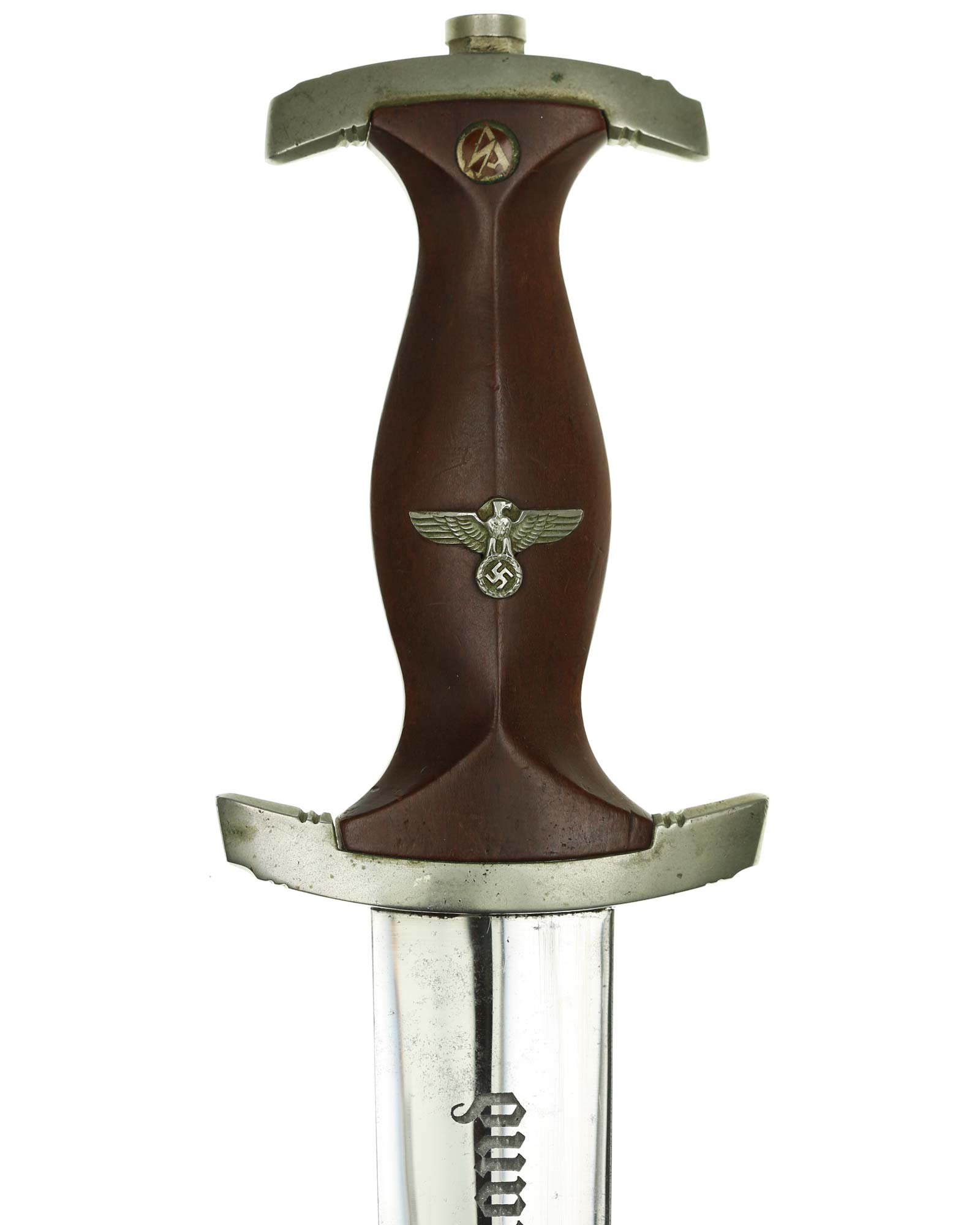 Dienstdolch der Sturmabteilung [SA] in früher Fertigung 1933-1935. SA Dolch mit sehr seltenem Hersteller: Carl Grah Solingen-Ohligs. Untere Parierstange mit Gruppenstempelung «Nm» Nordmark.