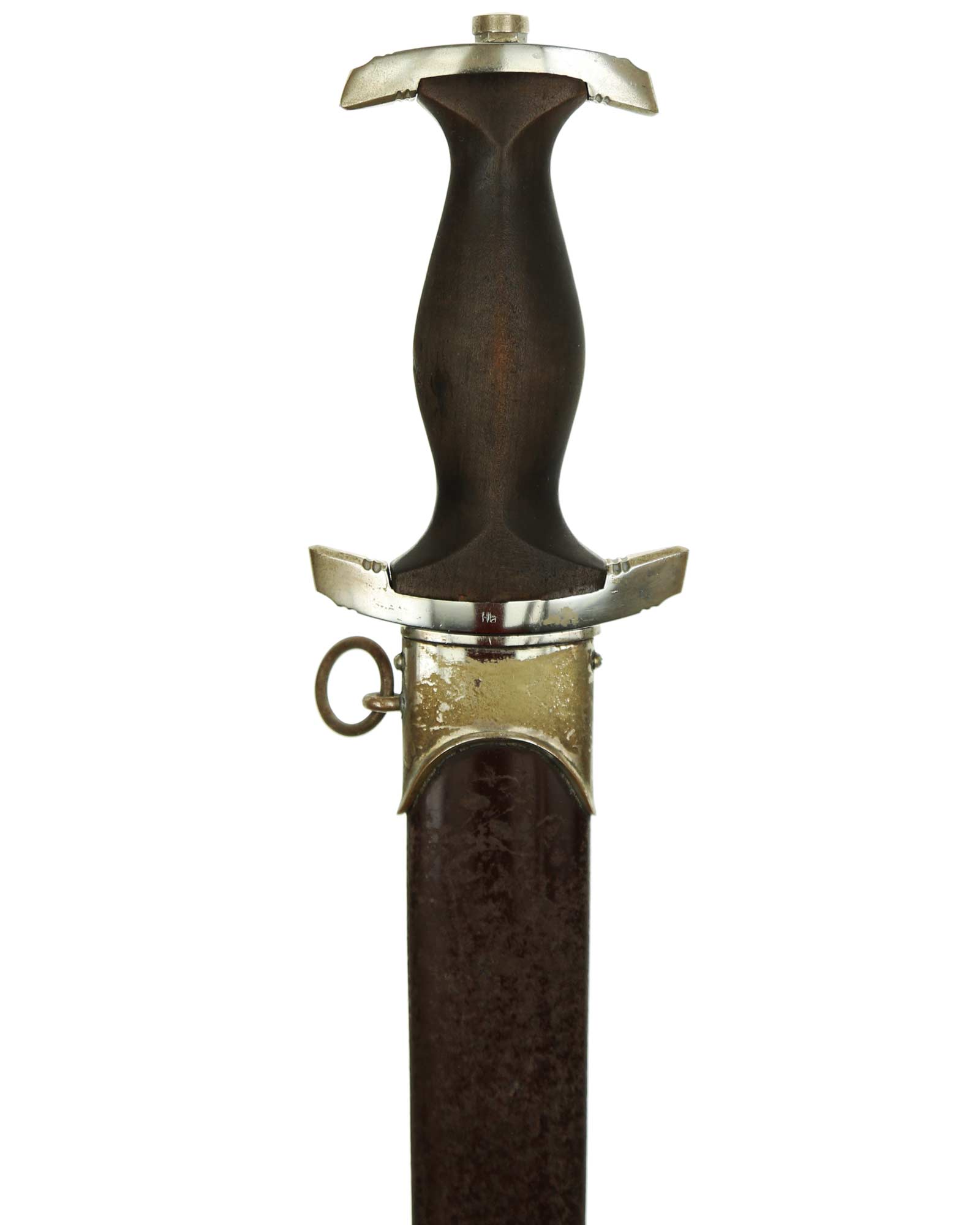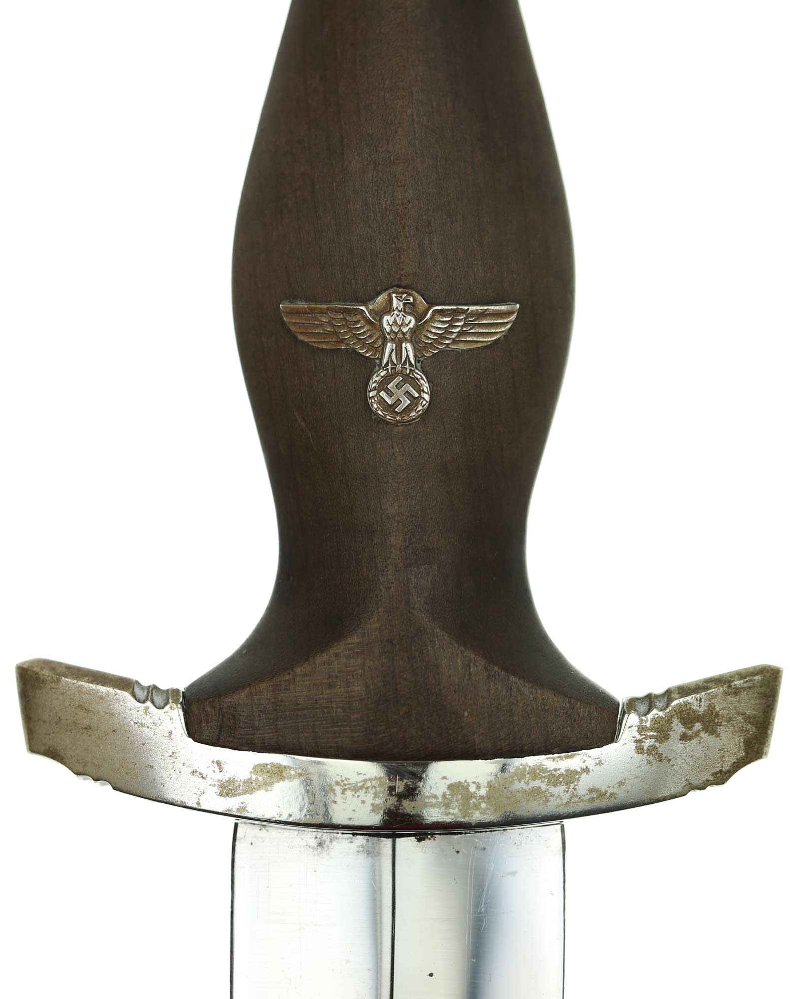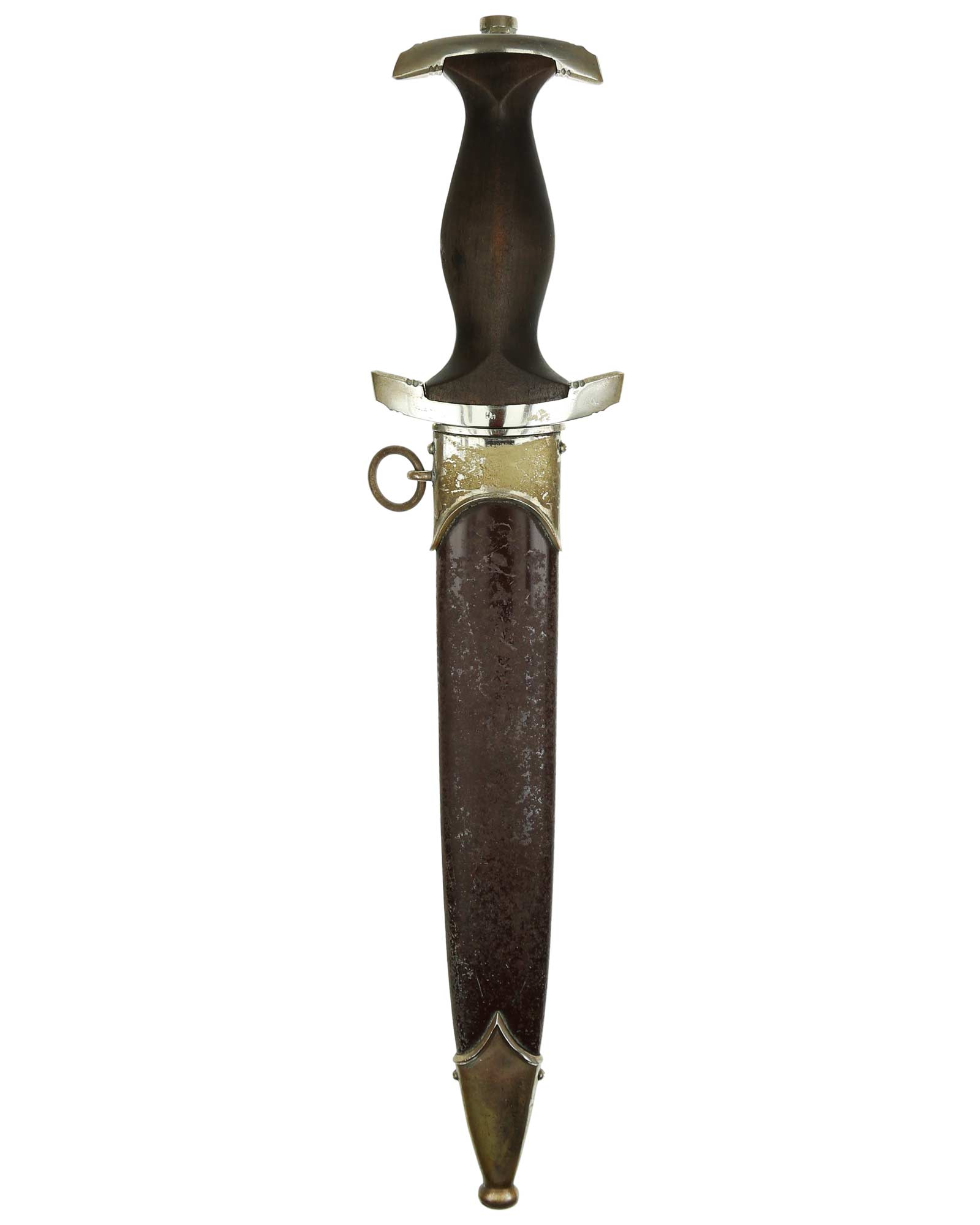 Dienstdolch der Sturmabteilung [SA] in früher Fertigung 1933-1935. SA Dolch mit seltenem Hersteller [4/5]: C.&R. Linder Solingen-Weyer. Untere Parierstange mit Gruppenstempelung «Ha» Hansa.