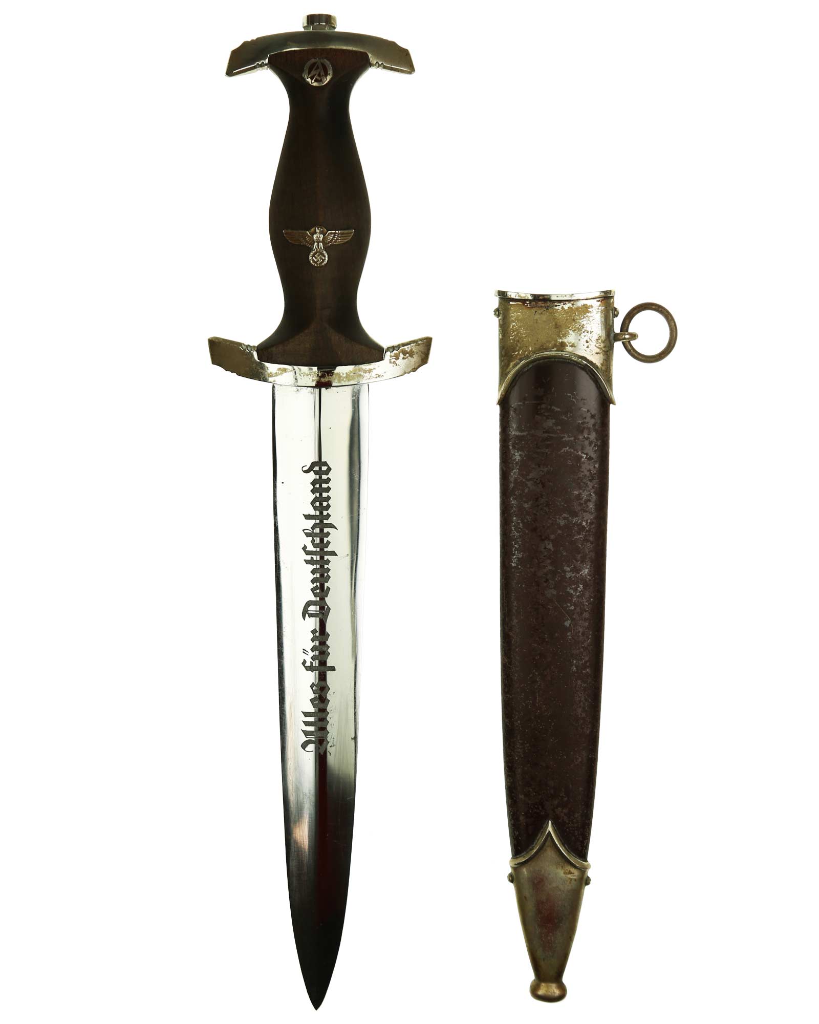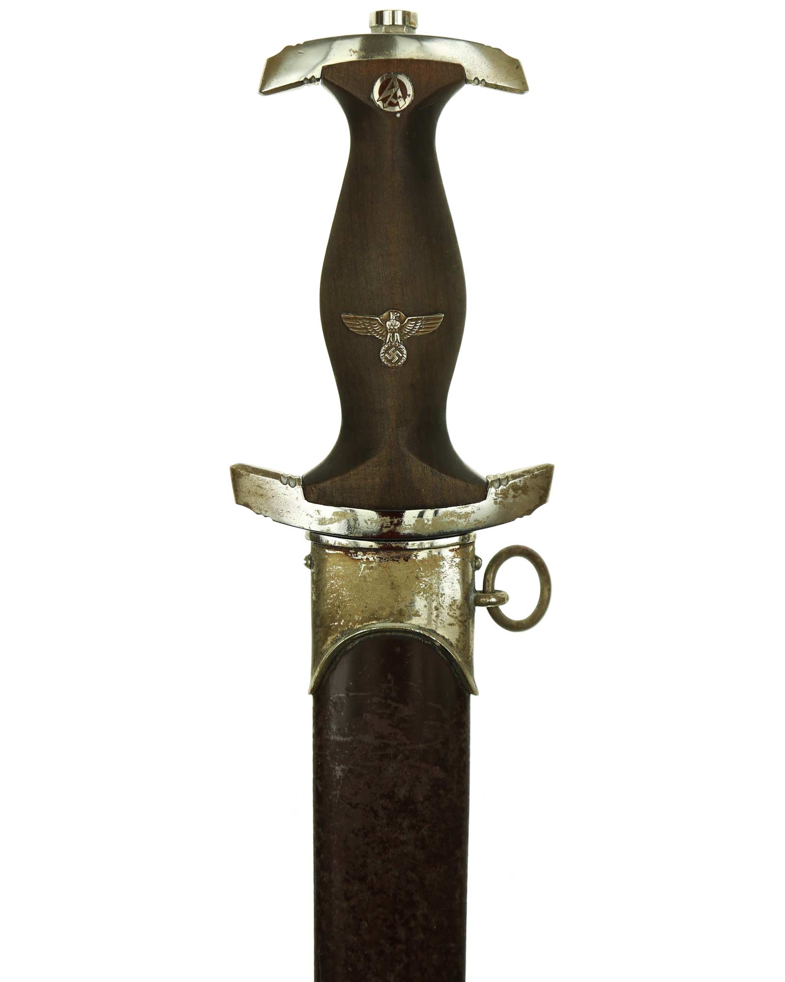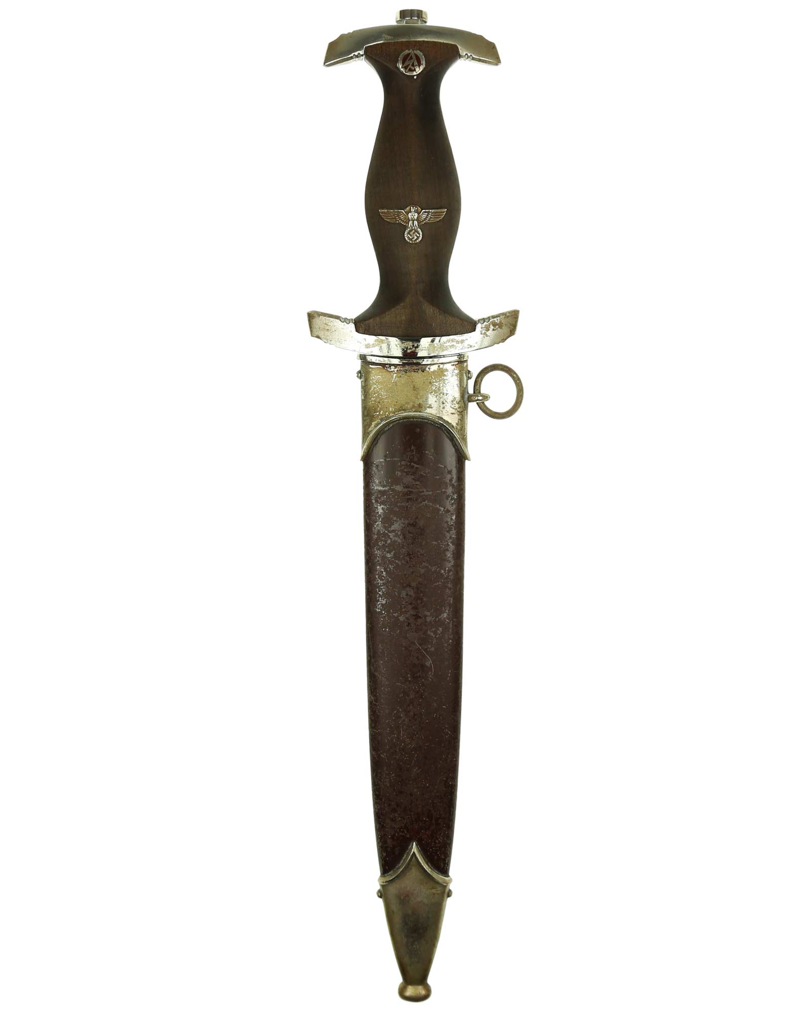 Dienstdolch der Sturmabteilung [SA] in früher Fertigung 1933-1935. SA Dolch mit seltenem Hersteller [4/5]: C.&R. Linder Solingen-Weyer. Untere Parierstange mit Gruppenstempelung «Ha» Hansa.