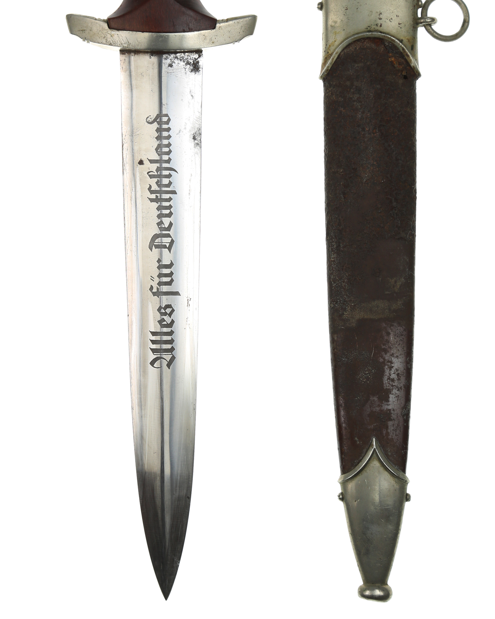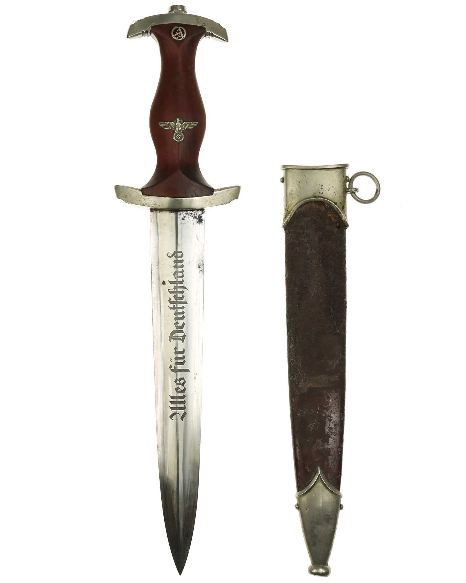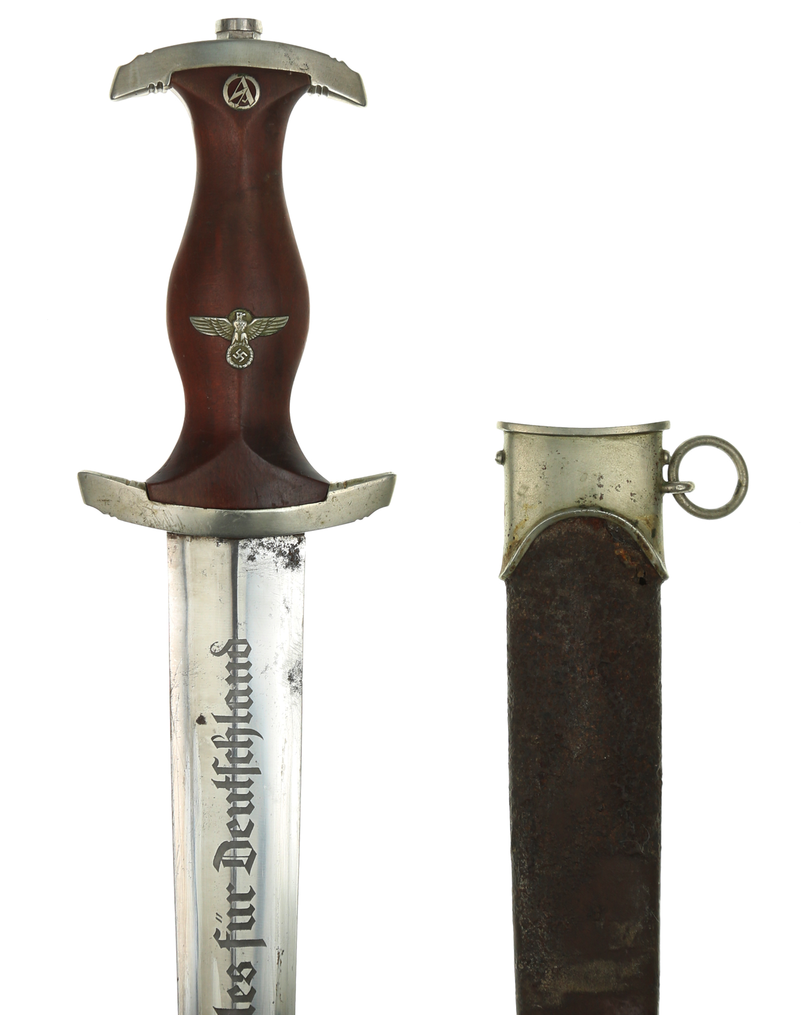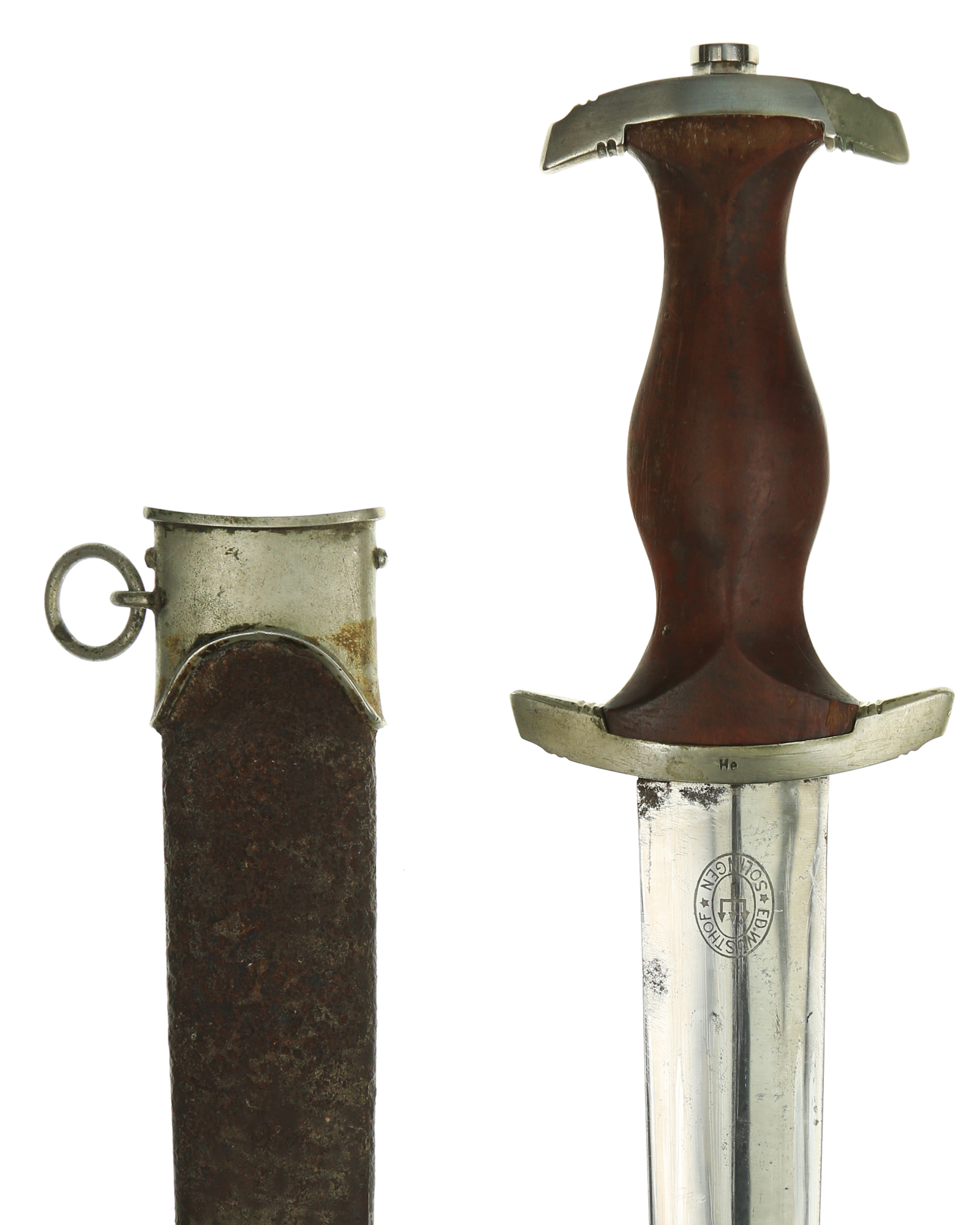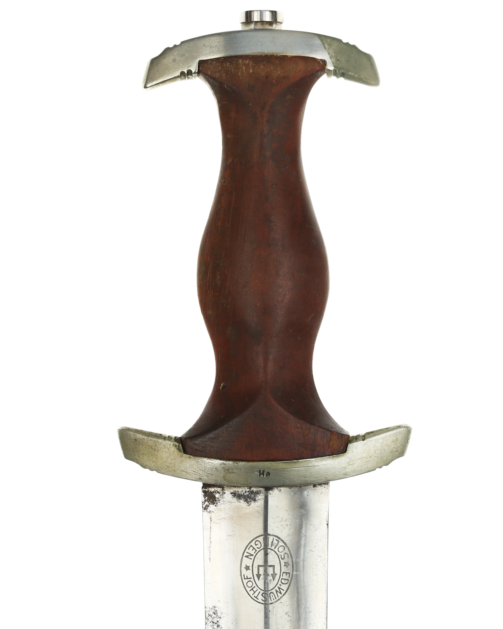 Dienstdolch der Sturmabteilung [SA] in früher Fertigung 1933-1935. SA Dolch mit seltenem Hersteller: Ed. Wüsthof Solingen. Untere Parierstange mit passender Gruppenstempelung «He» Hessen.