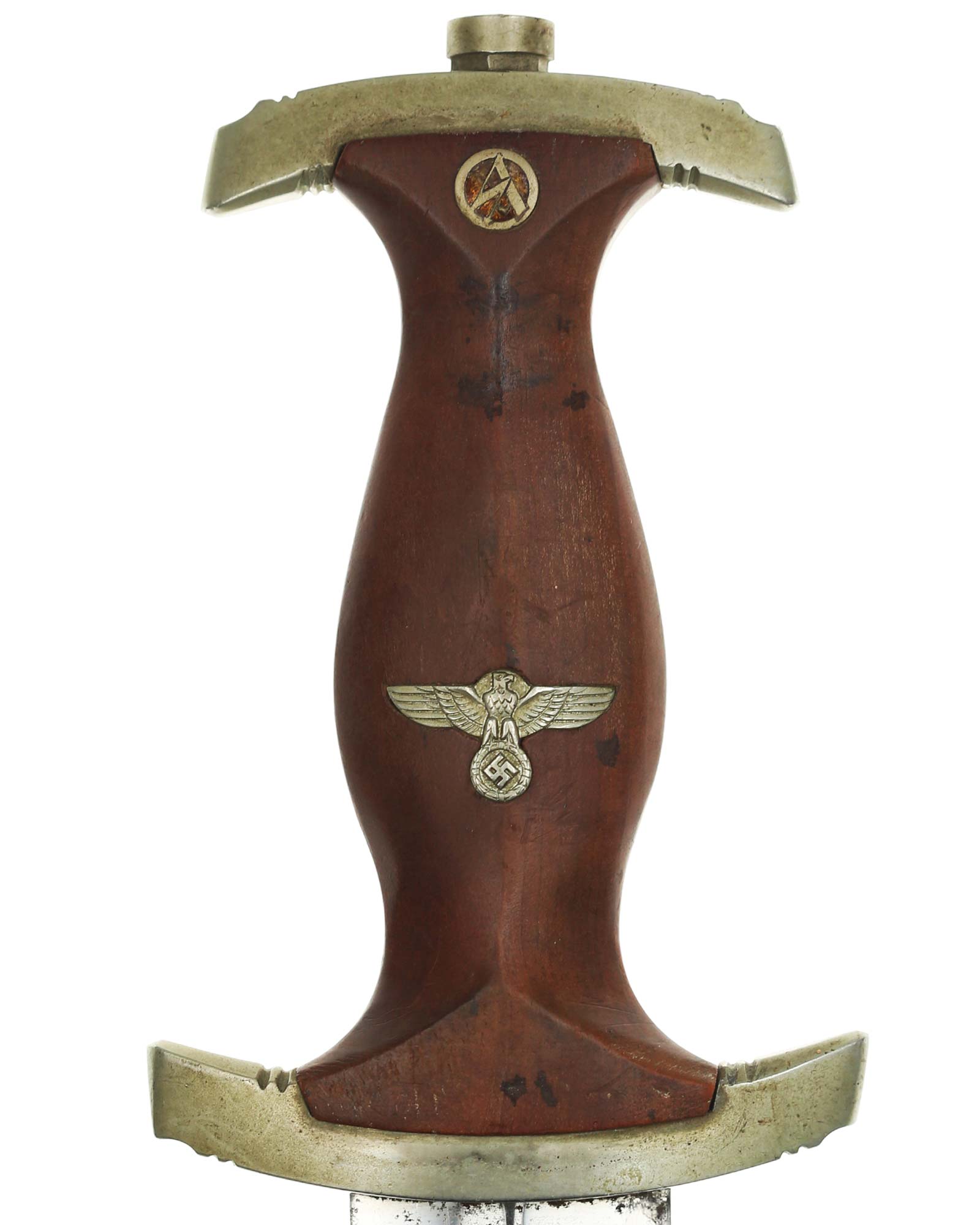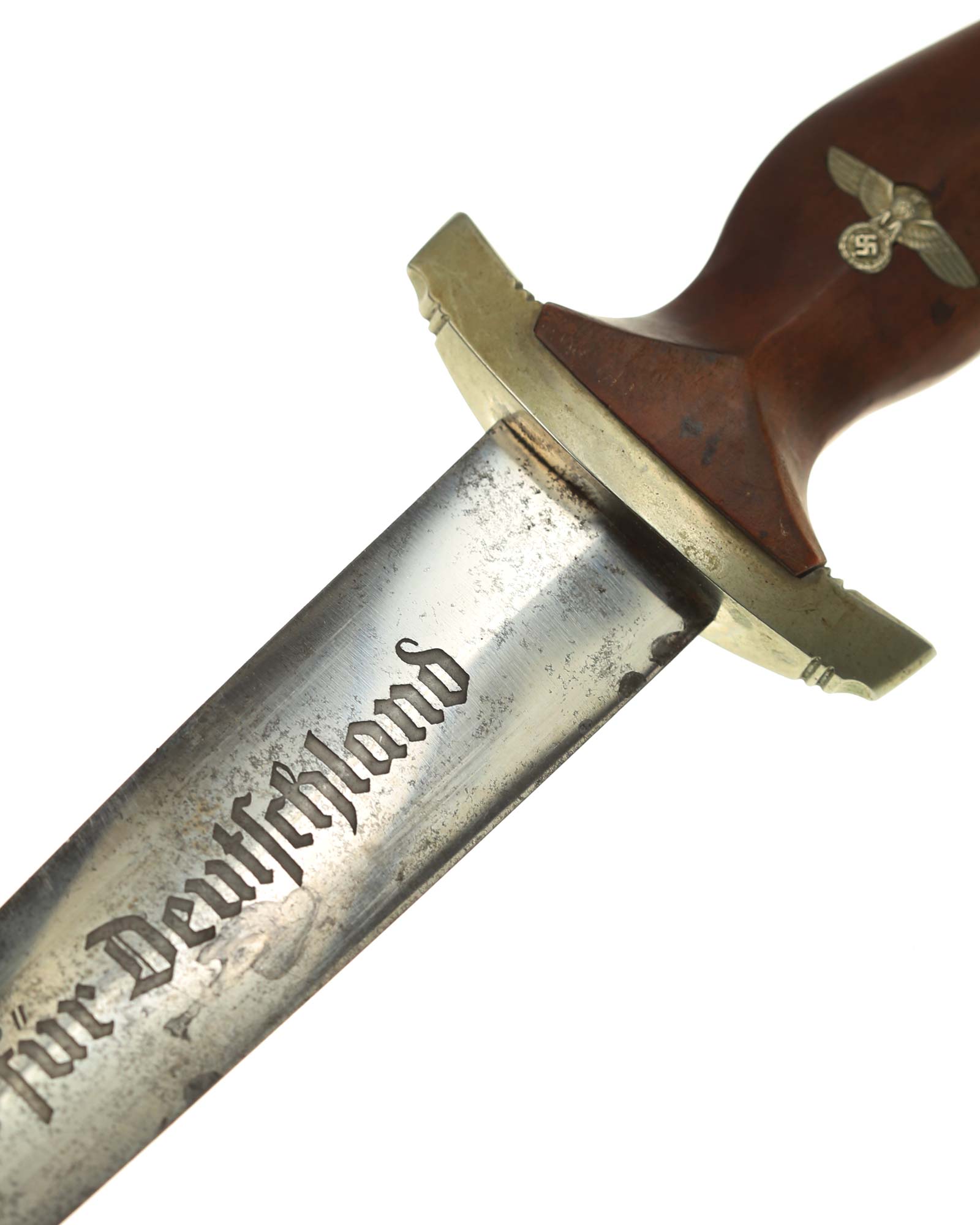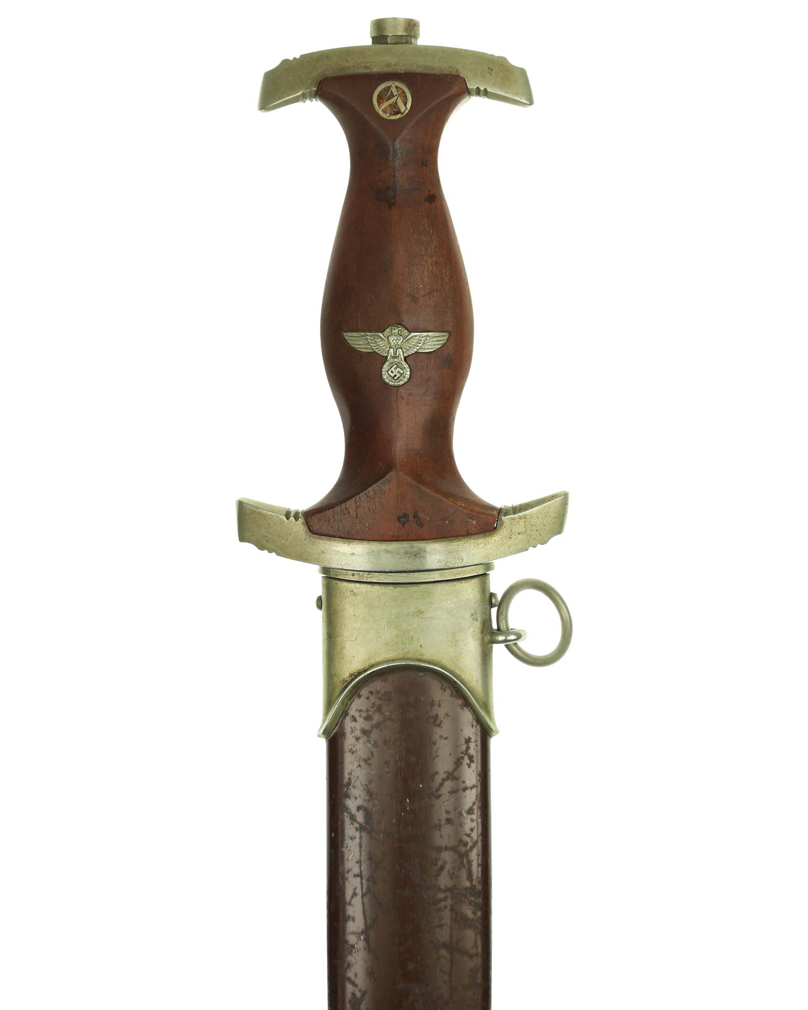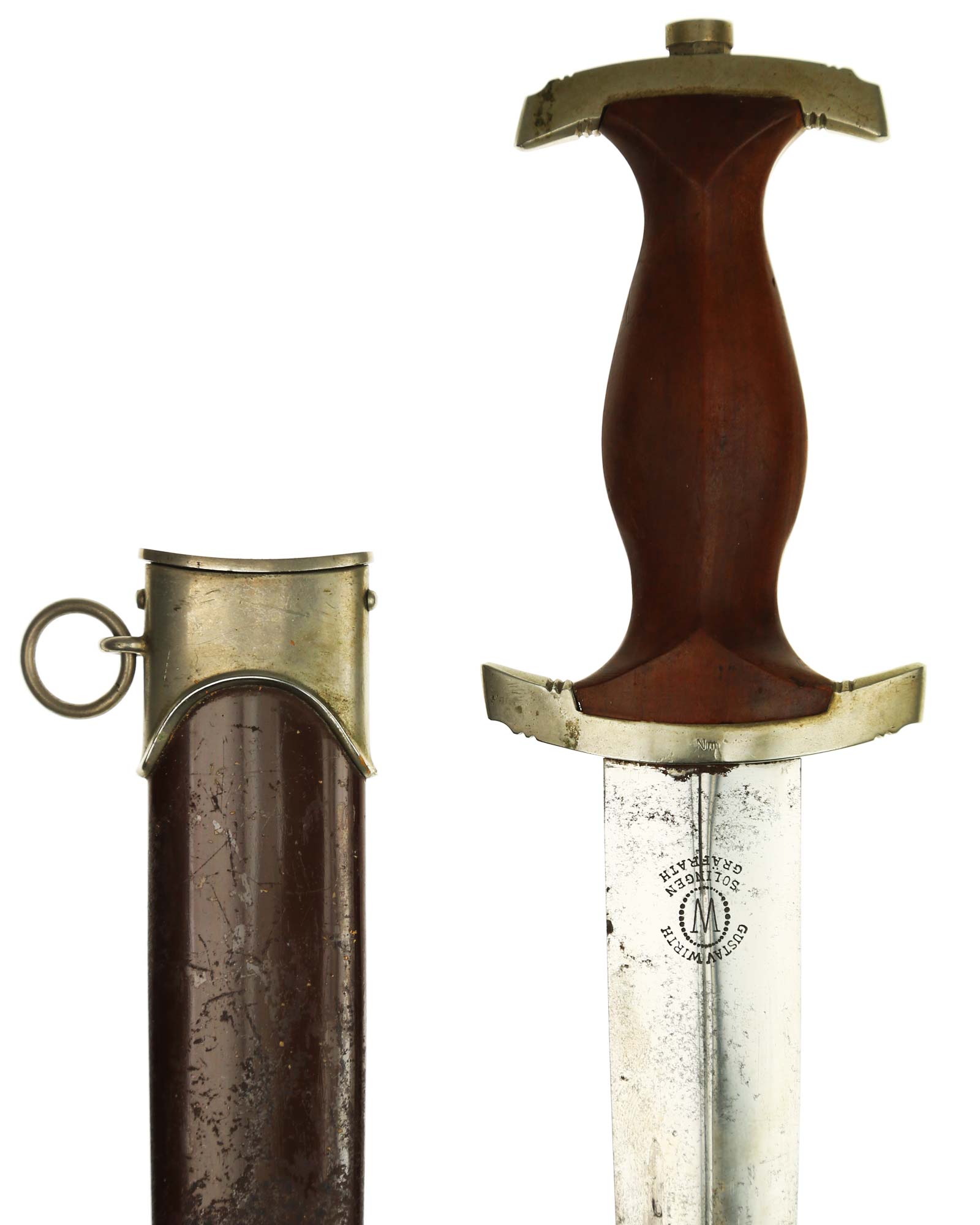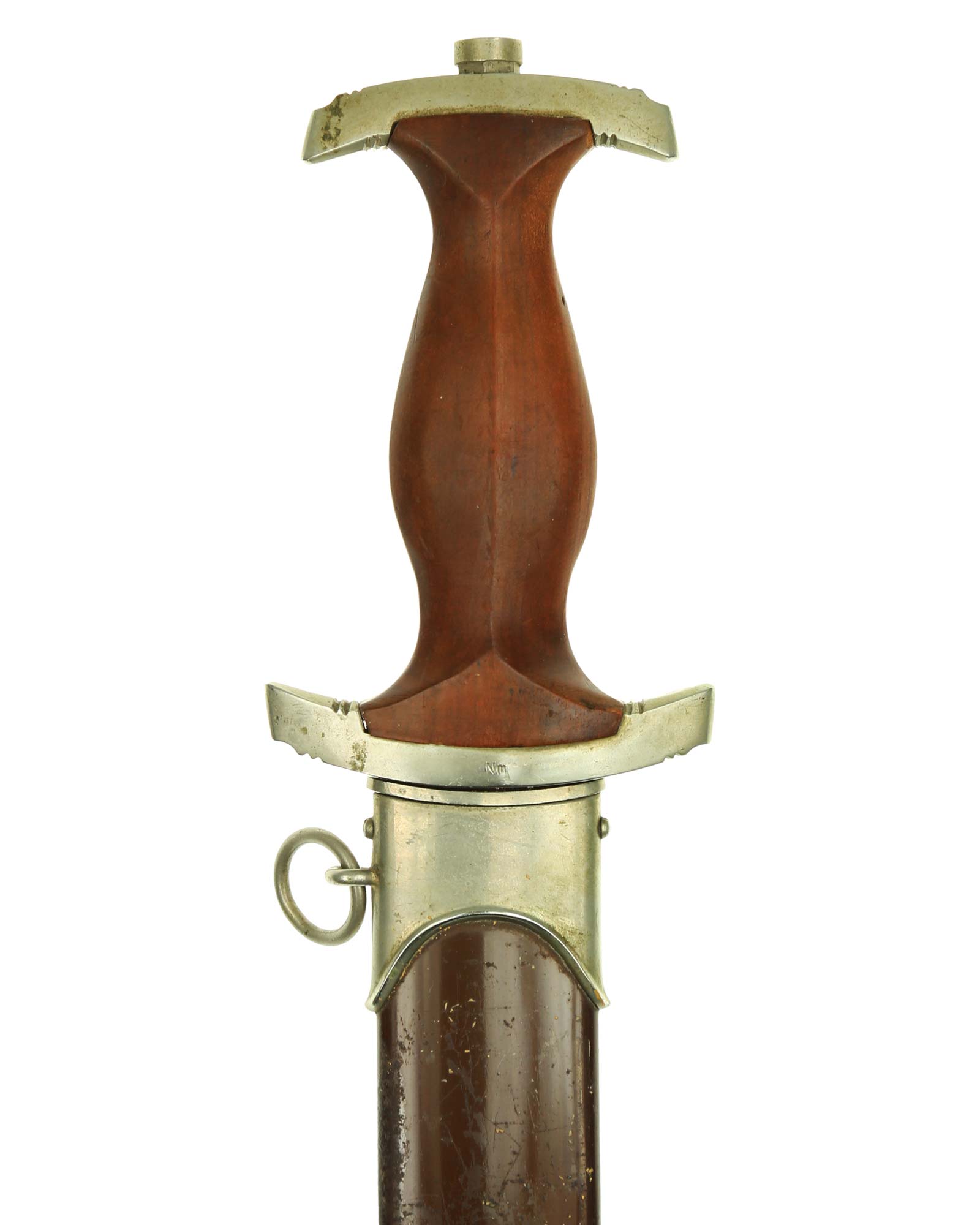 Dienstdolch der Sturmabteilung [SA] in früher Fertigung 1933-1935, mit sehr seltenem Hersteller: Gustav Wirth Solingen-Gräfrath. Untere Parierstange mit passender Gruppenstempelung «Nm» Nordmark.