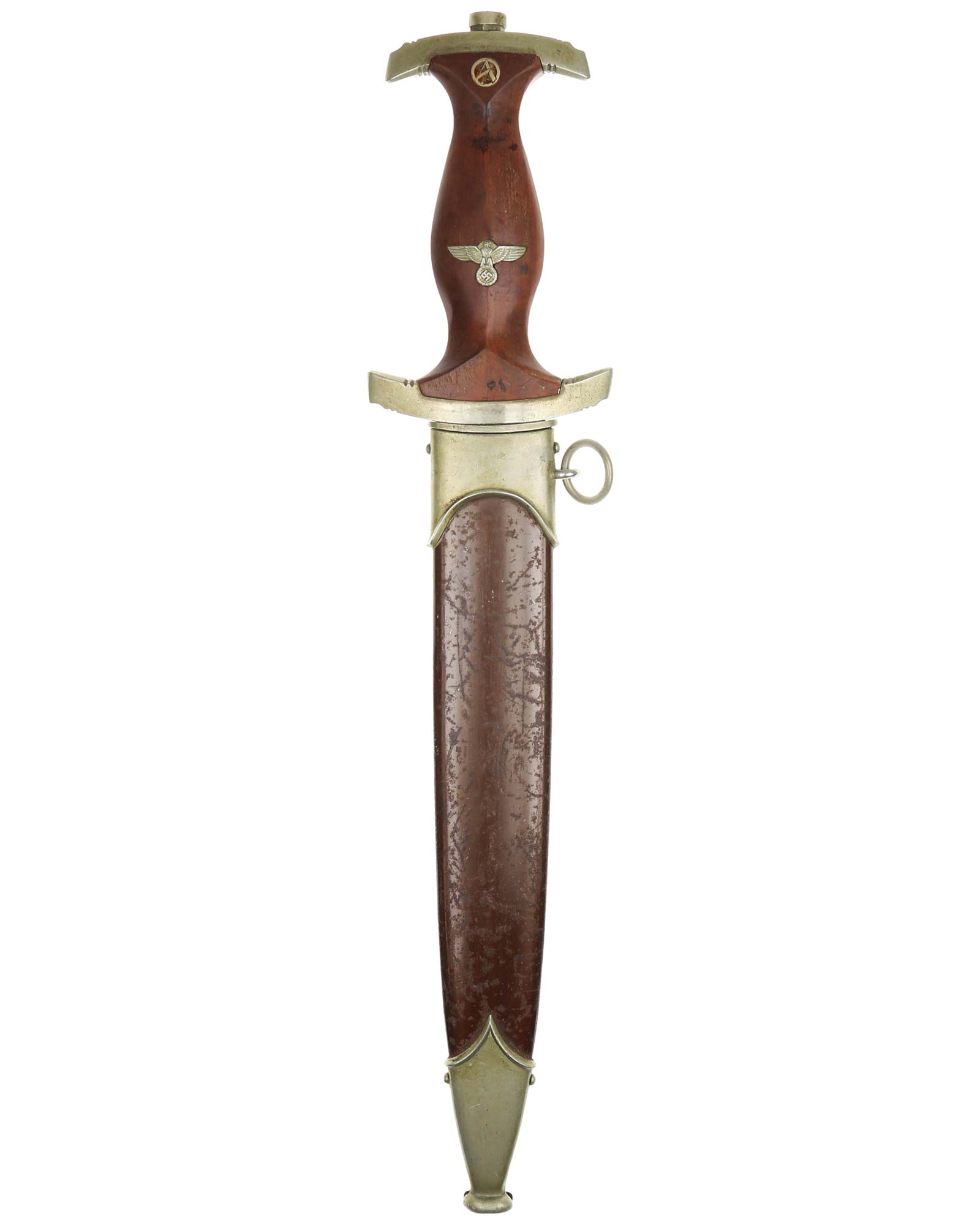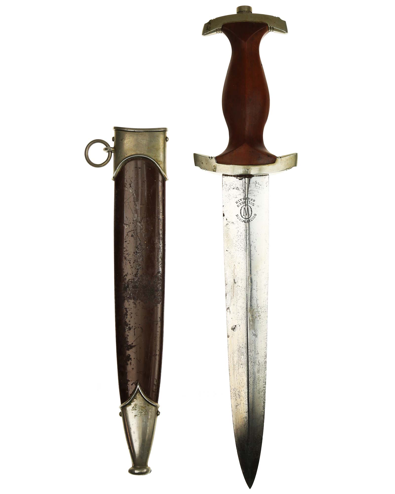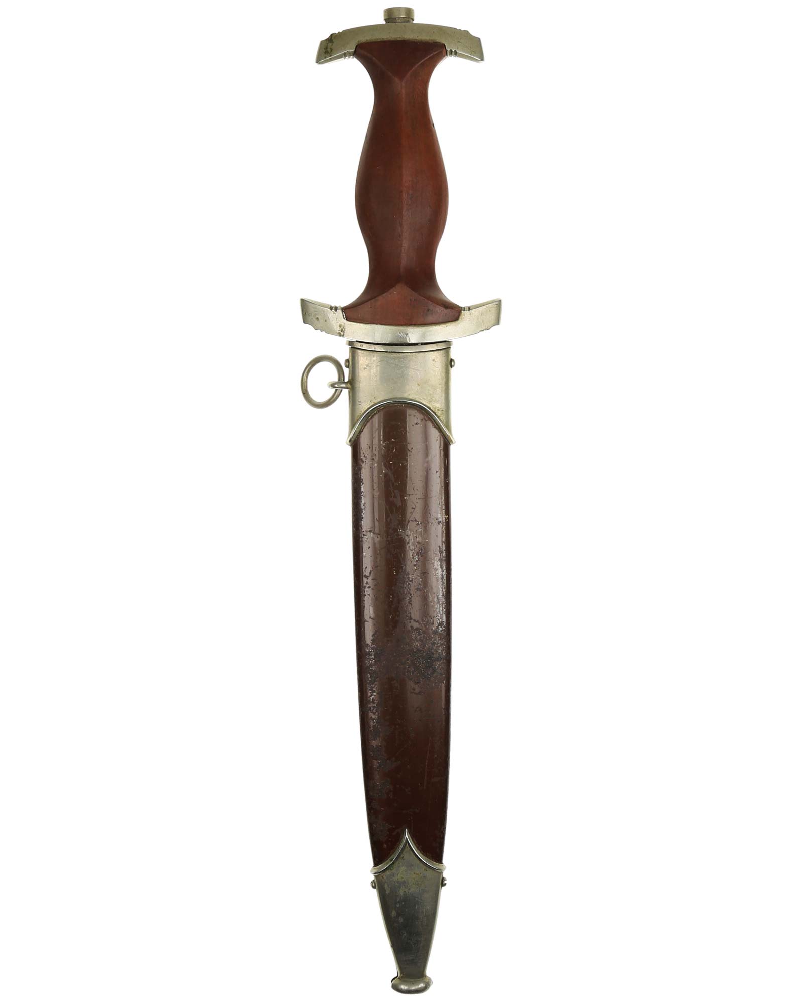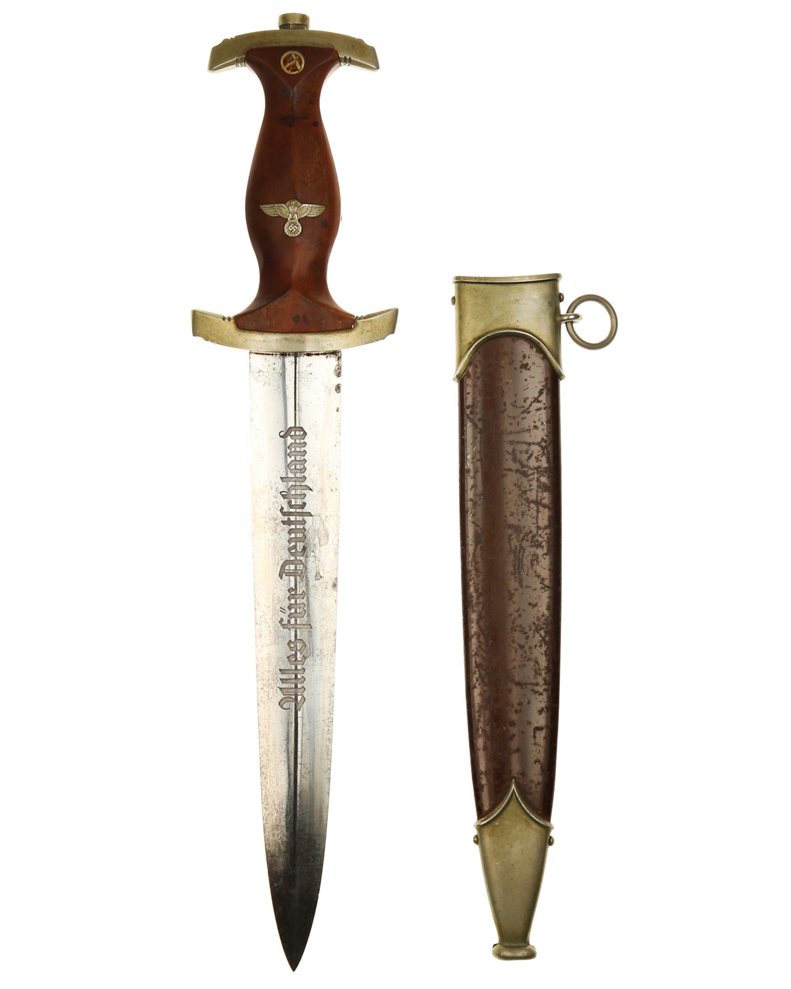 Dienstdolch der Sturmabteilung [SA] in früher Fertigung 1933-1935, mit sehr seltenem Hersteller: Gustav Wirth Solingen-Gräfrath. Untere Parierstange mit passender Gruppenstempelung «Nm» Nordmark.