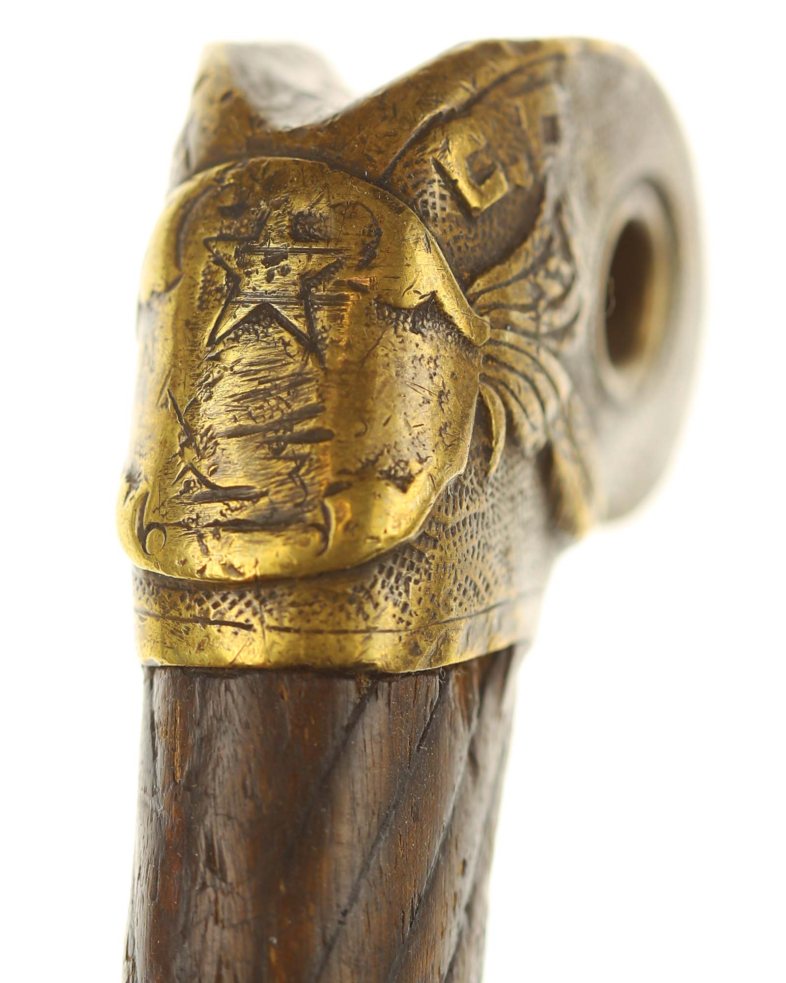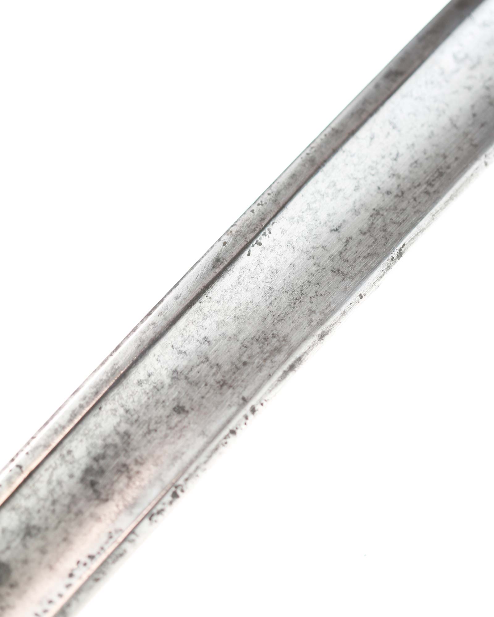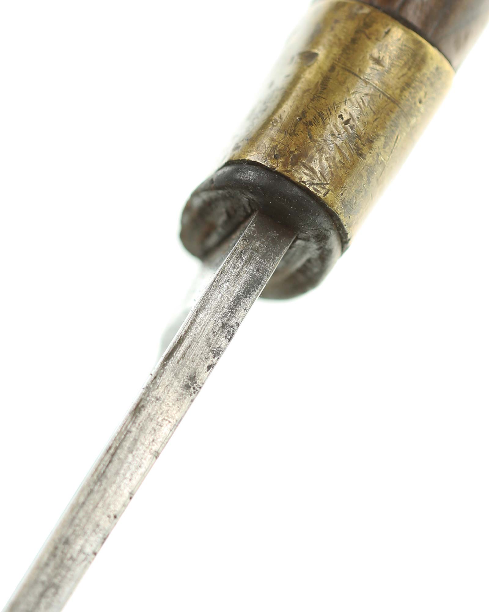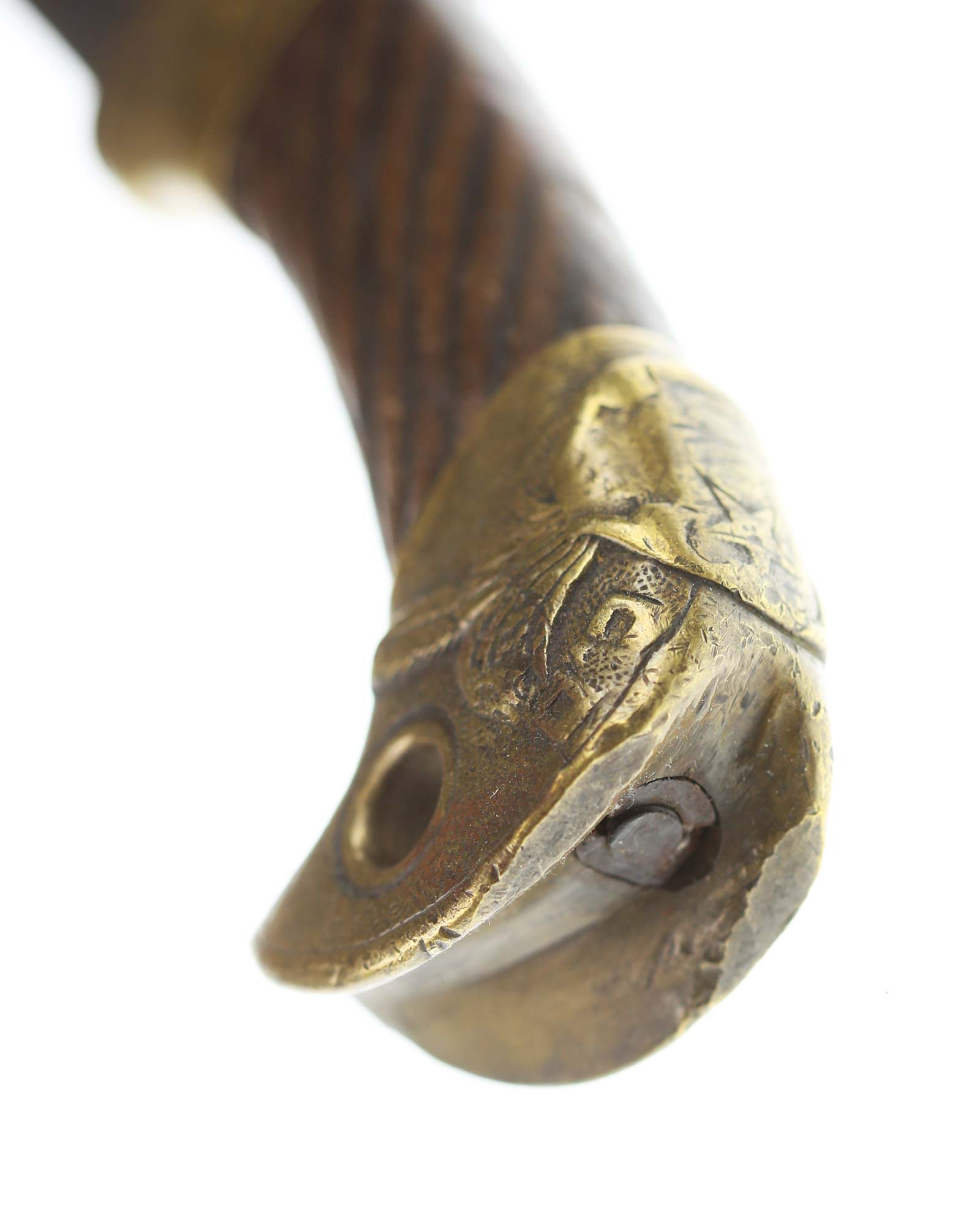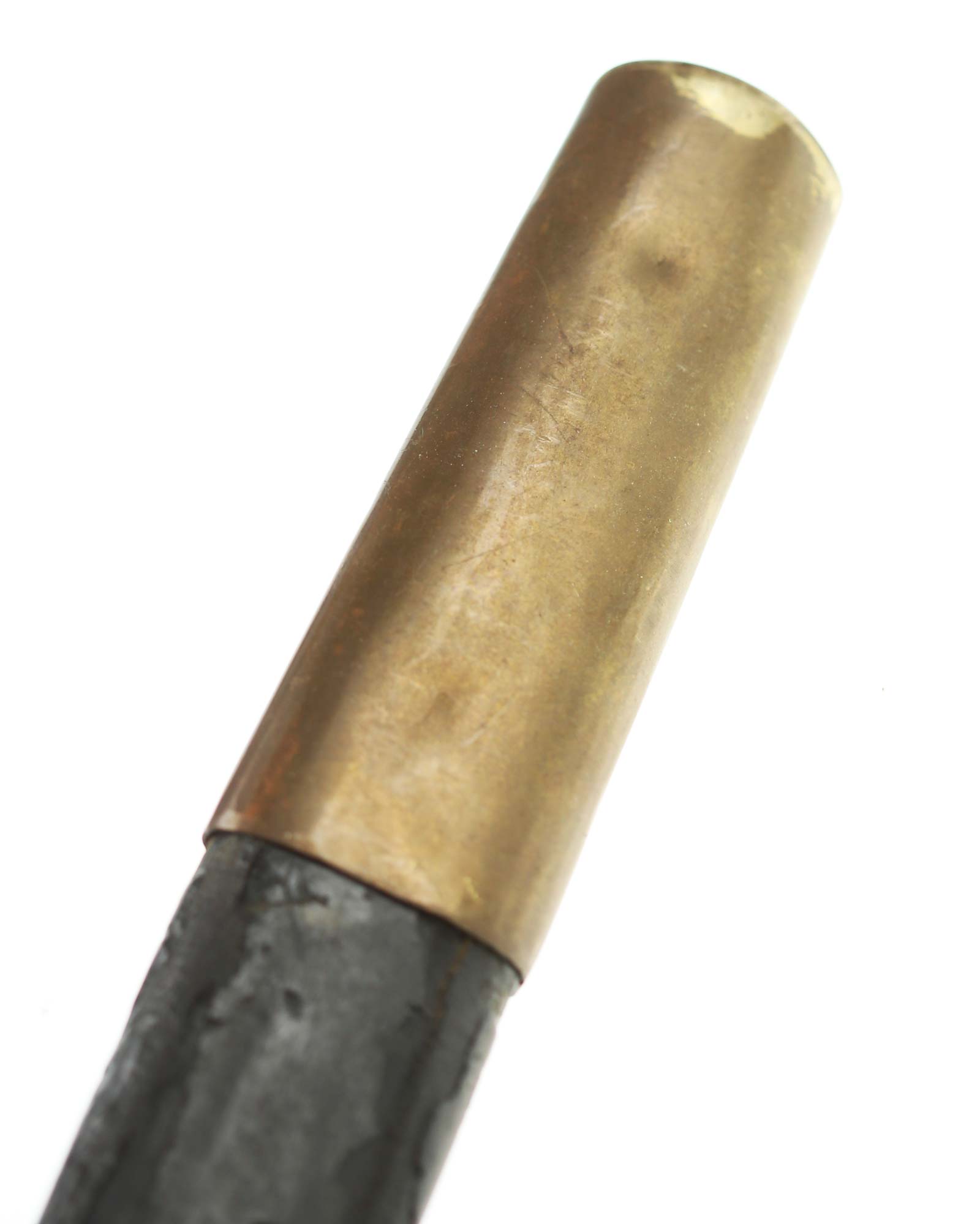 Schaschka Modell 1881 für Offiziere, Sowjetunion, datiert 1928. Gekehlte Rückenklinge mit zweischneidiger Spitze, auf der Fehlschärfe kyrillische Abnahmemarke und Datierung "1928". Gestempeltes Messinggefäß mit Marke von Slatoust mit Hammer und Sichel sowie "C.C.C.P." auf der Knaufkappe. Spiralförmig geschnitzter Holzgriff. Schwarzledern bezogene Holzscheide mit Messingmontierung.