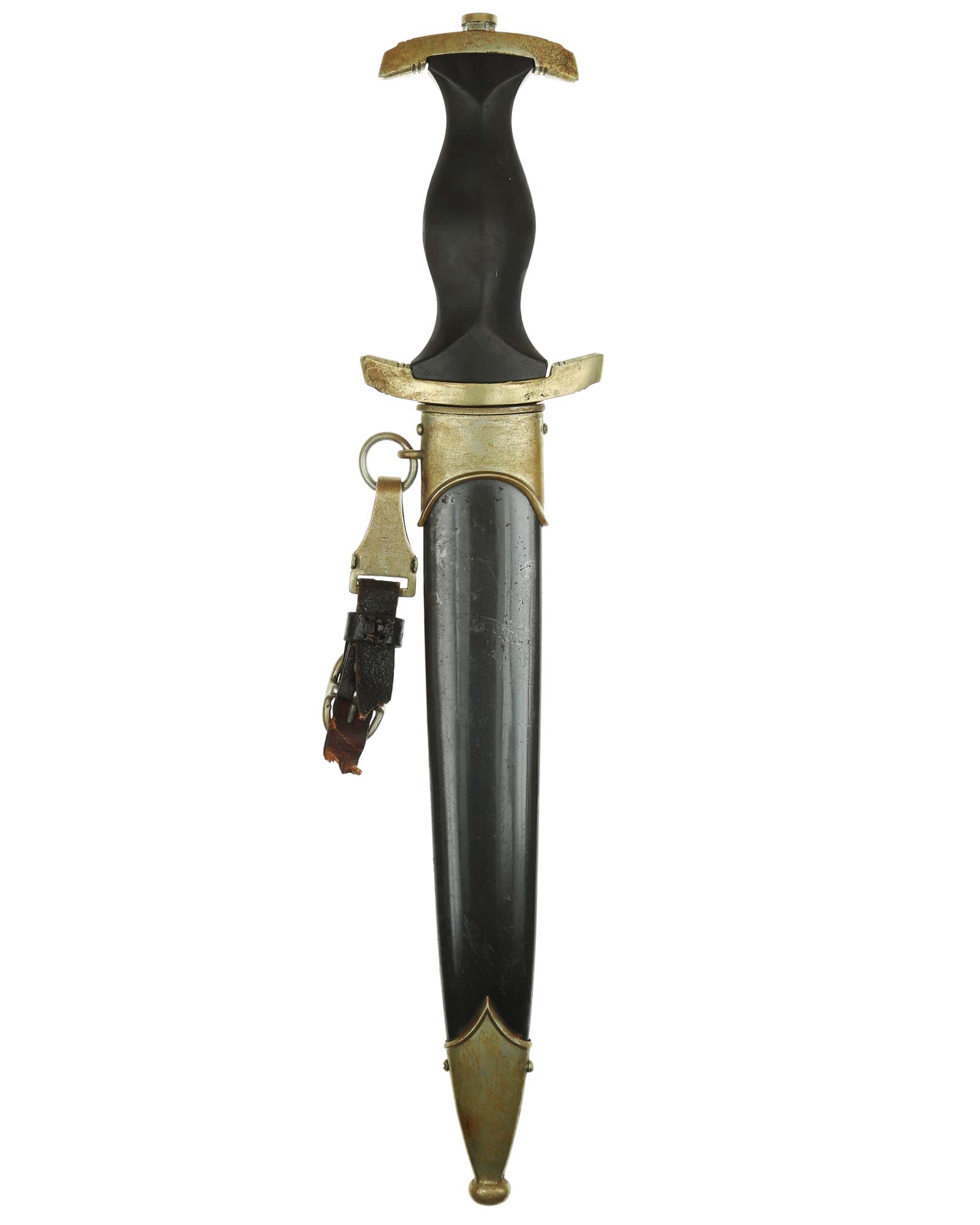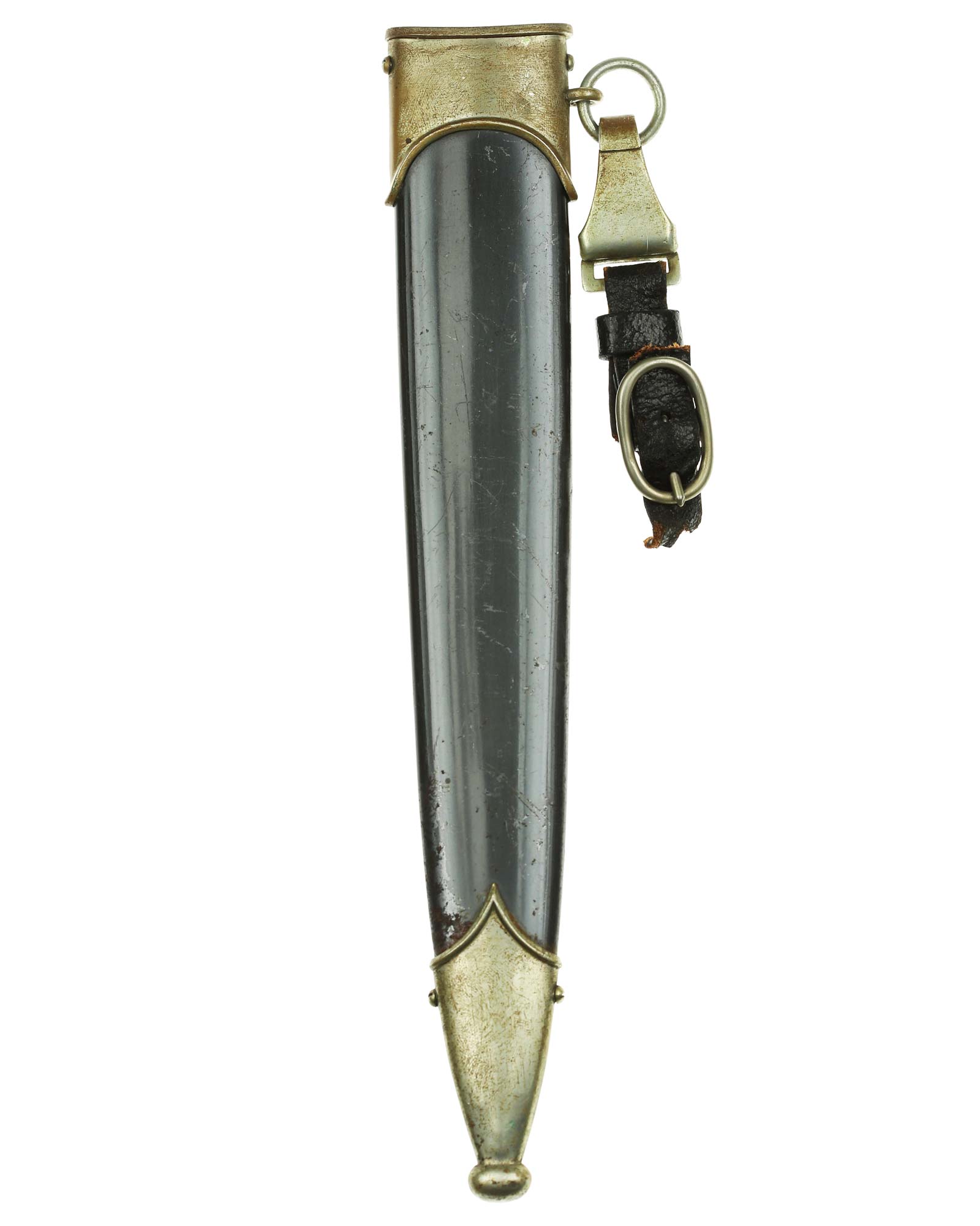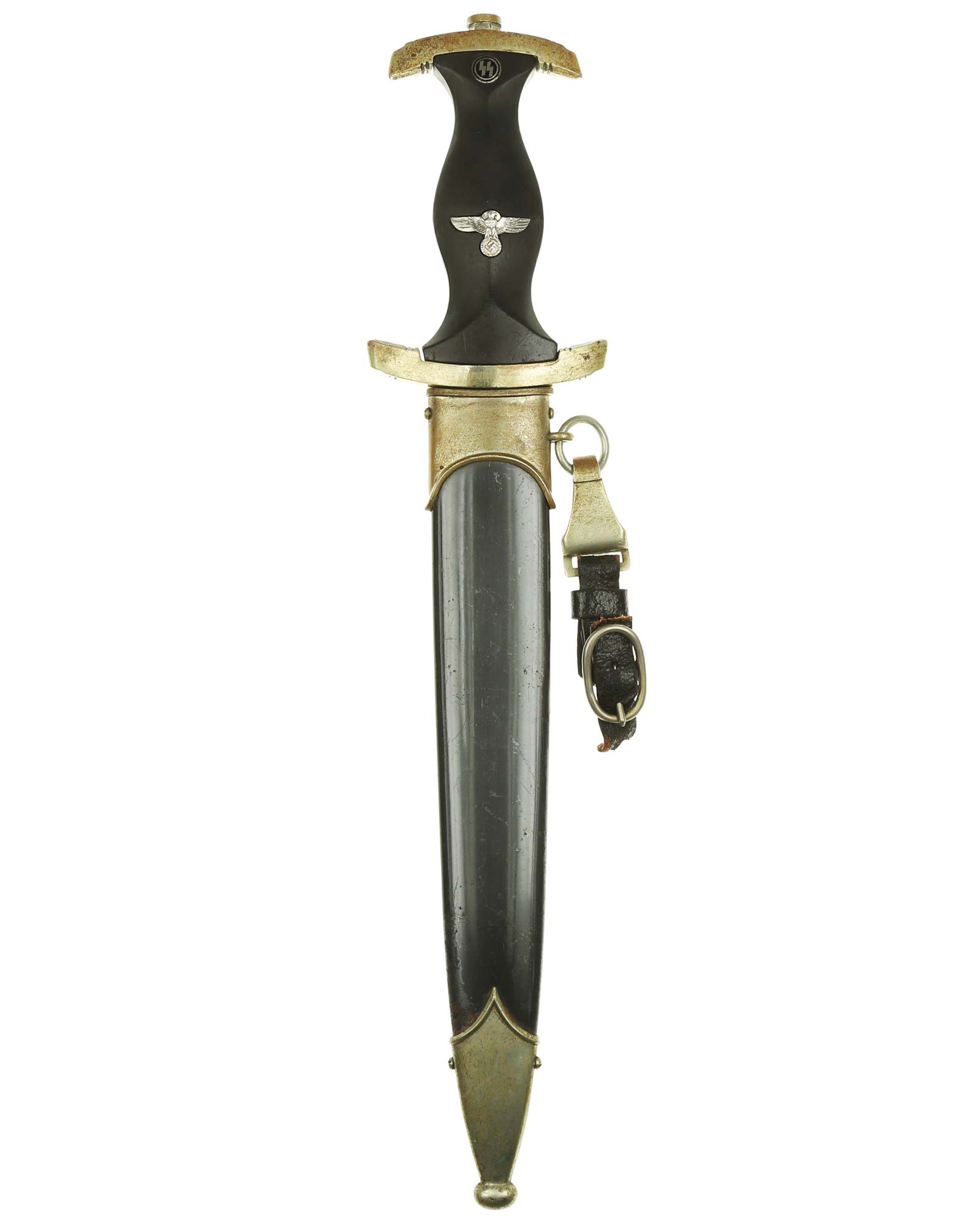 Dienstdolch der Schutzstaffel [SS] in später Fertigung und mit Ausrufezeichen "!". Der RZM Code auf der Klinge ist RZM M7/29 (Klittermann Haan & Moog GmbH, Solingen).