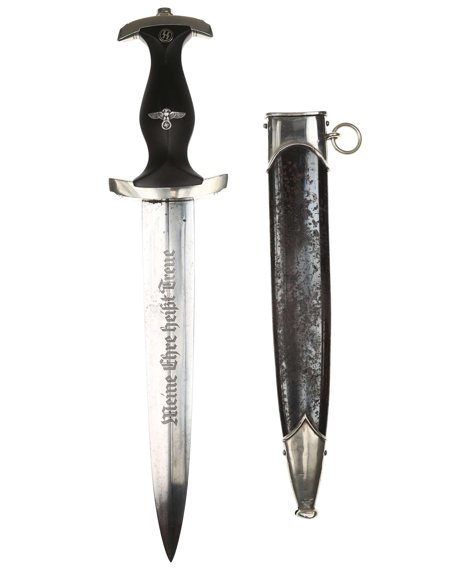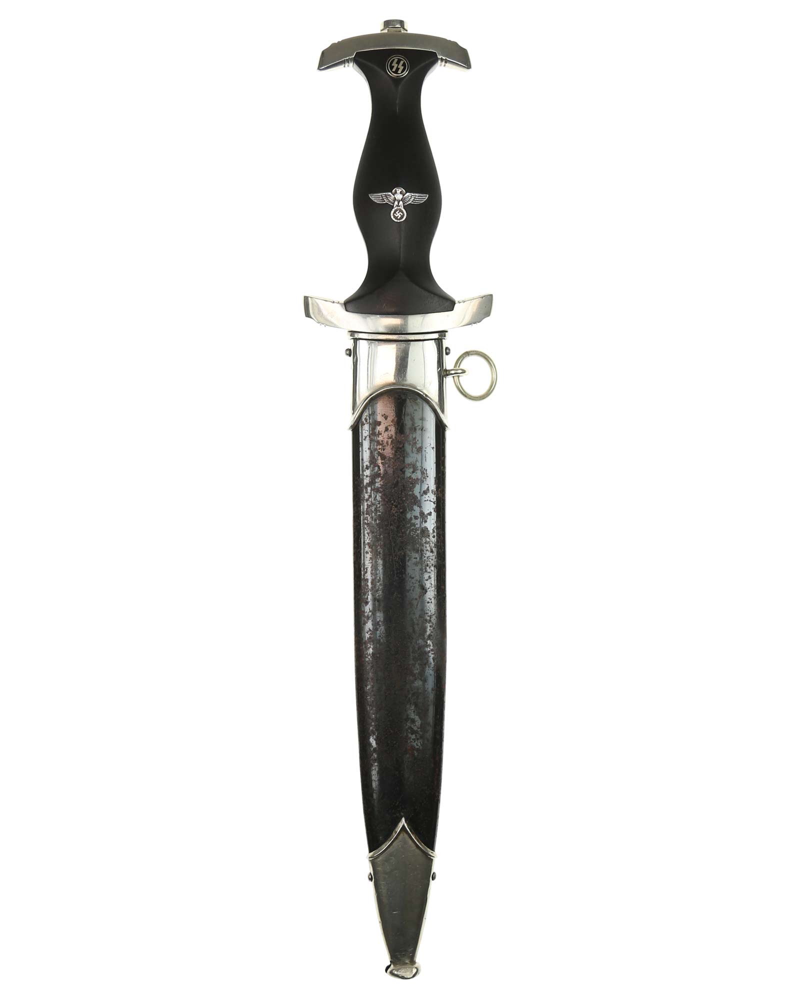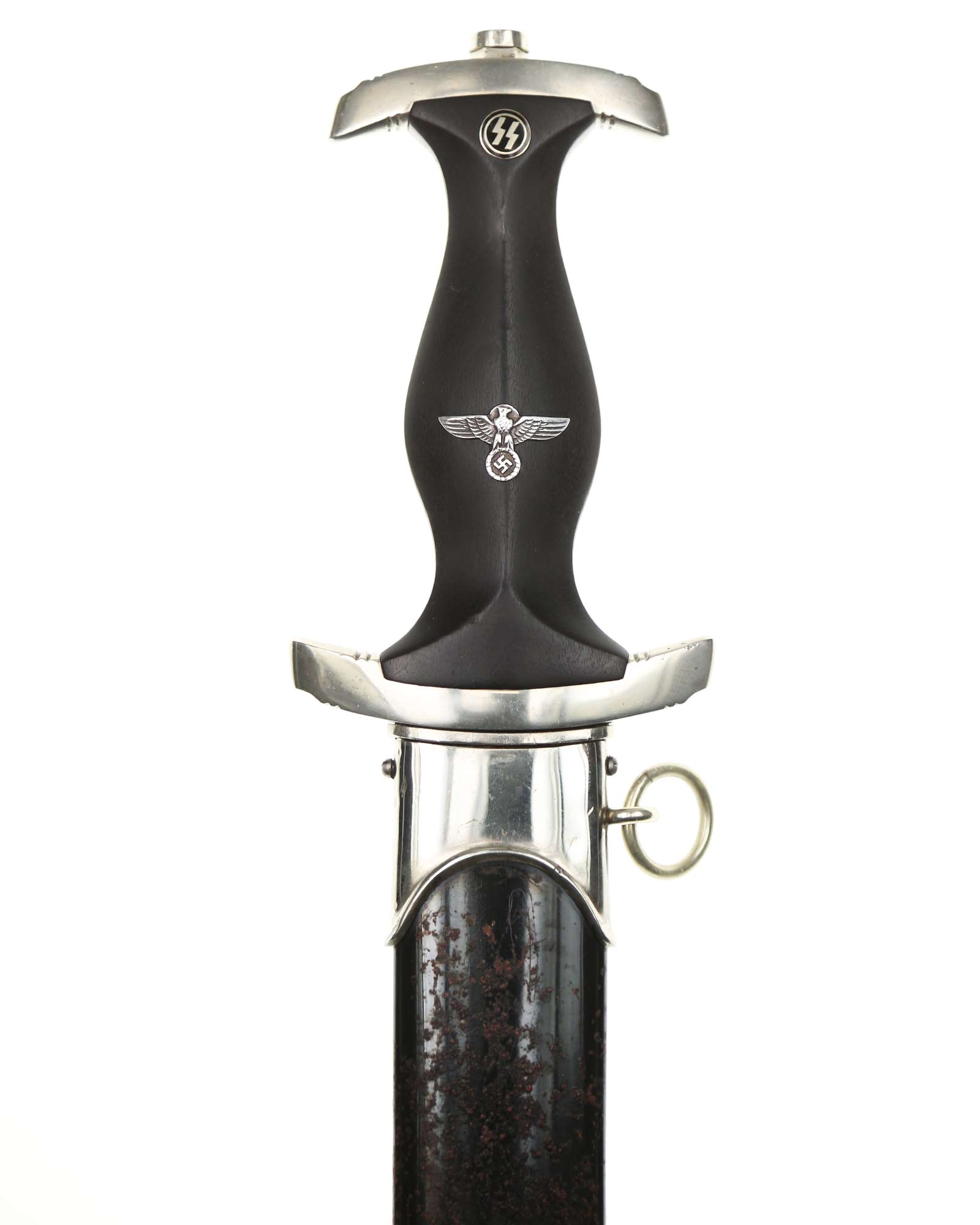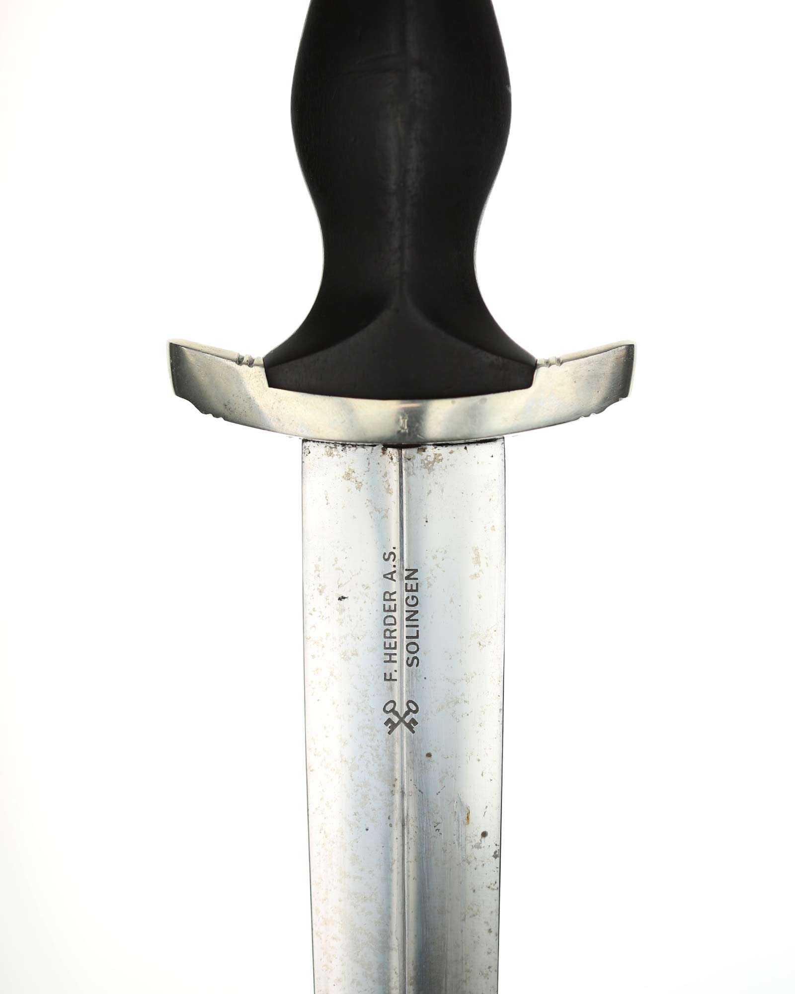 Dienstdolch M33 der Schutzstaffel [SS] in früher Fertigung. Der Hersteller auf der Klinge ist F. Herder A. & S. Solingen.