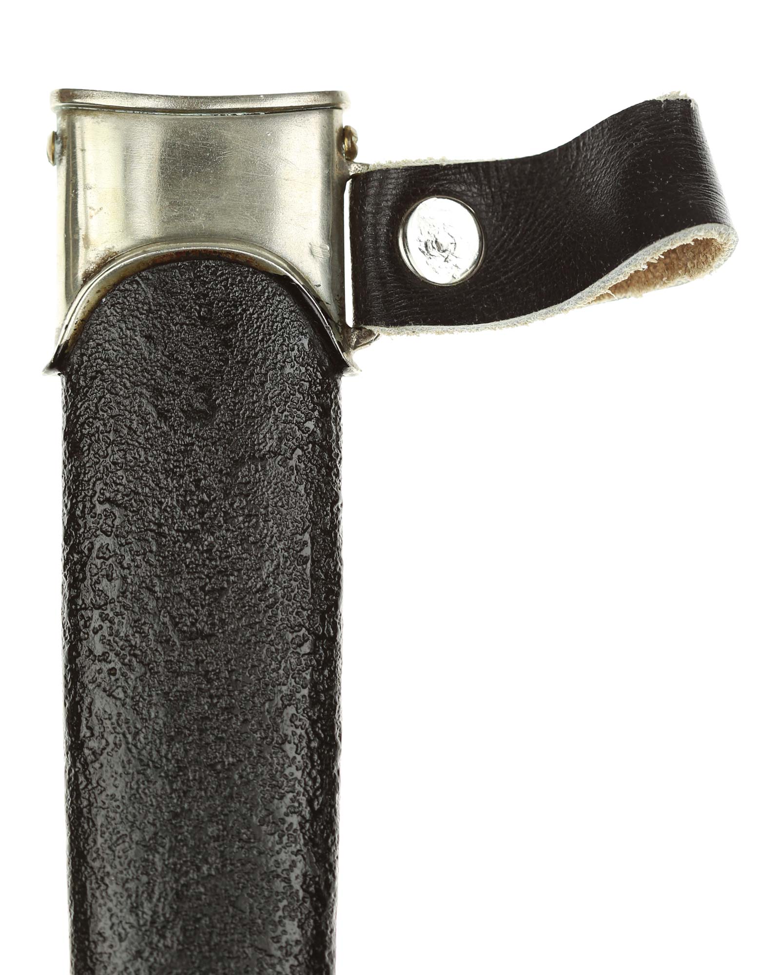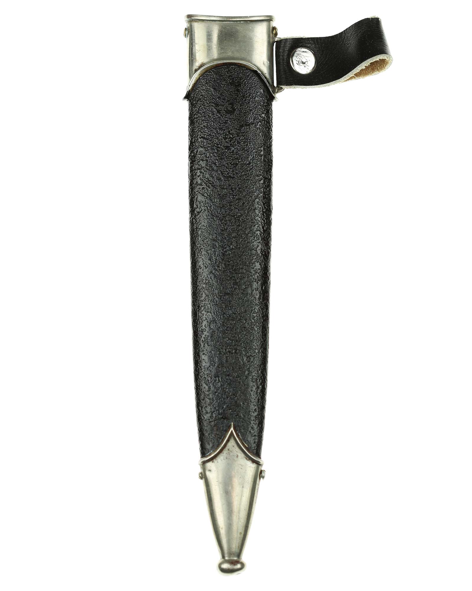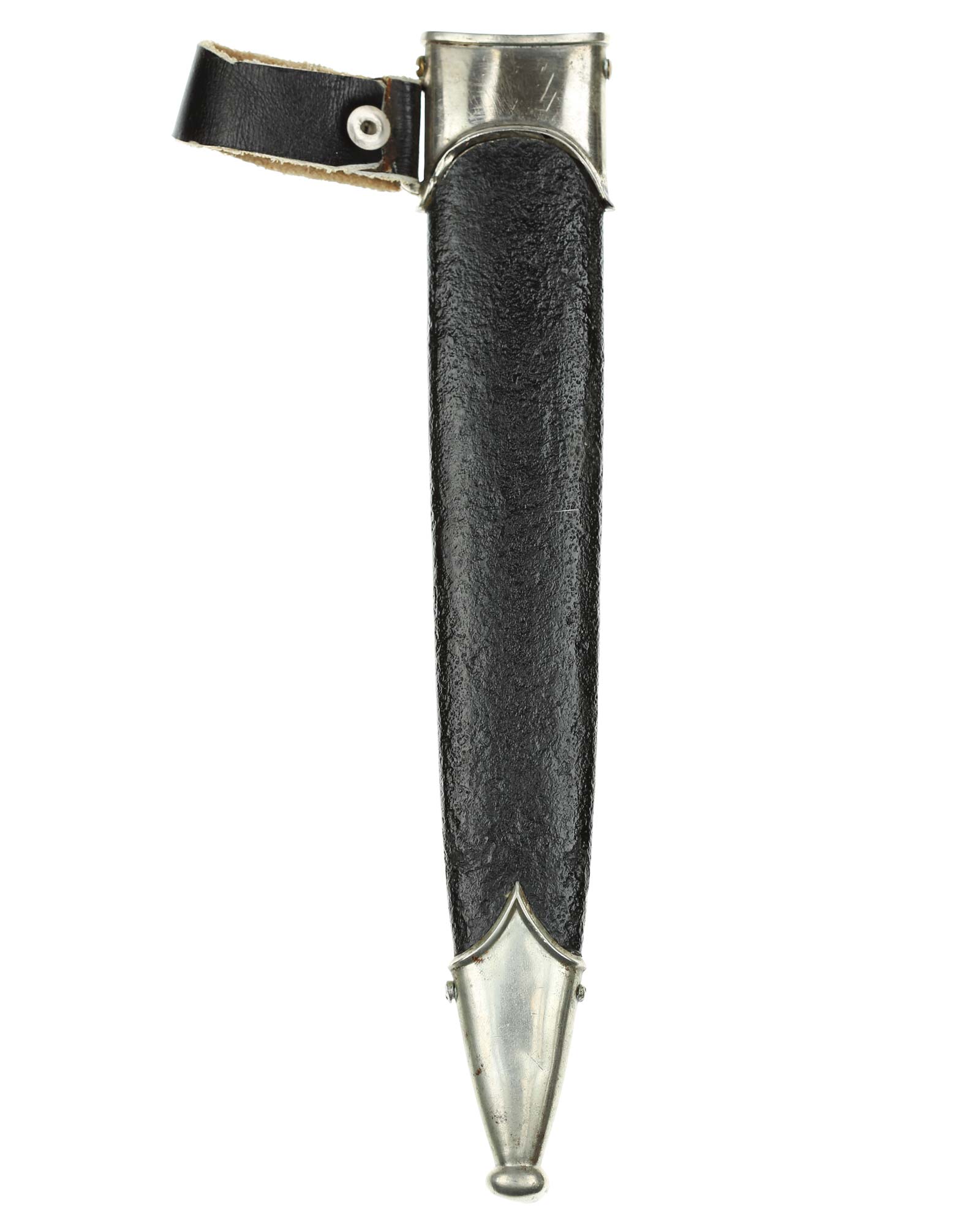 Scheide: Die Scheide ist aus Eisen und mit zwei Beschlägen. Die beiden Scheidenbeschläge sind aus Neusilber. Die Beschläge werden mit jeweils zwei Schräubchen seitlich gehalten.