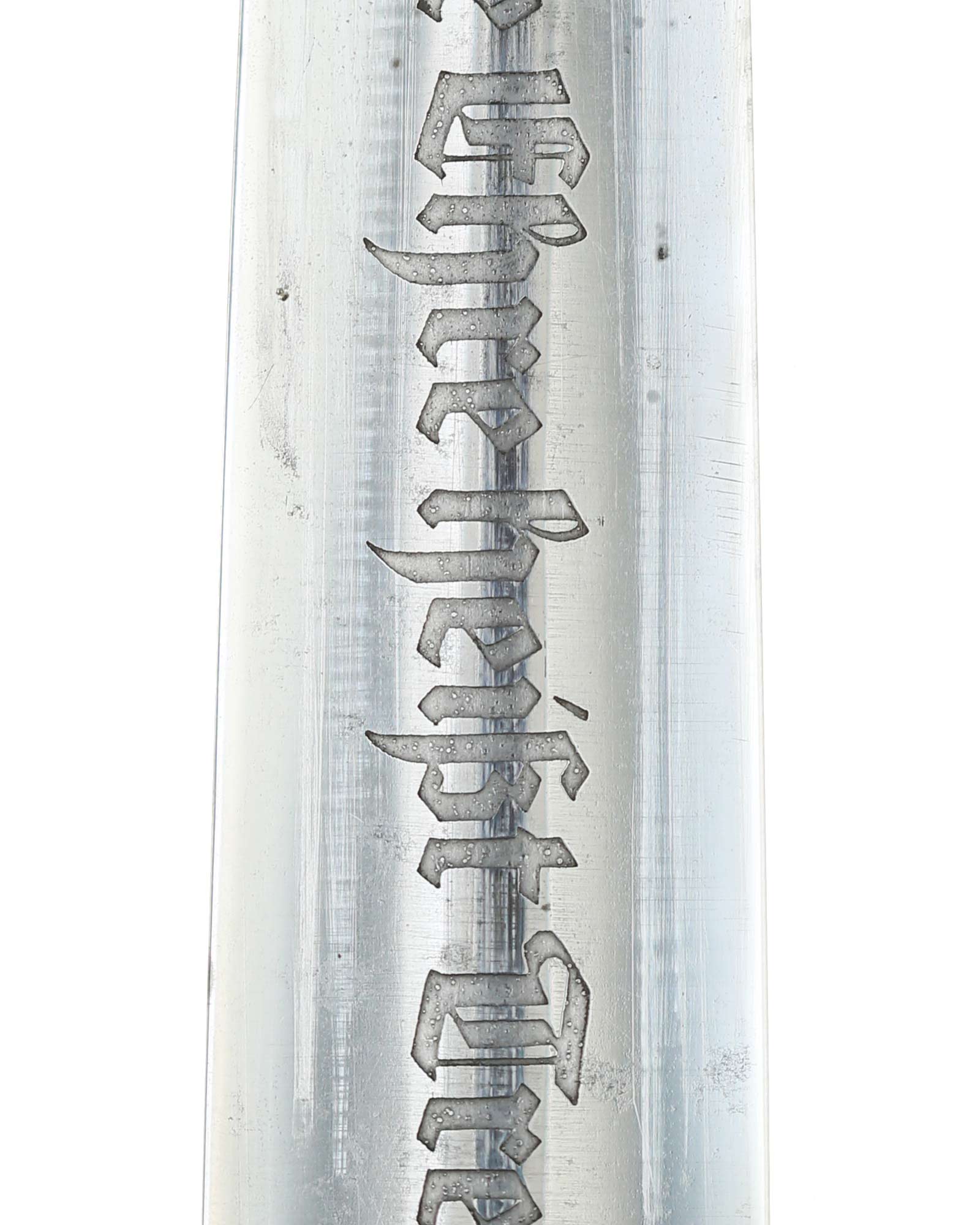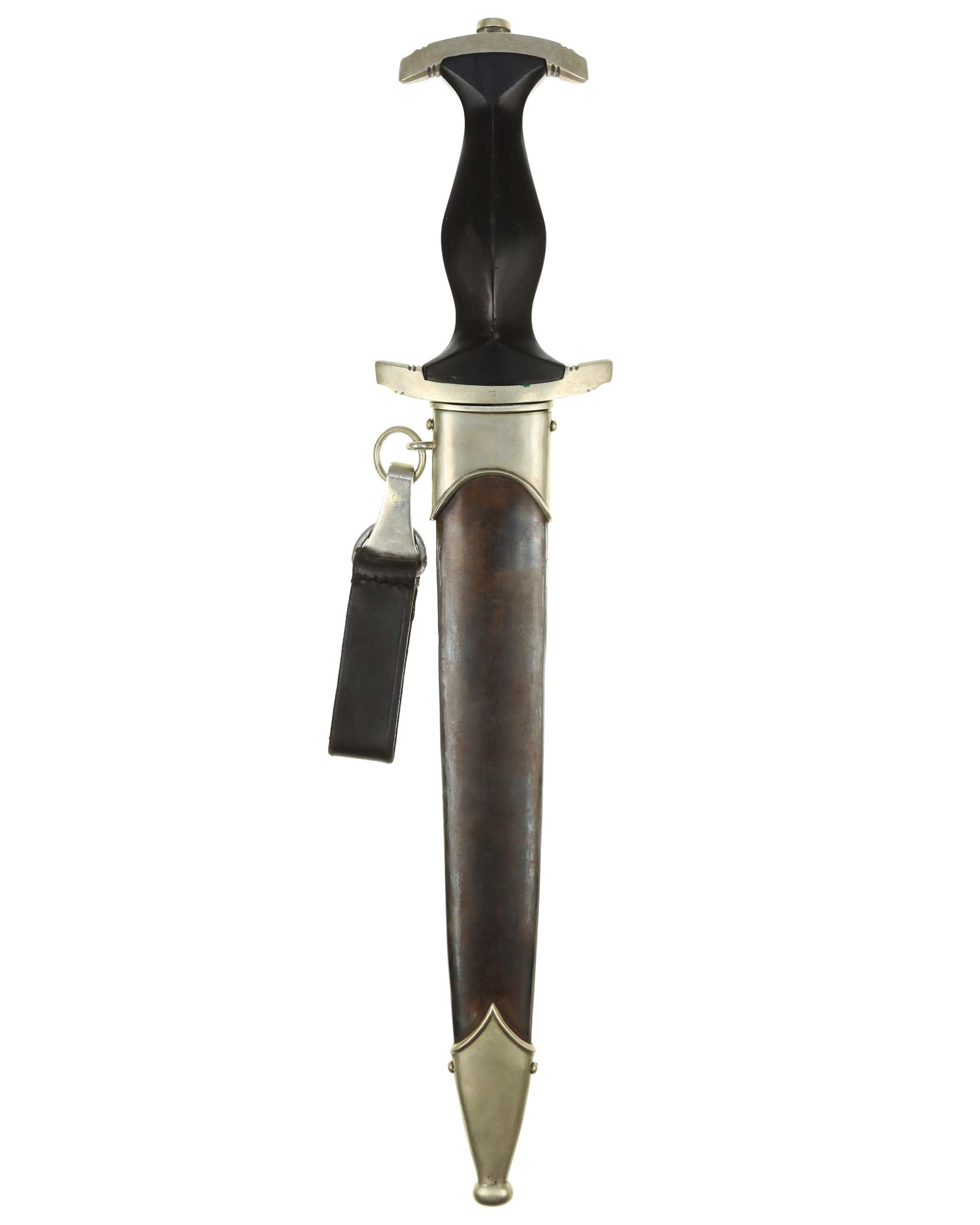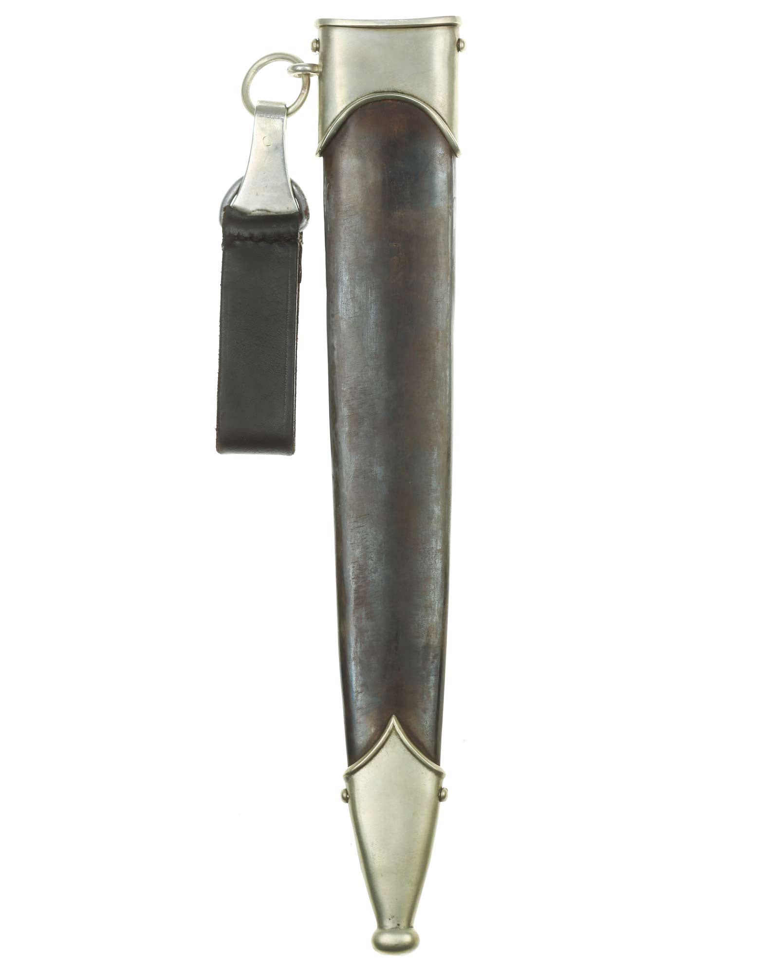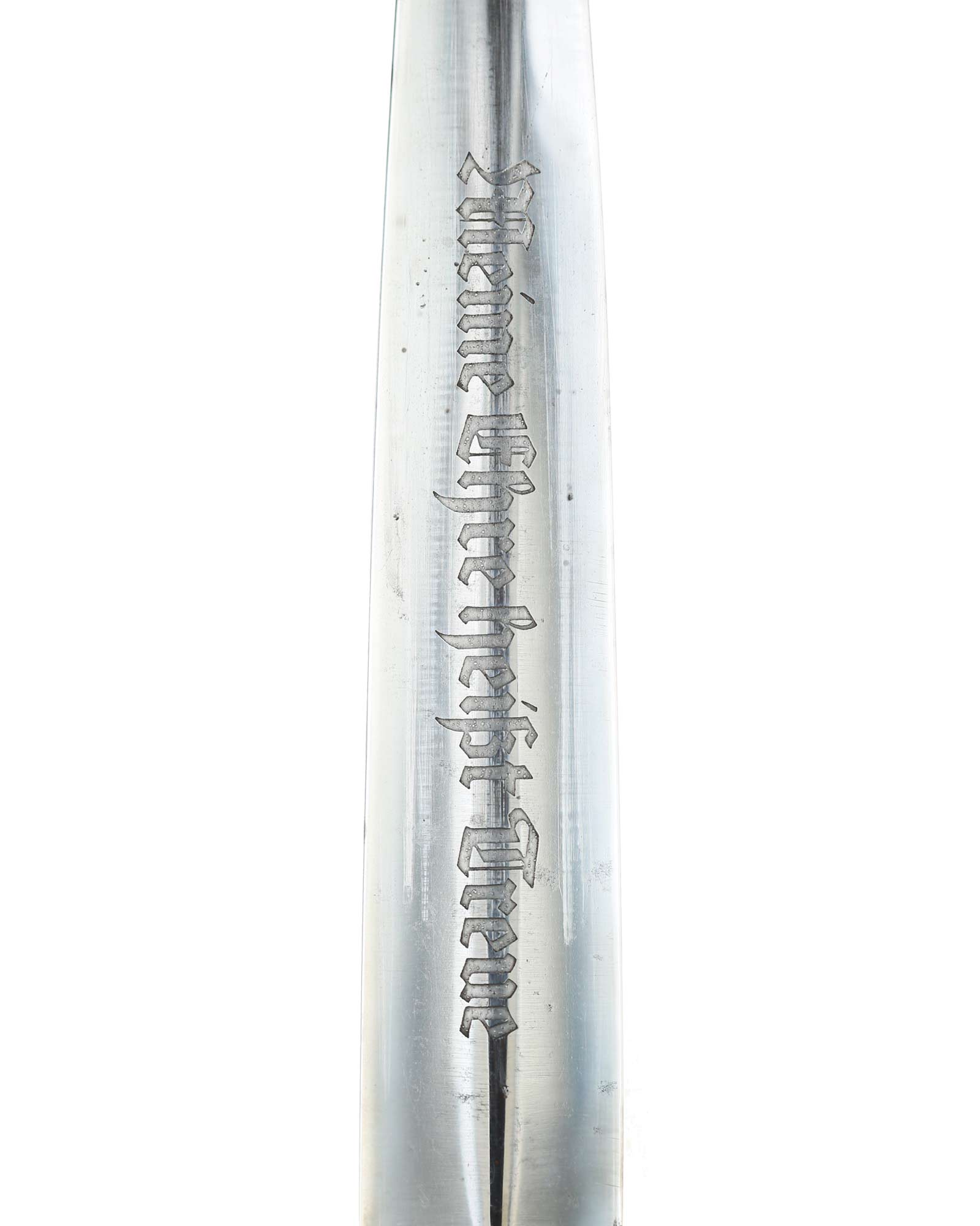 Klinge: Die Klinge ist blank und ohne Rost. Auf der Vorderseite der Klinge befindet sich die SS Devise, mit der Inschrift: Meine Ehre heißt Treue, die Rückseite ist mit kompletter Inschrift: „In herzlicher Kameradschaft Ernst Röhm“. Unten befindet sich das Herstellerlogo: Carl Eickhorn, Solingen. Klinge beidseitig mit leichten Schleifspuren von der Scheide.