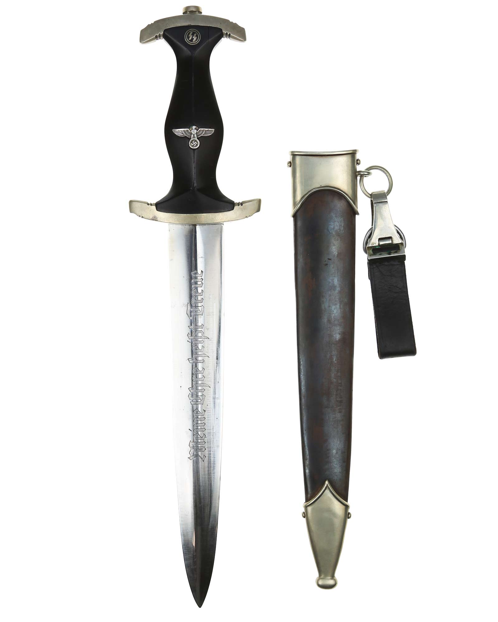 Ehrendolch der Schutzstaffel [SS] in früher Fertigung 1933-1935. Der SS Dolch ist mit kompletter Ernst Röhm Widmung. Der Hersteller auf der Klinge ist Carl Eickhorn in Solingen (glatter/runder Schwanz).