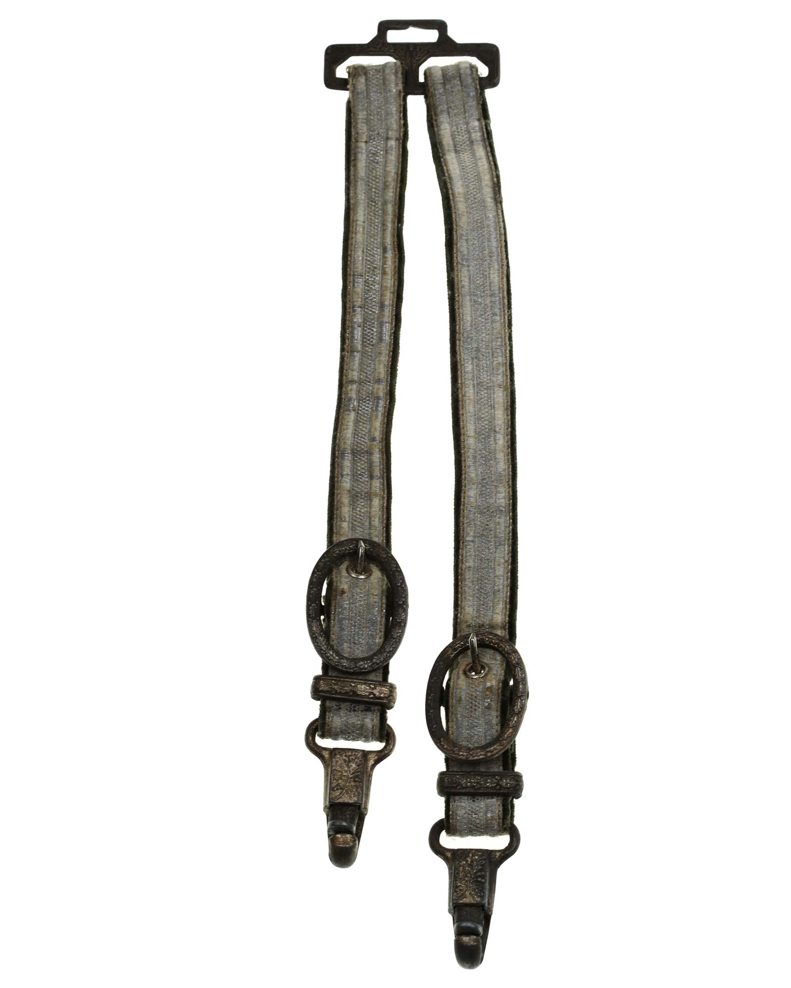 Scheide: Die Scheide besteht aus Mundblech und aus zwei eichenlaubverzierten Scheidenbändern mit zwei losen Trageringen, diese sind komplett geschlossen. Die Scheide ist aus einem Stück Stahlblech gezogen und auf der Vorder- und Rückseite mit körniger Oberflächenstruktur versehen, beidseitig im unteren Bereich eingedrückt. Die Spitze ist abgerundet und nicht eingedrückt. Das Mundstück ist separat eingesetzt, an den beiden Seiten mit Schräubchen befestigt.