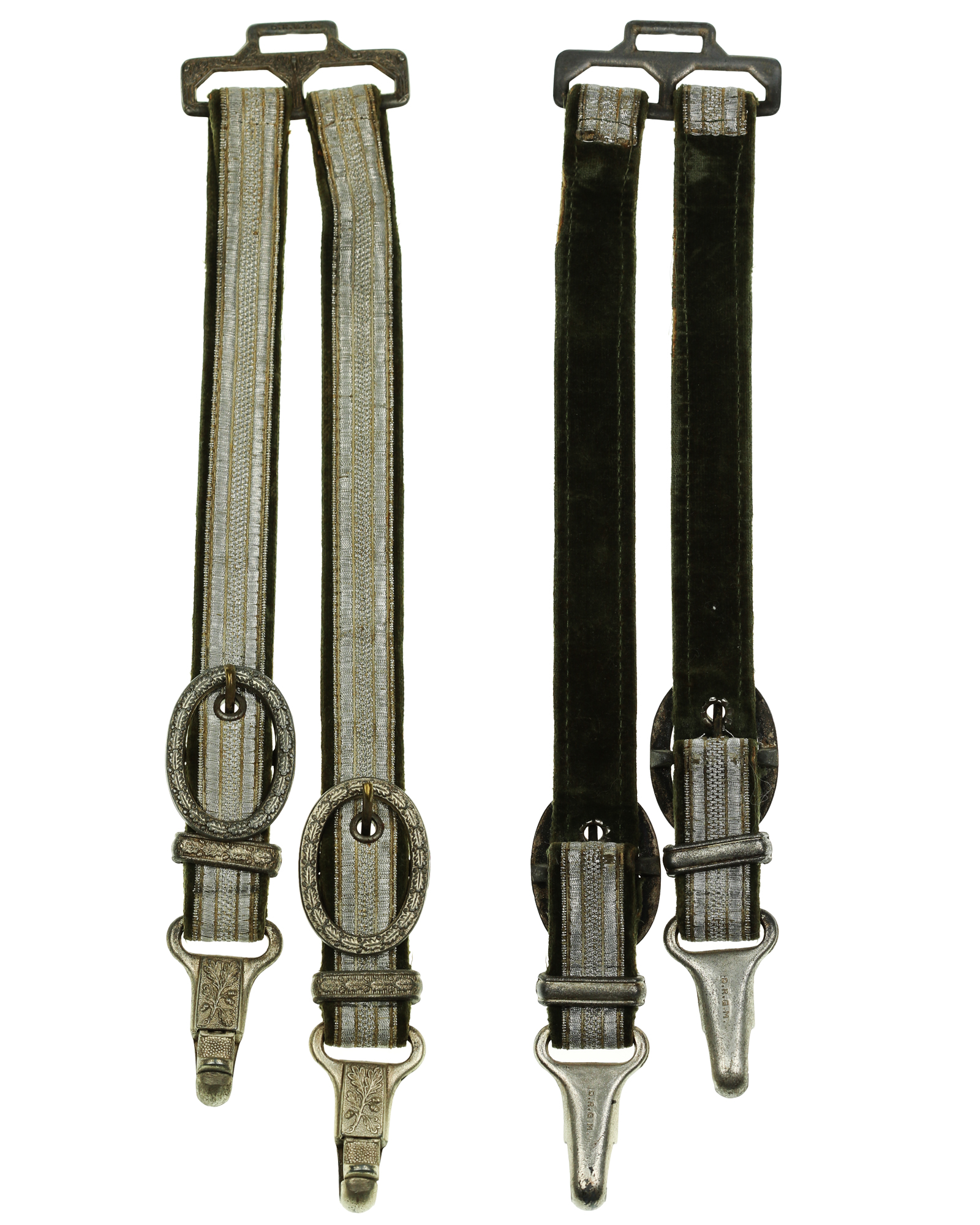 Gehänge: Zweiteiliges Gehänge silbergewirkt und mit Samt unterlegt.