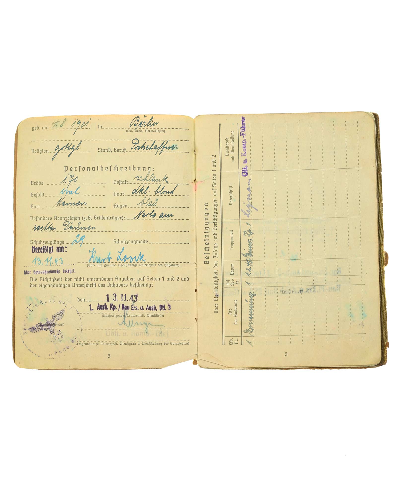 Soldbuch für Pionier der Wehrmacht - Kurt Loock