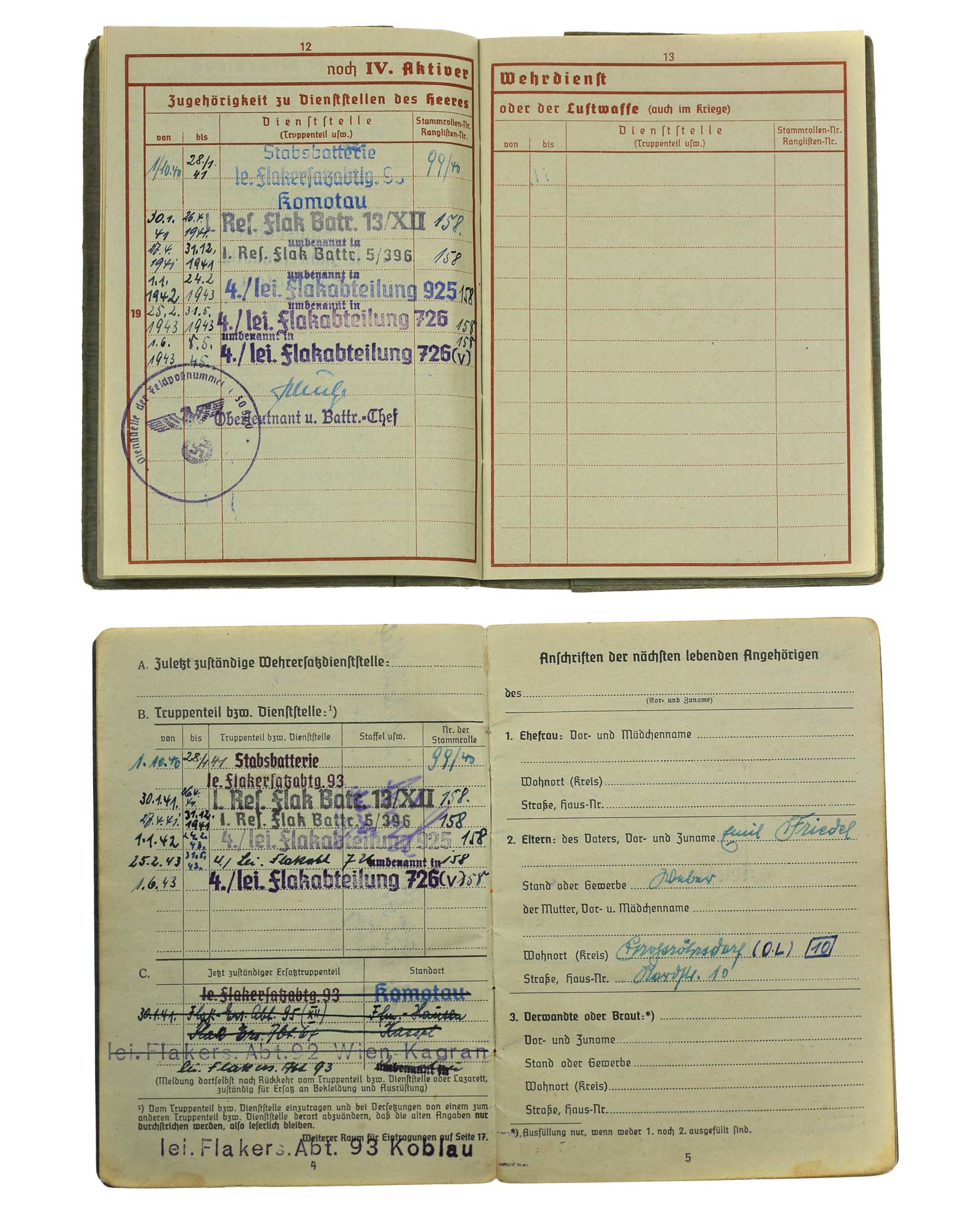 Wehrpass und Soldbuch für einen späteren Unteroffizier