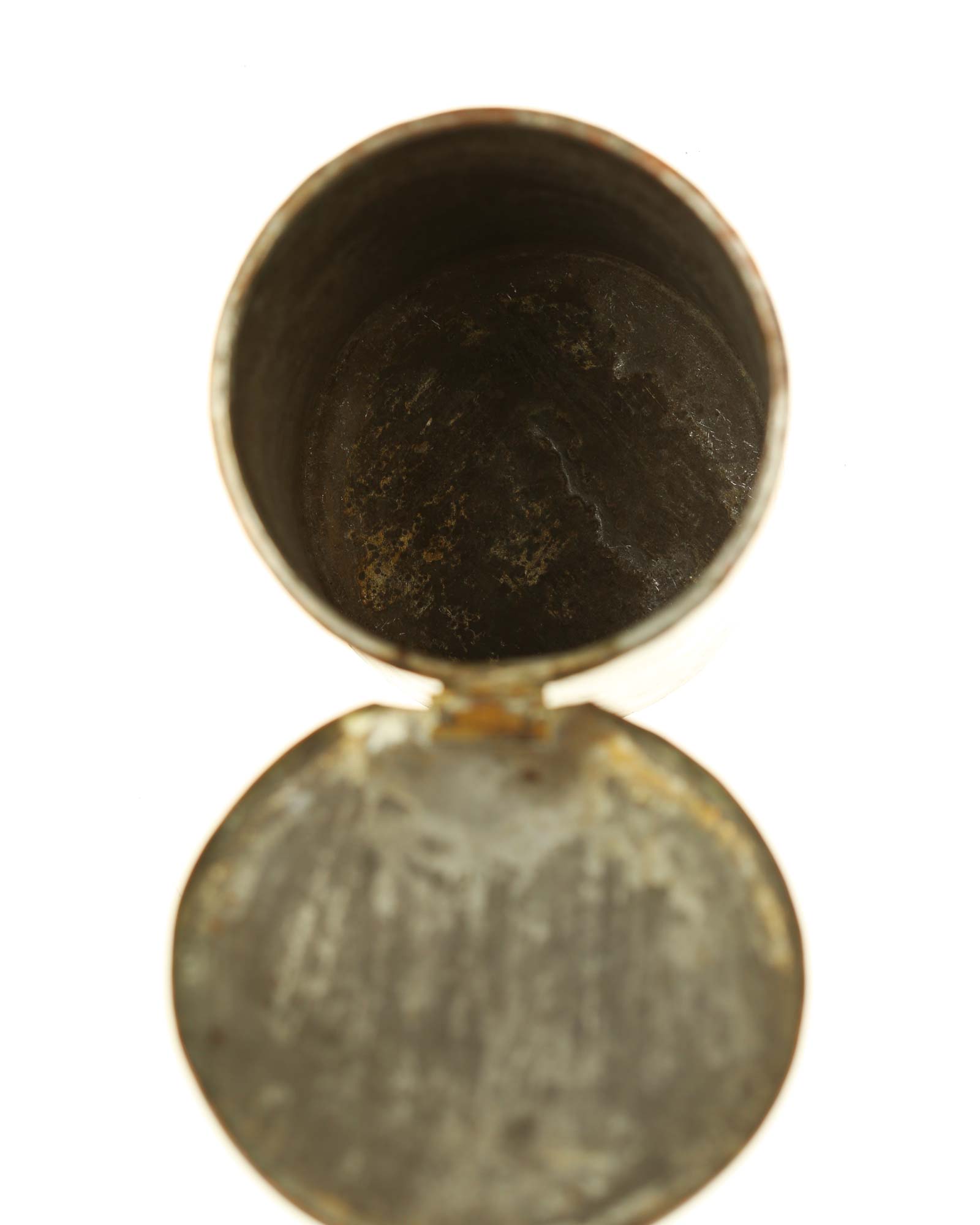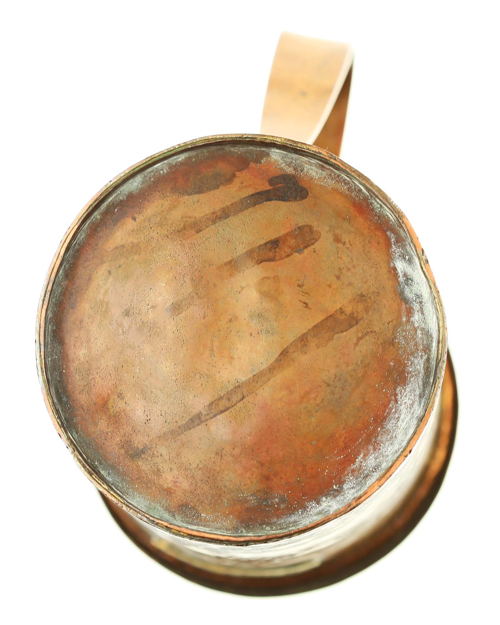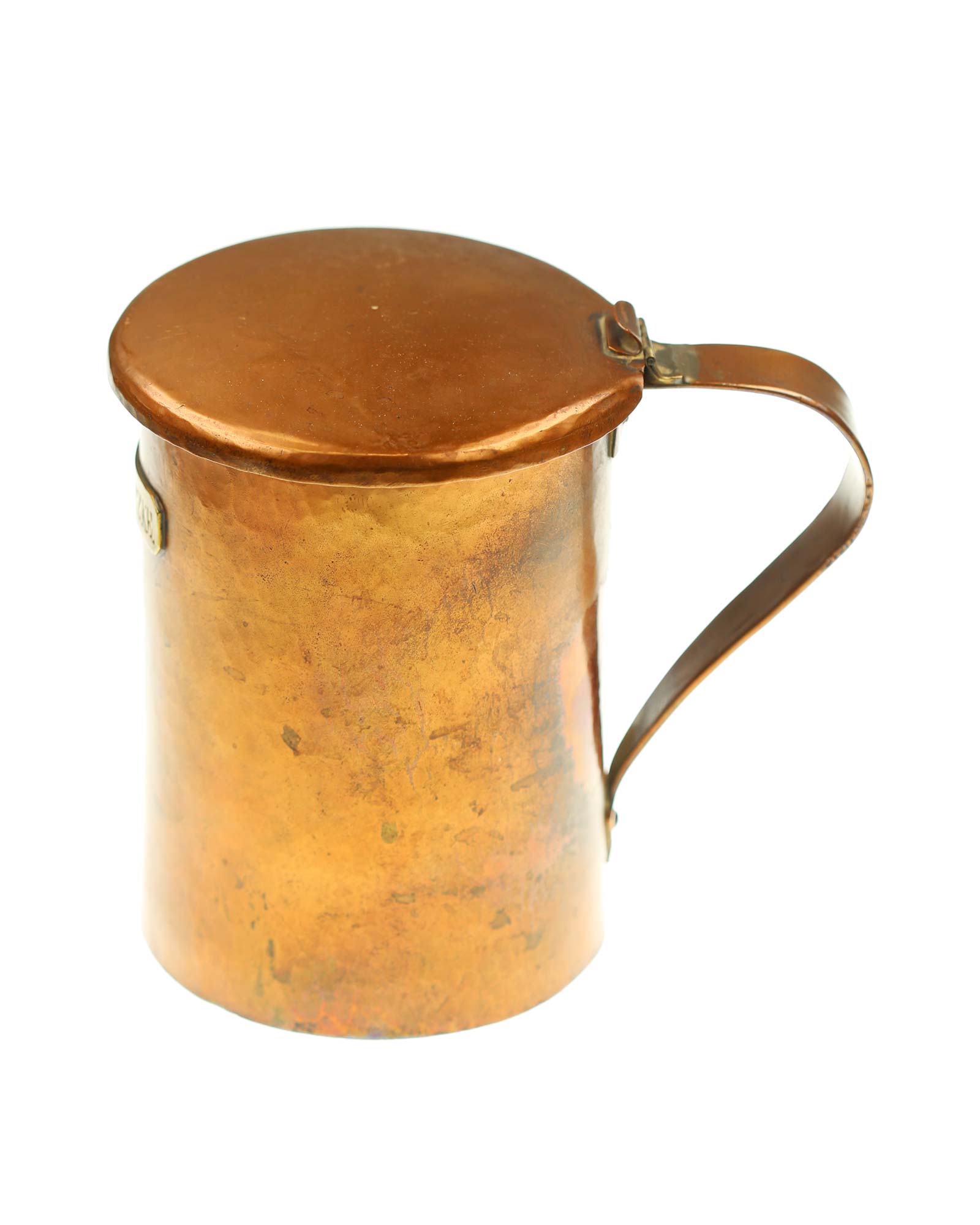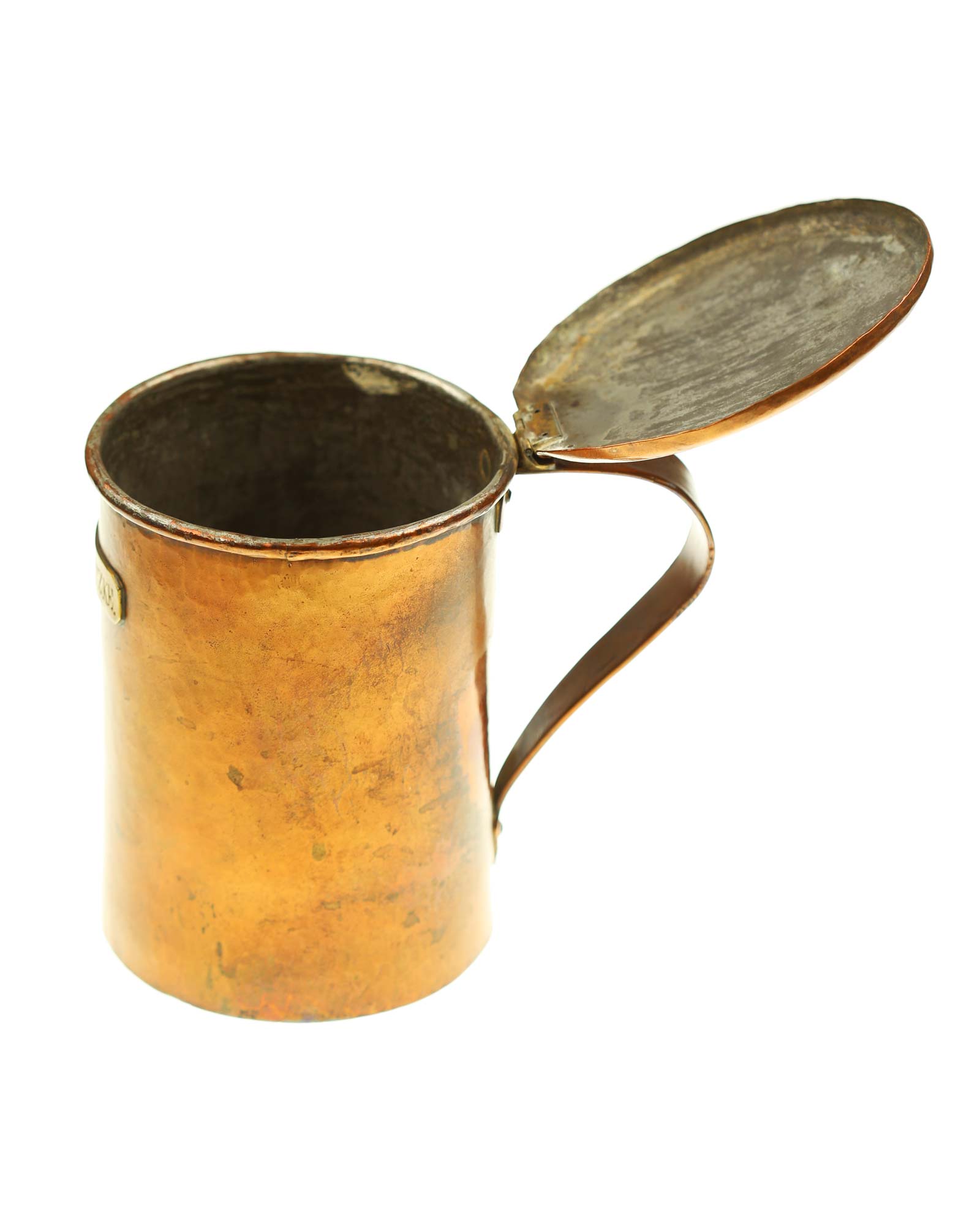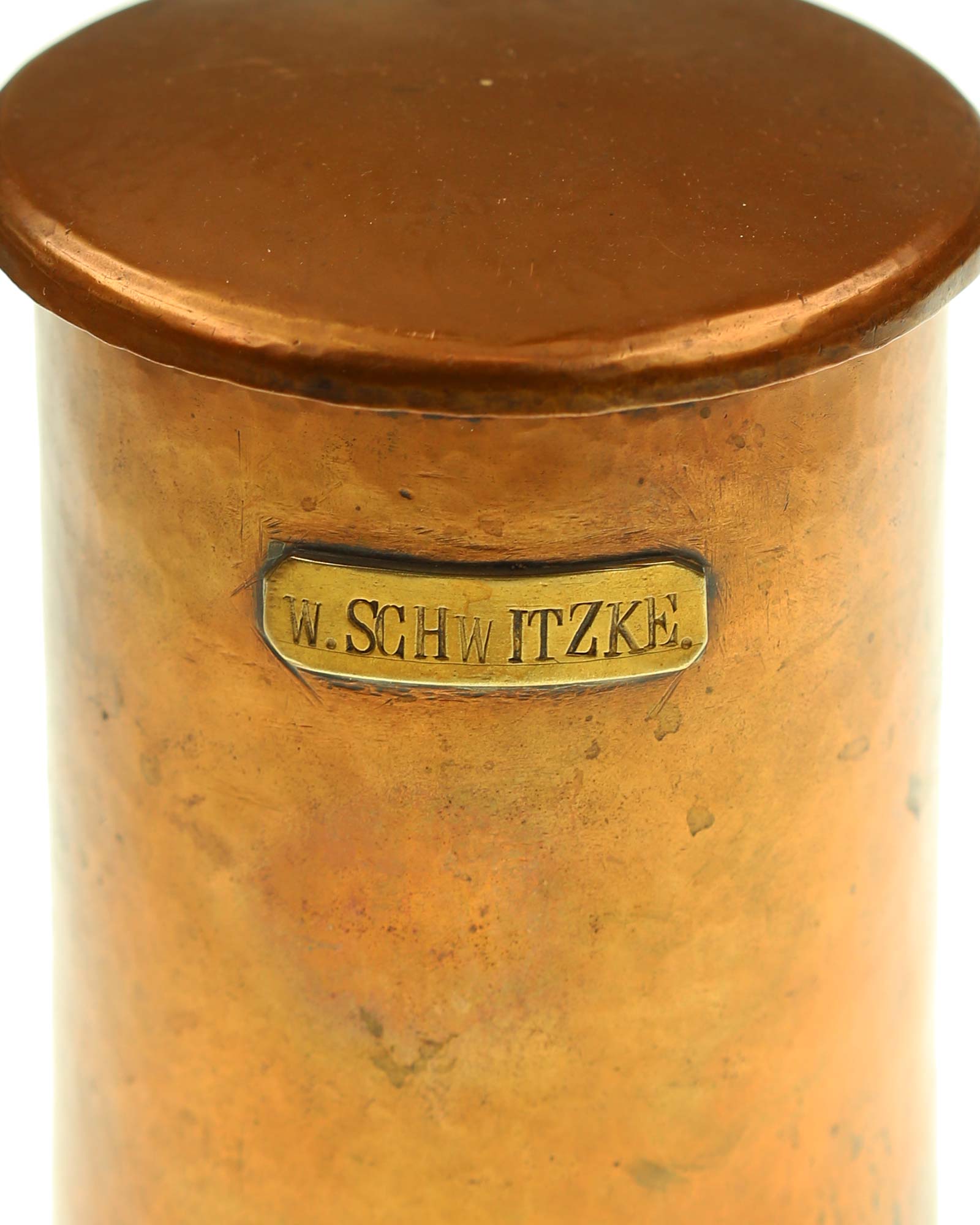 Messing Krug mit Deckel und Widmung (W. Schwitzke).