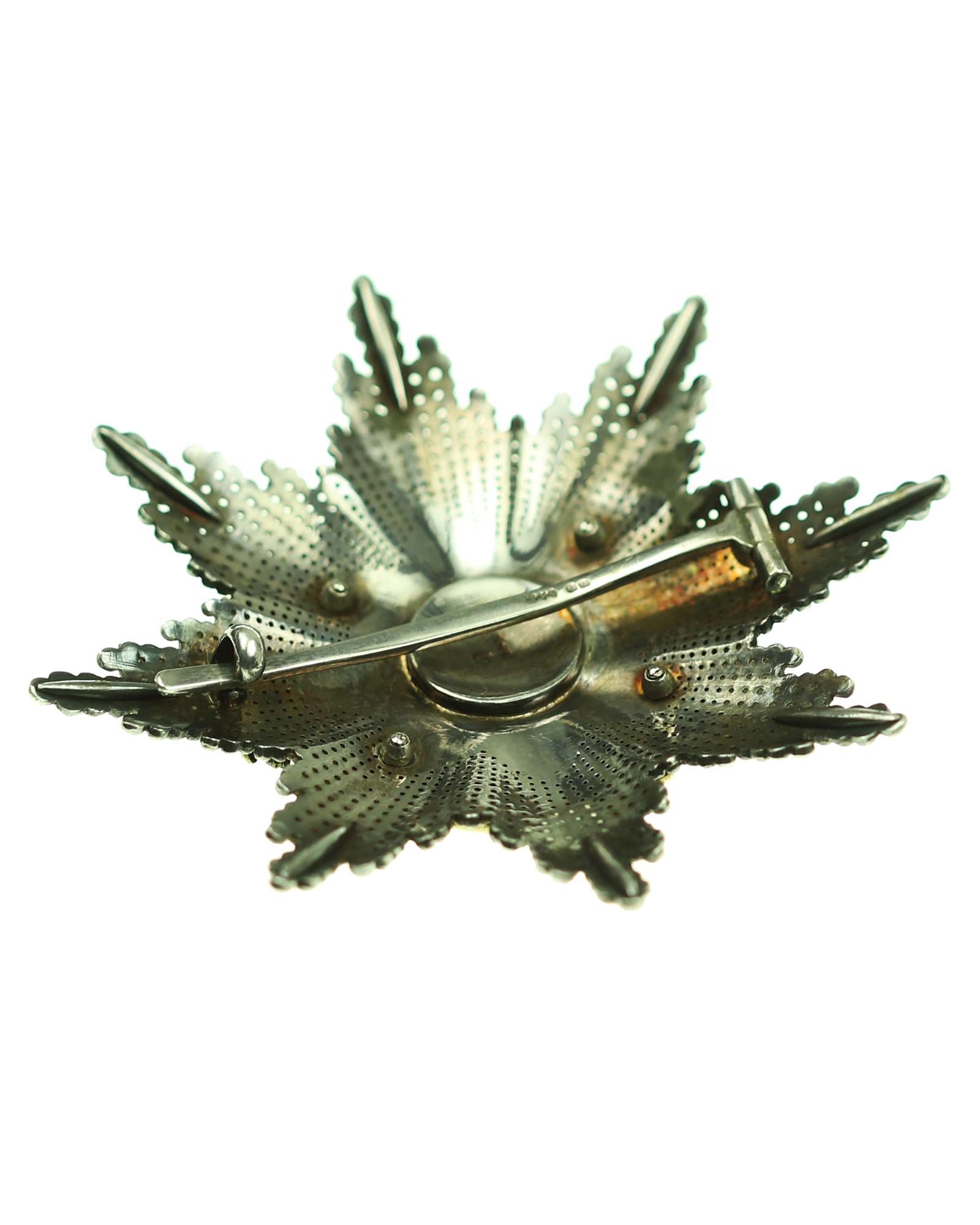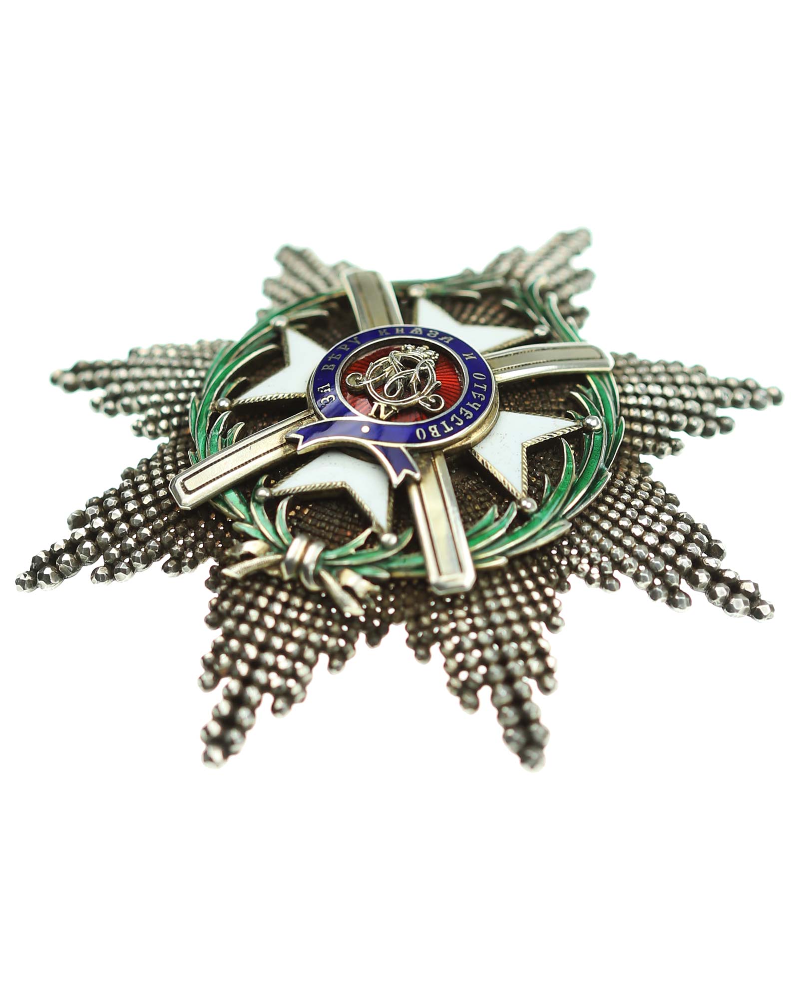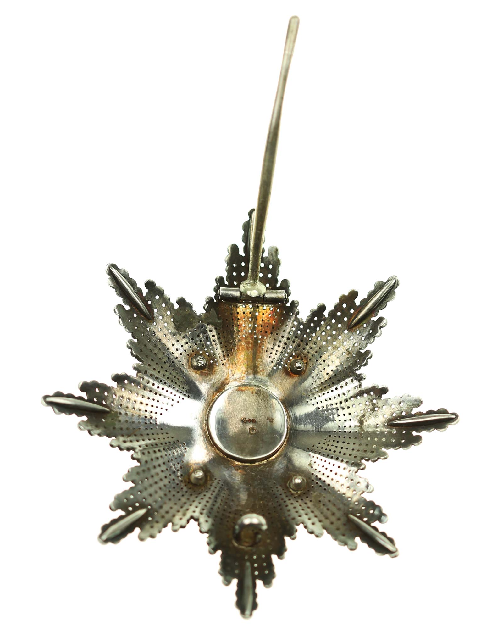 Orden des Kreuzes von Takowo, 2. Modell (1868-1903), Komtur Stern, Serbien. Silber, Korpus brillantiert und reperziert, die mehrteilige Auflage vergoldet und emailliert, vierfach verschraubt mit dem Korpus, sowohl die Medaillonrückplatte und die Nadel mehrfach gepunzt, u.a. G.A.S., die Strahlenspitzen verstärkt.