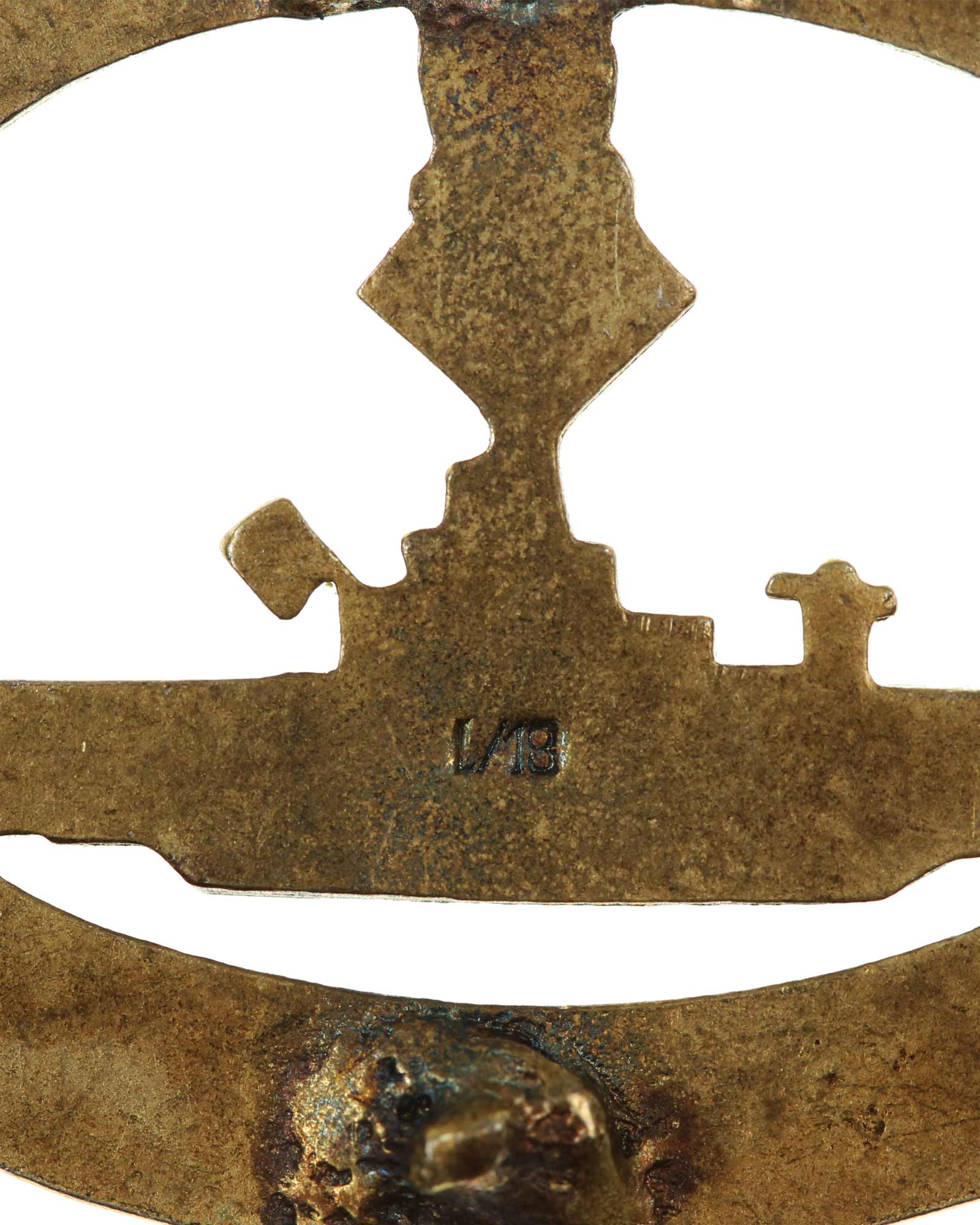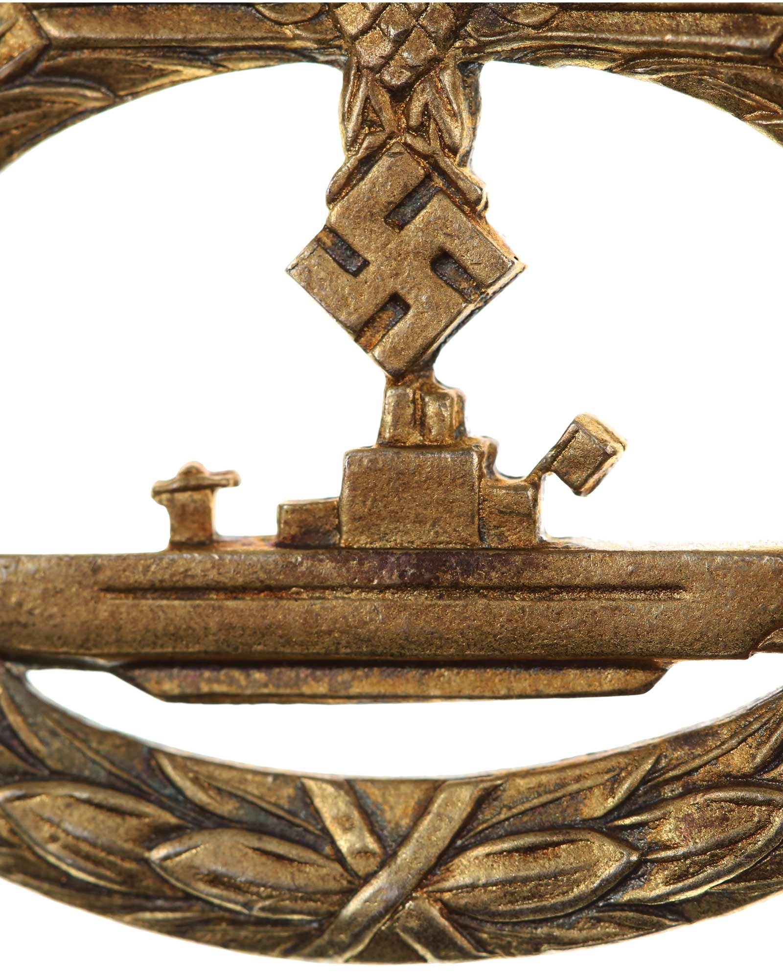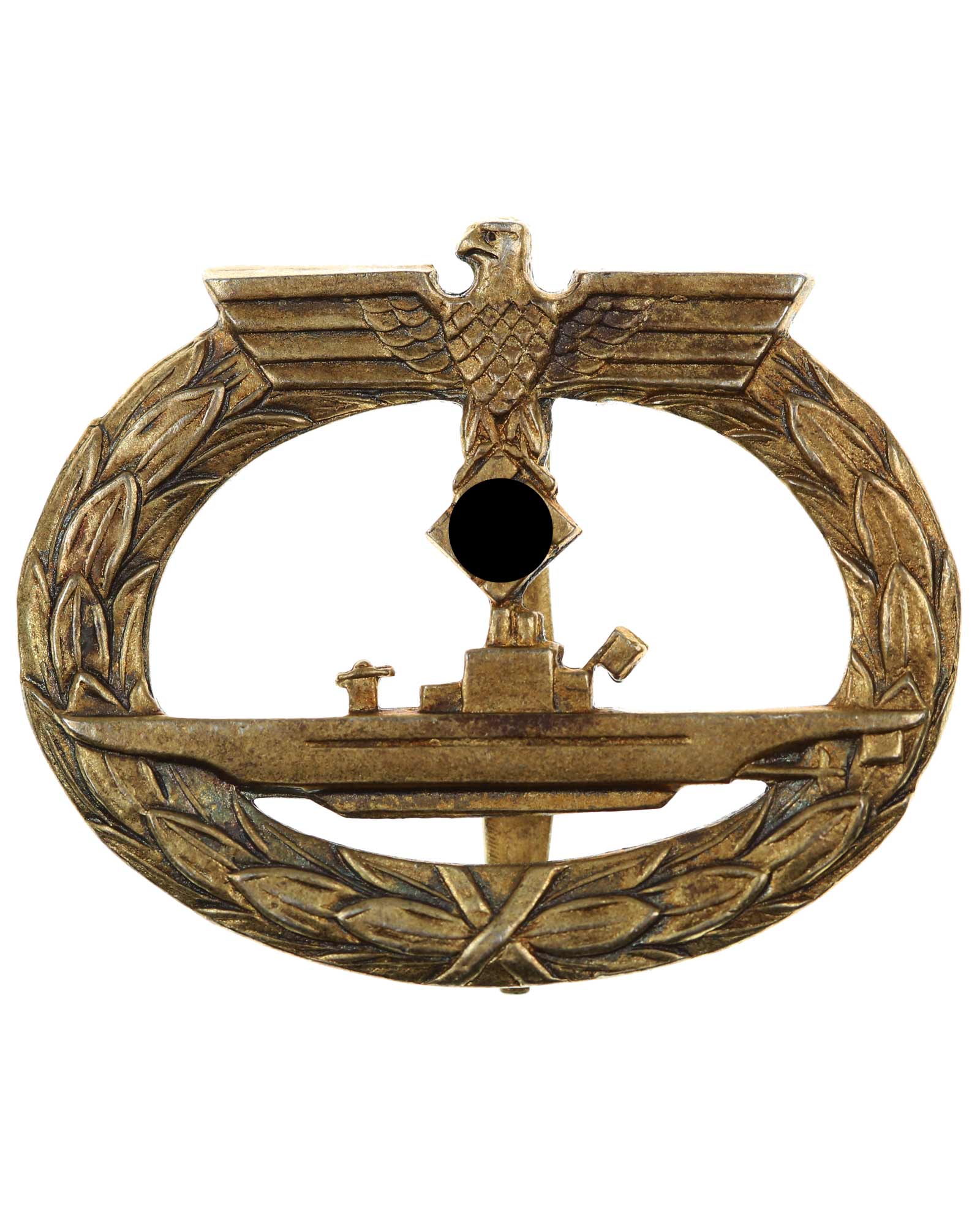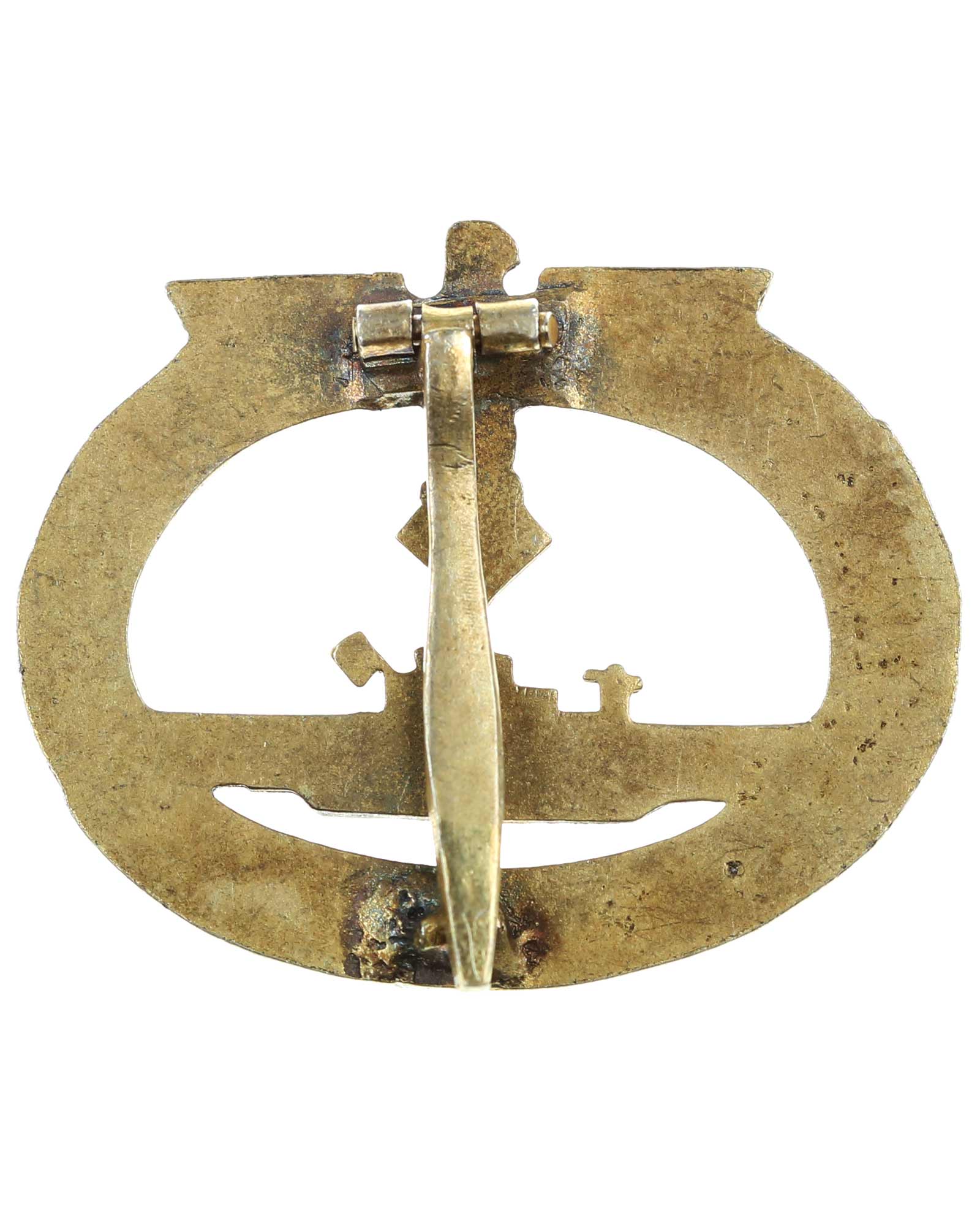 U-Bootkriegsabzeichen in Buntmetall vergoldet, markiert. Halteröse defekt.