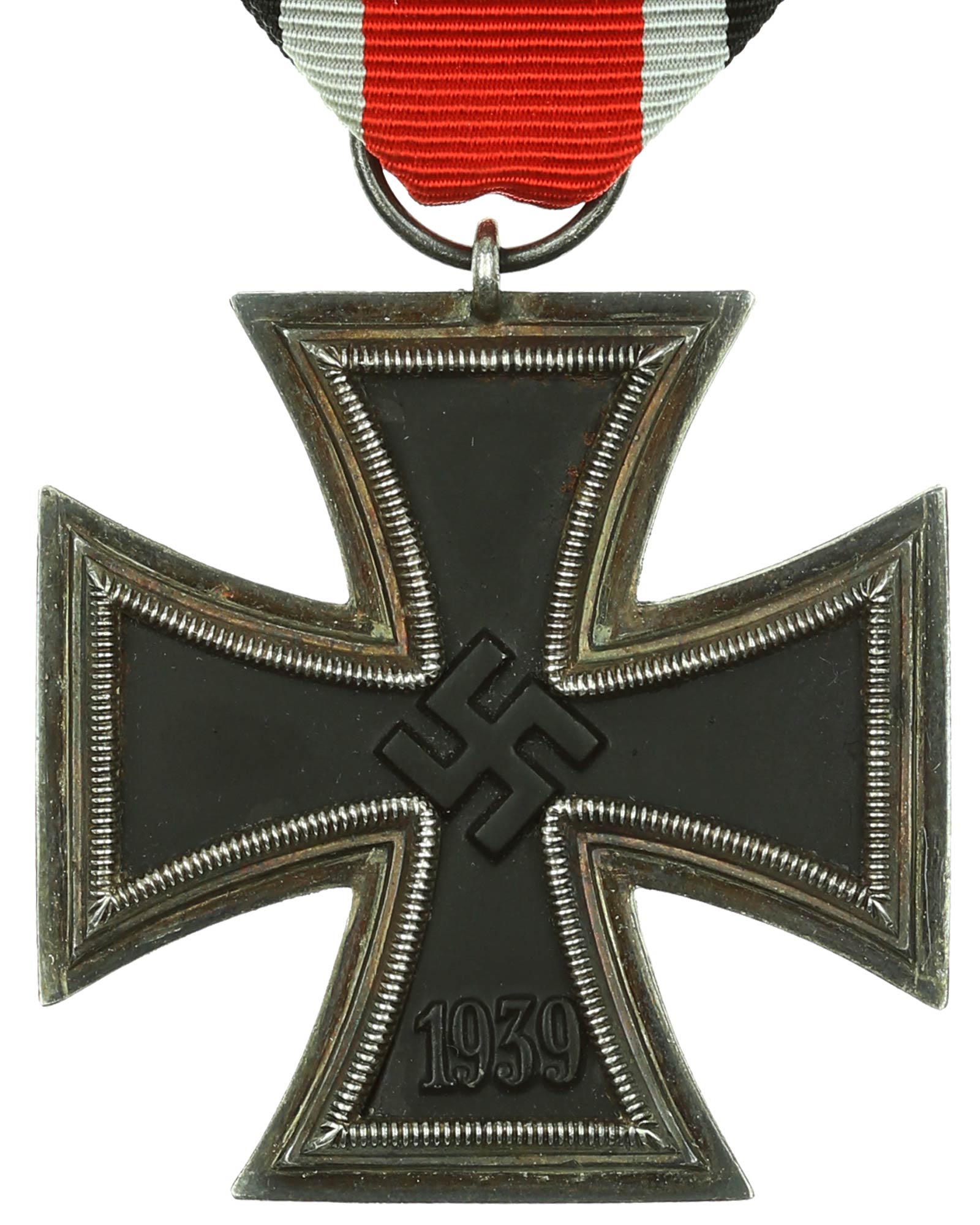 EK 1939, 2. Klasse mit geschwärztem Eisenkern am Band. Ohne Herstellermarkierung. Gesamtgewicht 20 g. Abmessungen: 44,41 x 44,21 mm.