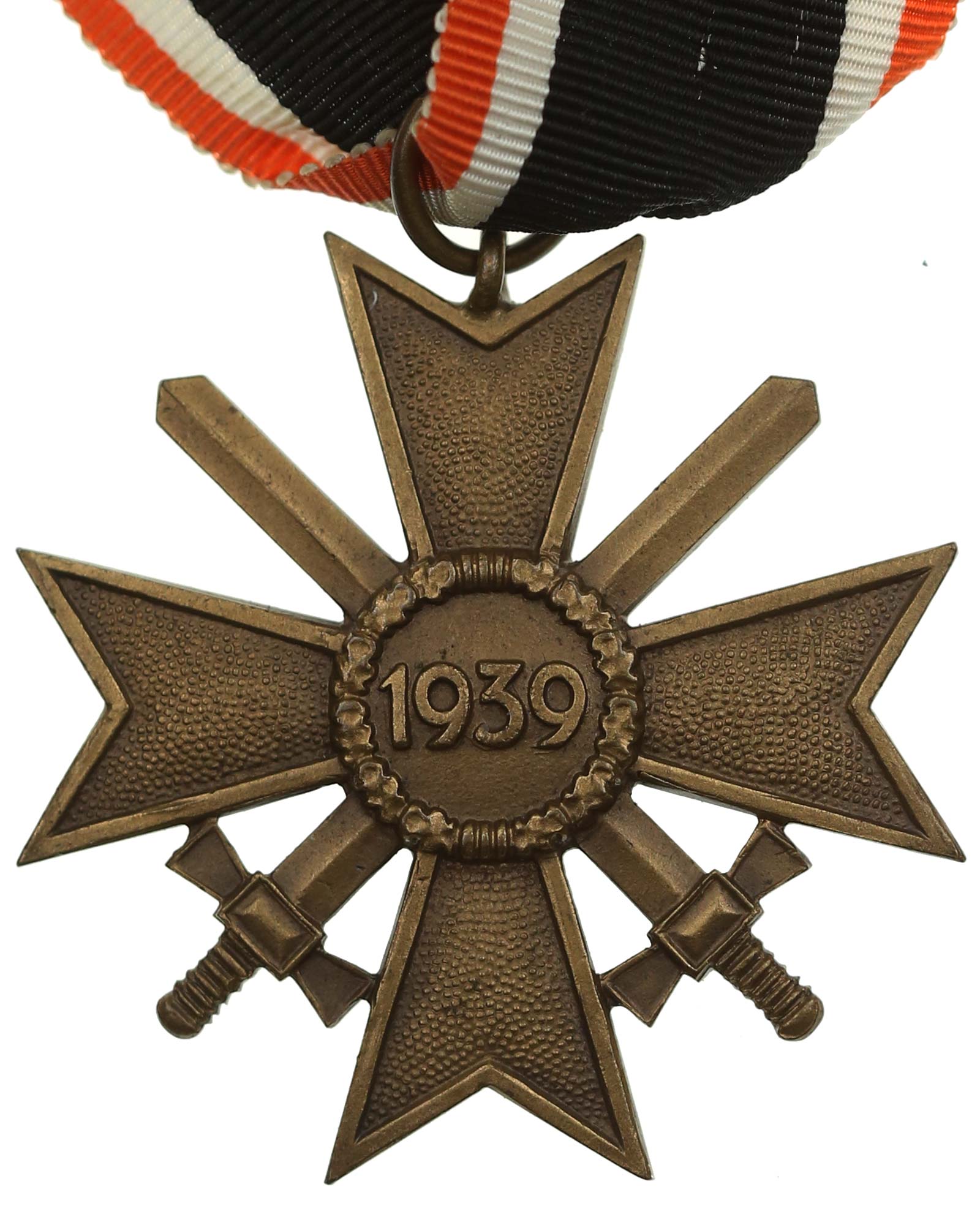 Kriegsverdienstkreuz mit Schwertern 2. Klasse 1939 am Band, Buntmetall bronziert.