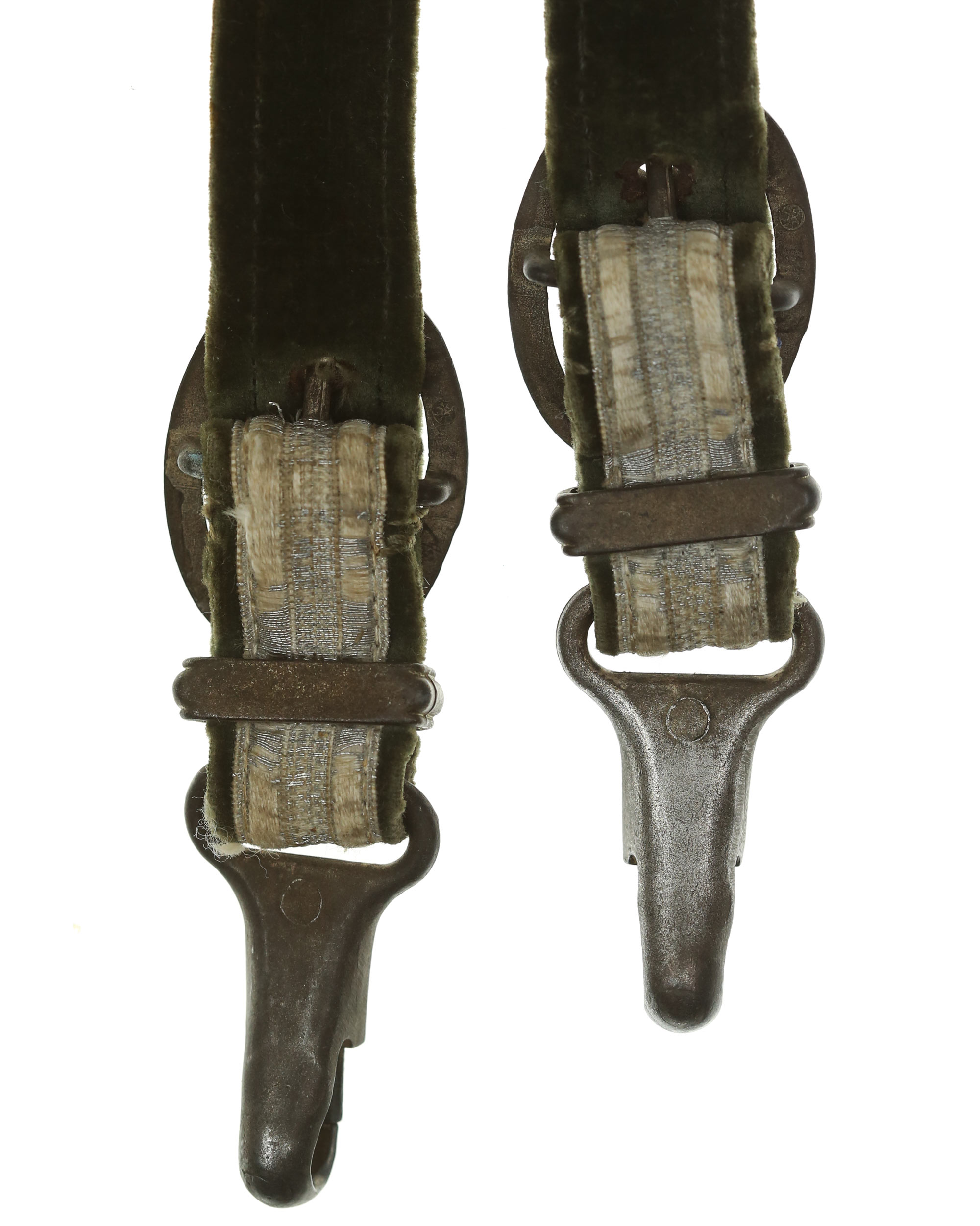 Zweiteiliges Gehänge silbergewirkt mit grünem Samt unterlegt
