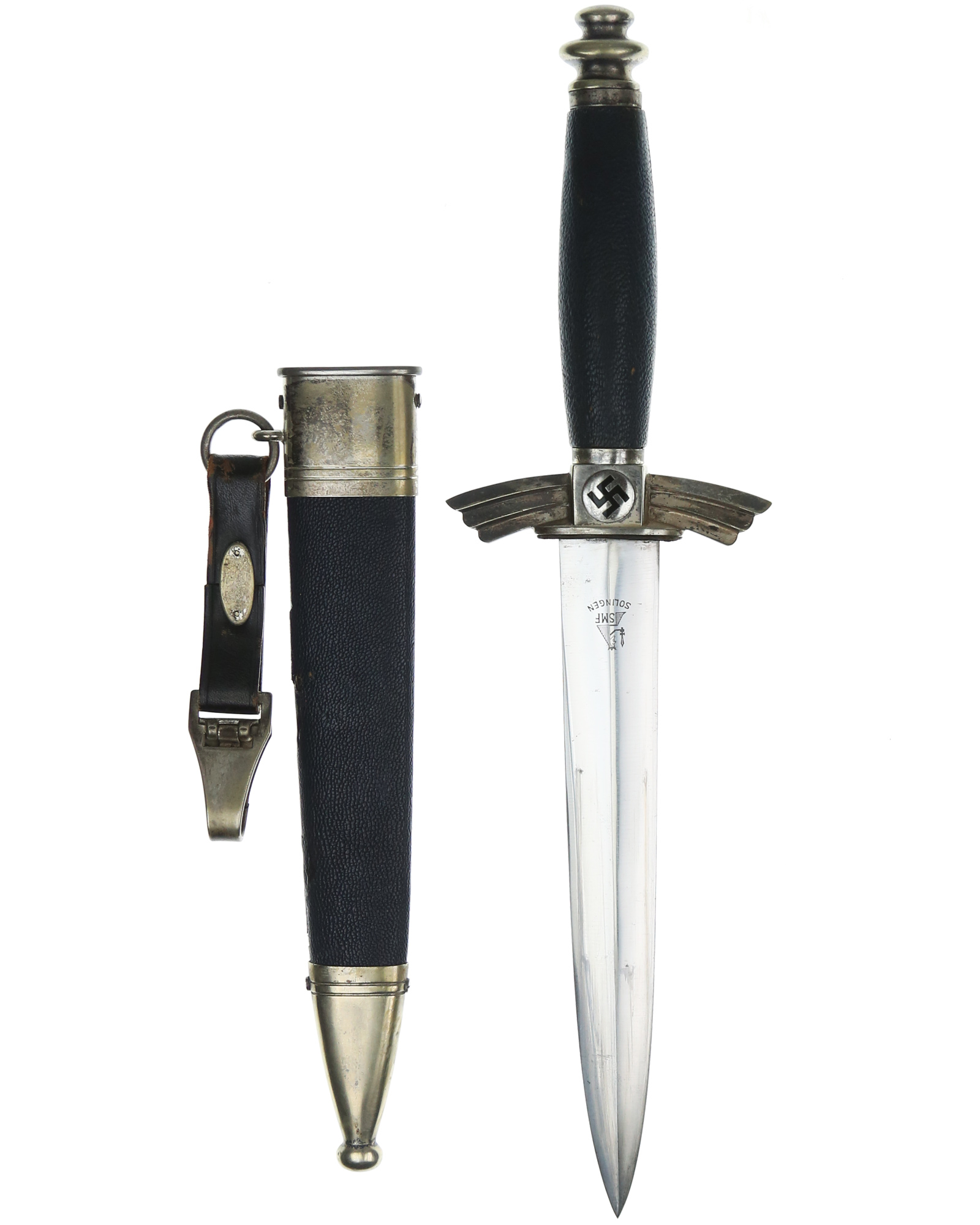 German NSFK [Nationalsozialistische Fliegerkorps] Glider Pilot´s Dagger. Model 1937. This NSFK example is of early construction and reflects choice overall condition. The mounts are all heavy nickel.