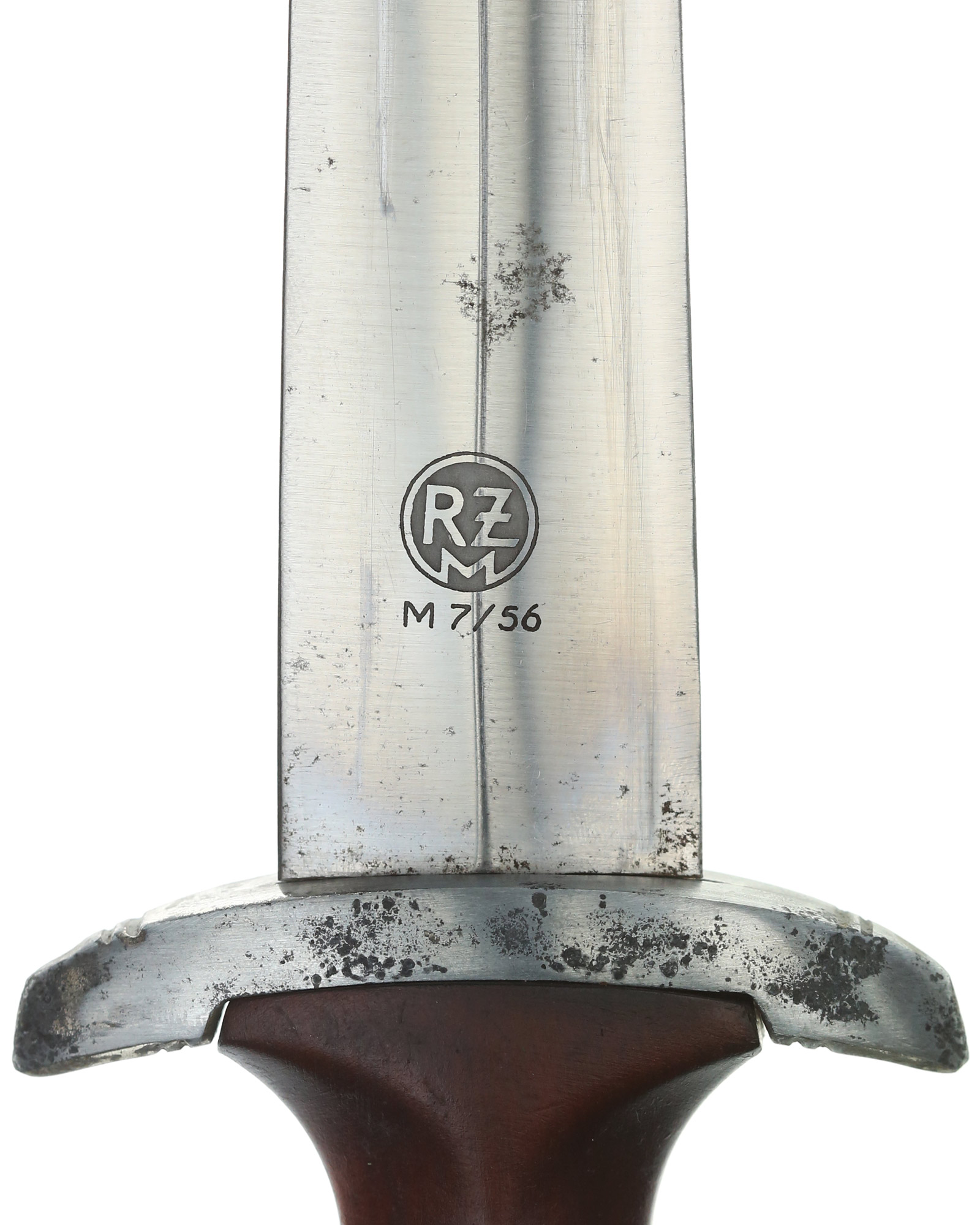 This SA [Sturmabteilung] Dagger is in very good condition. Late Model 1939-1942 with RZM Code. The total length is 37.4 cm. The Dagger has the maker mark on the blade: RZM M7/56 (C.D. Schaaff, Solingen).