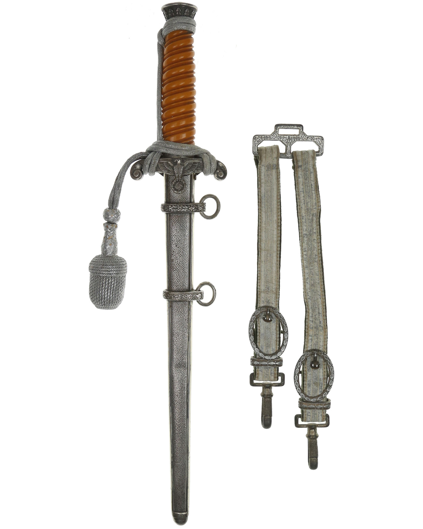 Heeres Offiziersdolch der Wehrmacht wurde ursprünglich von dem Berliner Künstler PAUL CASBERG (Pseudonym) entworfen. Das Tragen des Heeresdolches wurde am 4. Mai 1935 offiziell genehmigt. Für den Dolch wurde auch ein Aluminium Portepee und 7 unterschiedliche Gehänge entwickelt. Die Herstellung des Heeresdolches war am 27. Mai 1943 und das Tragen des Dolches am 05. September 1944 eingestellt worden. Ab dem 24. Dezember 1944 wurden den Offizieren befohlen, anstelle des Heeresdolches eine andere Waffe zu tragen. Da der Heeresdolch ein persönlicher Gegenstand der Offiziersbekleidung war, kauften meistens die Offiziere den Dolch für ihr eigenes Geld. Ein Heeresdolch hat damals ca. 11,50 RM (Reichsmark) gekostet.