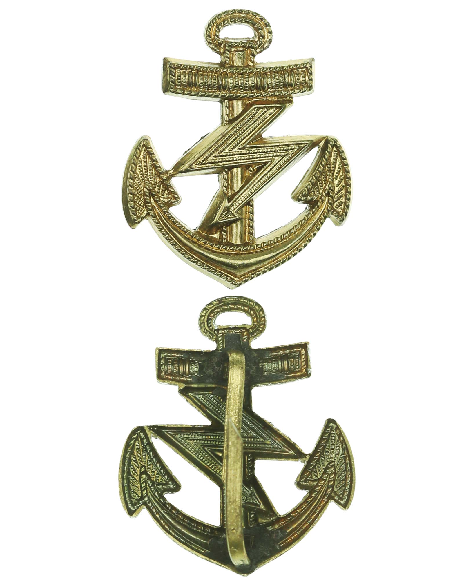 Grip: The grip is tightly wrapped with twisted brass wire. The crossguard has good detail to the fouled anchor center block. Acanthus leaves decorate the surfaces of both of the crossguard arms, and they end in nipple-centered buttons.