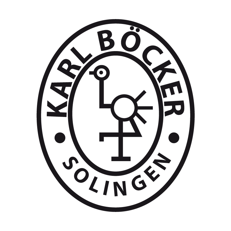 The logo of Karl Böcker consists of a circular emblem with the text "KARL BOECKER" along the upper arc and "SOLINGEN" along the lower arc. In the center is a stylized "KB" monogram. The logo is in dark gray on a transparent background, symbolizing tradition and quality, typically etched on blades.
