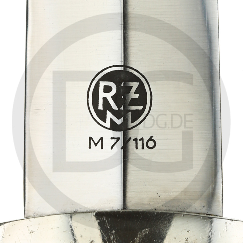 The logo of Frenzel Franz (FRENIXWERK) typically shows the script “Franz Frenzel Nixdorf” or “FRENIXWERK” in a clear, stretched font, often accompanied by the RZM M7/116 marking on the blades of the daggers. The design conveys precision and tradition and was typically etched on blades.