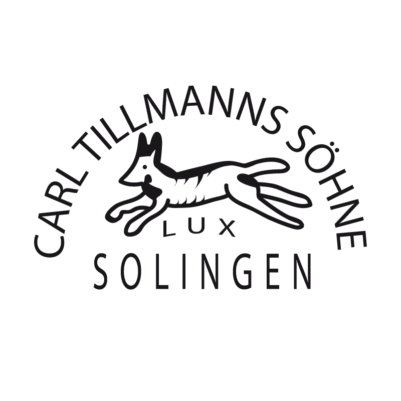 The logo of Tillmann Carl & Söhne (LUX) features the arched text "CARL TILLMANNS SÖHNE" at the top, "LUX" in the middle with a running dog or fox above it, and "SOLINGEN" at the bottom. The logo is in dark gray on a transparent background, symbolizing dynamics and tradition.