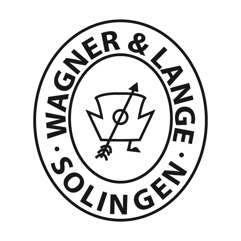 The logo of Wagner & Lange is a circular emblem in dark gray on a transparent background. The text "WAGNER & LANGE" is placed along the upper arc, and "SOLINGEN" along the lower arc. In the center is a stylized shield or emblem with an arrow through it, symbolizing precision and tradition.