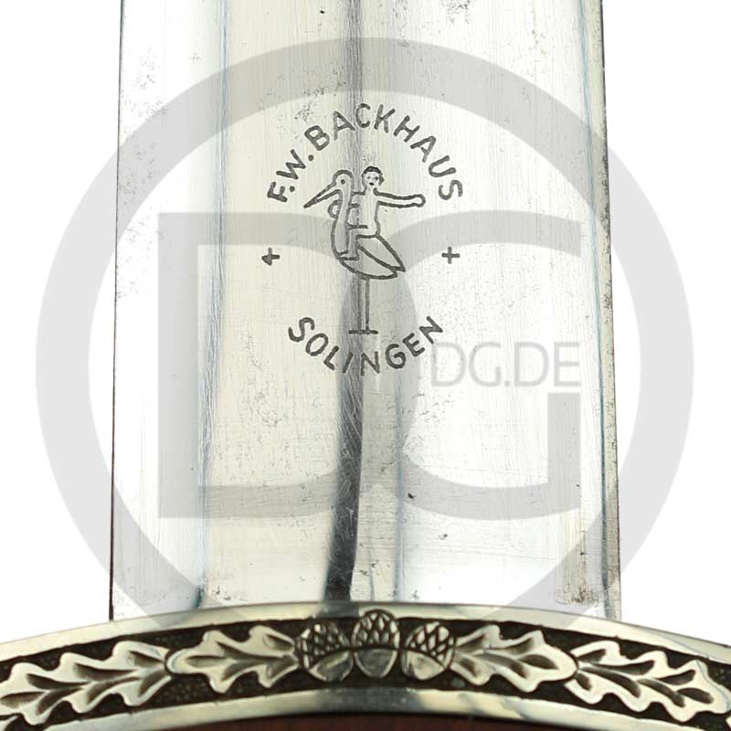 The Friedrich Wilhelm Backhaus steel goods works was founded in 1827 in Solingen, placing it among the long-established producing firms of the region. Throughout the 19th and early 20th centuries, Backhaus developed as a mid-sized maker of cutting tools, blades, and household steel goods. In the 1930s, as demand for standardized edged weapons grew, Backhaus became associated with political-organization production as well.