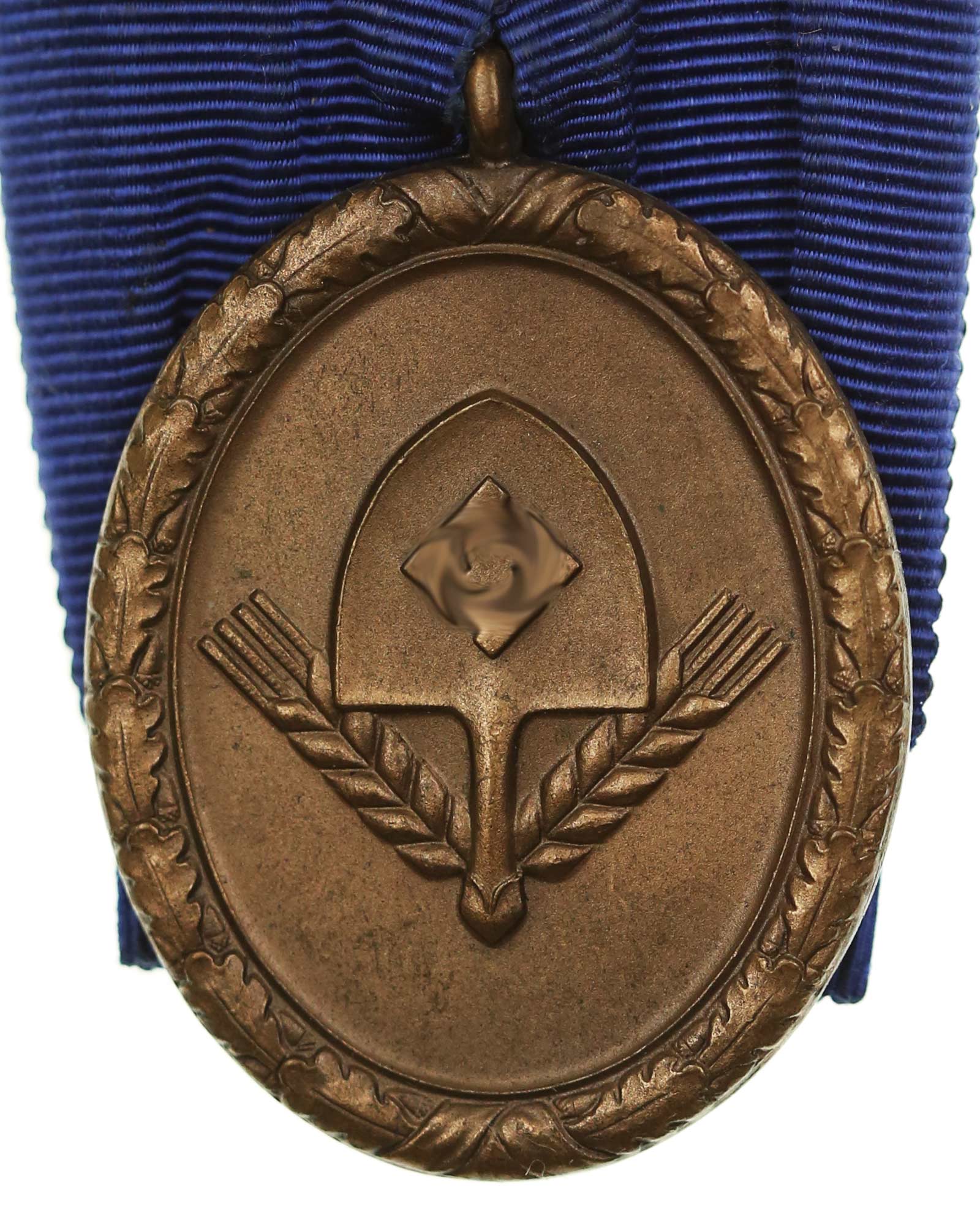 RAD Long Service Award for Men; 4th Class - Bronzed aluminum, 32.60 mm x 40.16 mm, original bow ribbon with pinback, in mint condition.