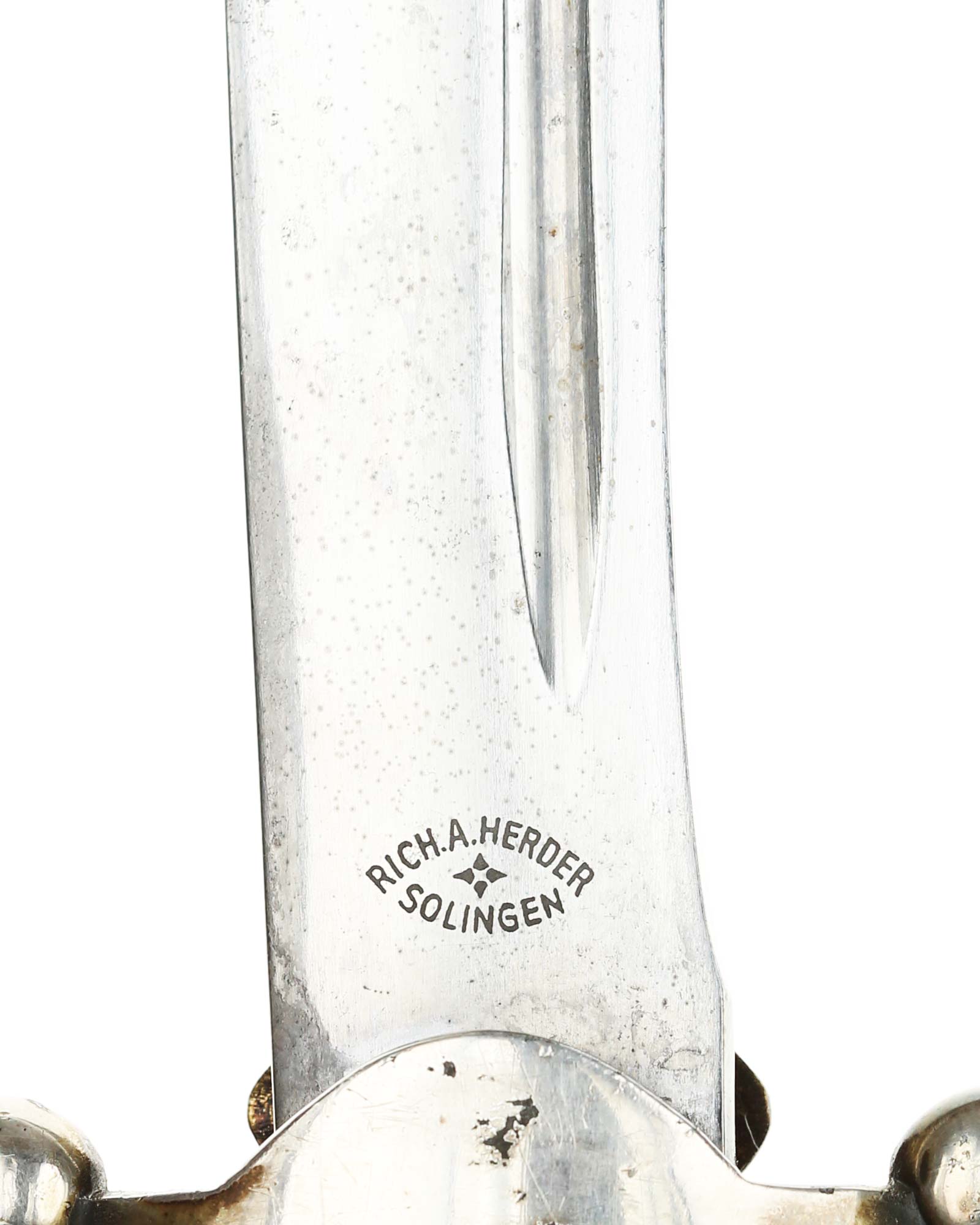 This RAD Officer's Dagger by Herder is in EXC++ condition. Model 1937 for Leader. The total length is 39.9 cm. The Hewer has the rare maker mark on the blade: Rich. A. Herder Solingen.