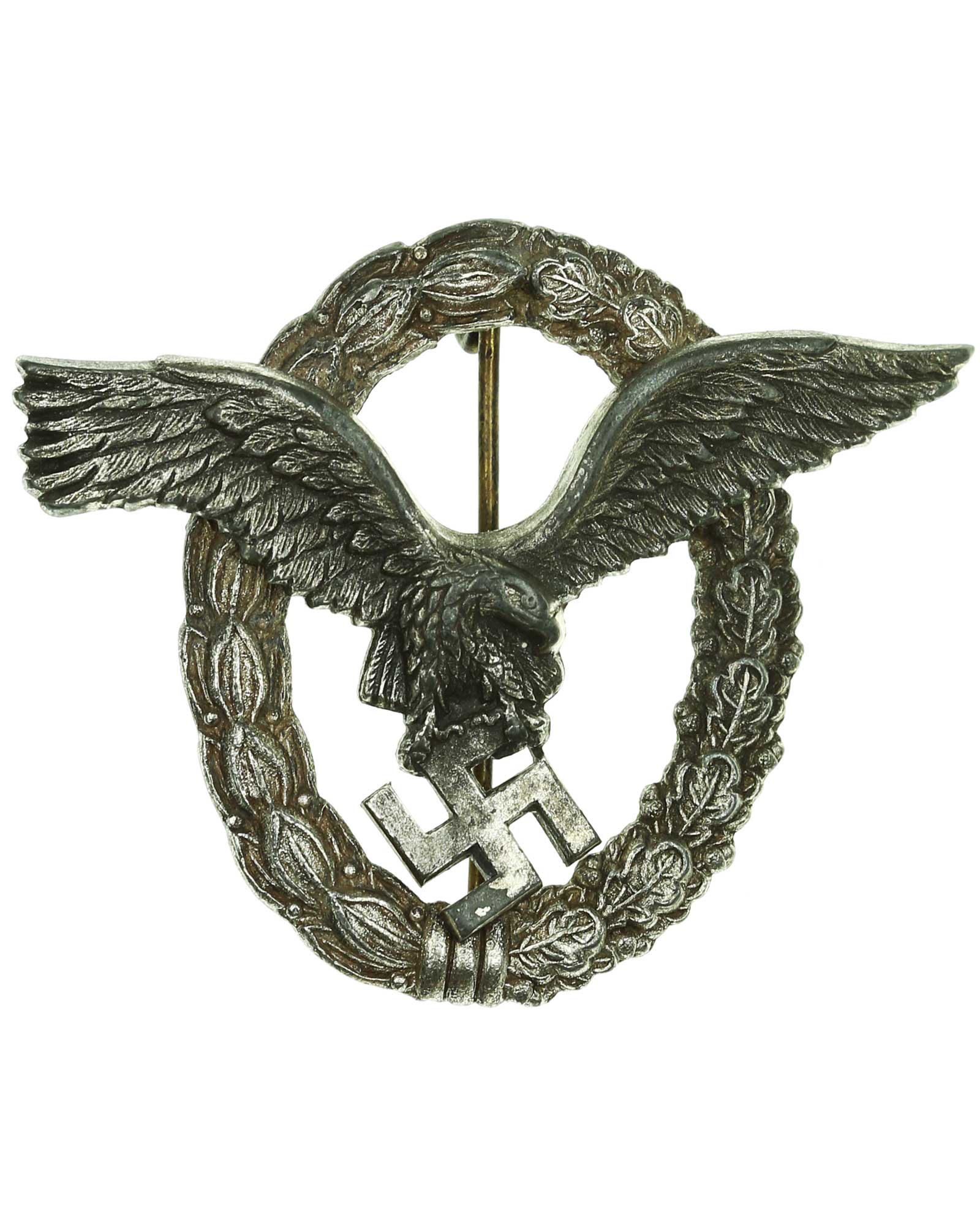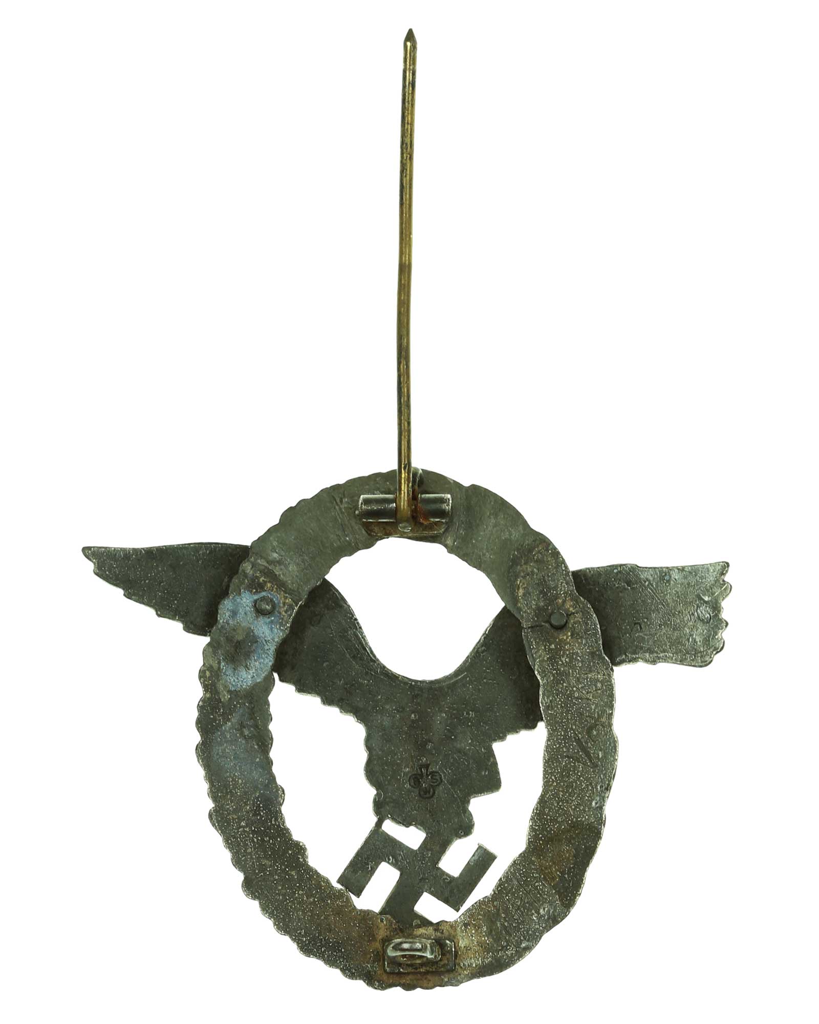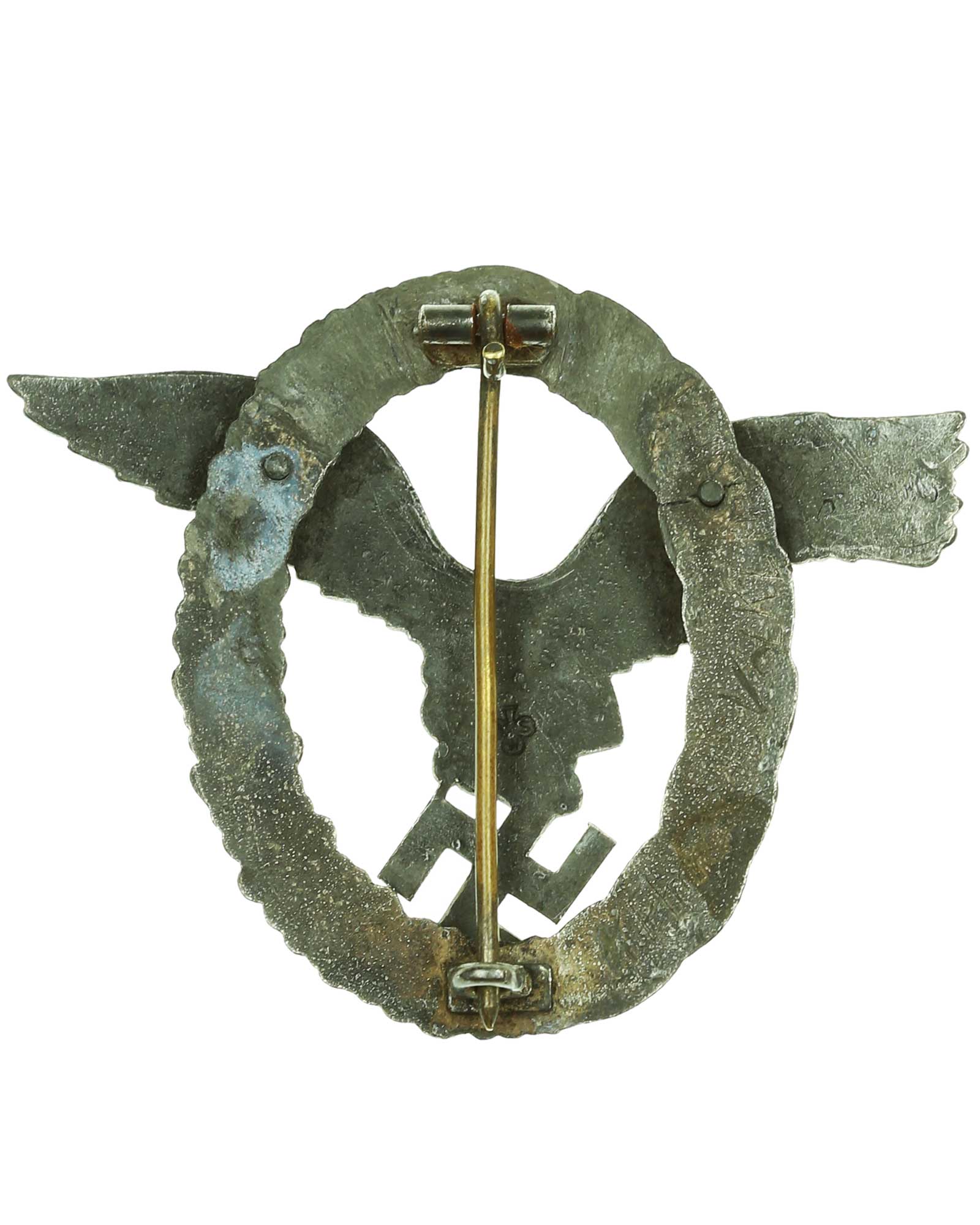 Pilot's badge 1935 by BSW (Brüder Schneider Wien). Reverse with manufacturer: BSW. Total weight 31 g. Dimensions: 42.86 (66.33) x 53.45 mm.