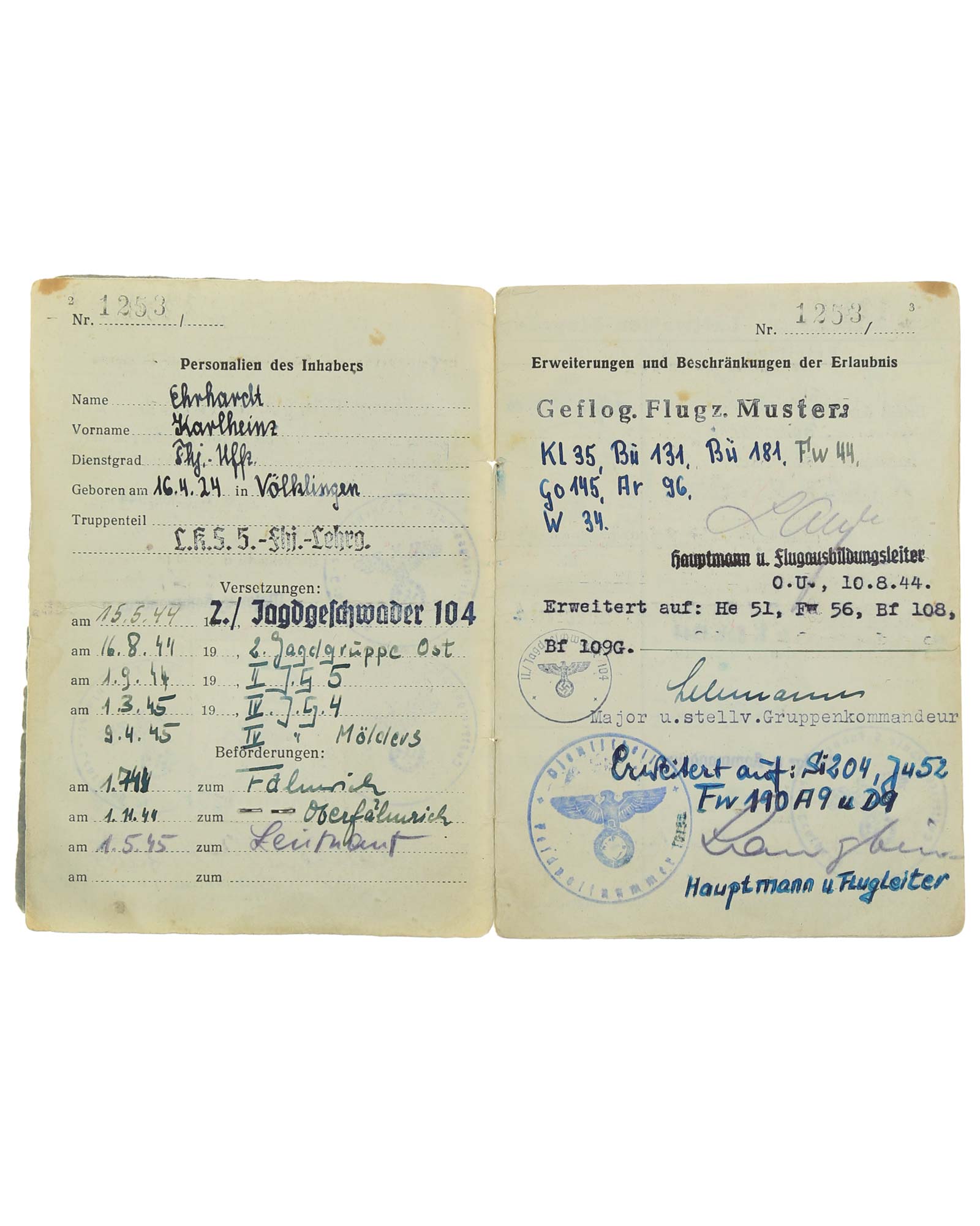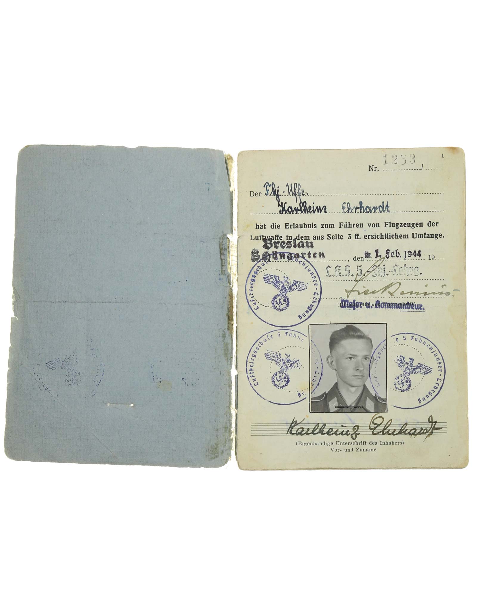Air Force pilot's license. The Luftwaffe pilot license is issued on 01.02.1944 by L.k.S. 5.-fhi.-Lehrg., With photo and all pages.