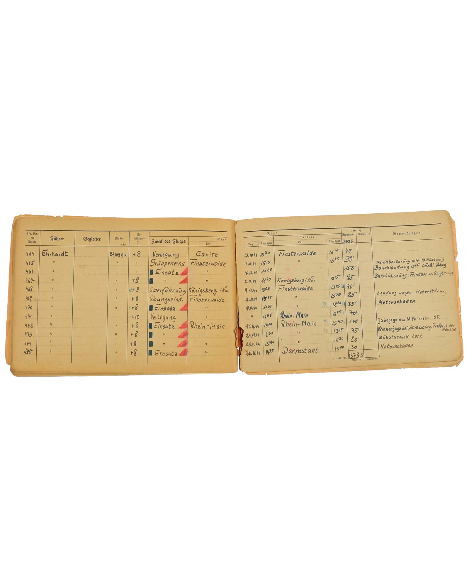 Luftwaffe - Flight logbook for an airman, started on 7.08.1943 and last flight on 14.02.1943, a total of 499 registered flights.