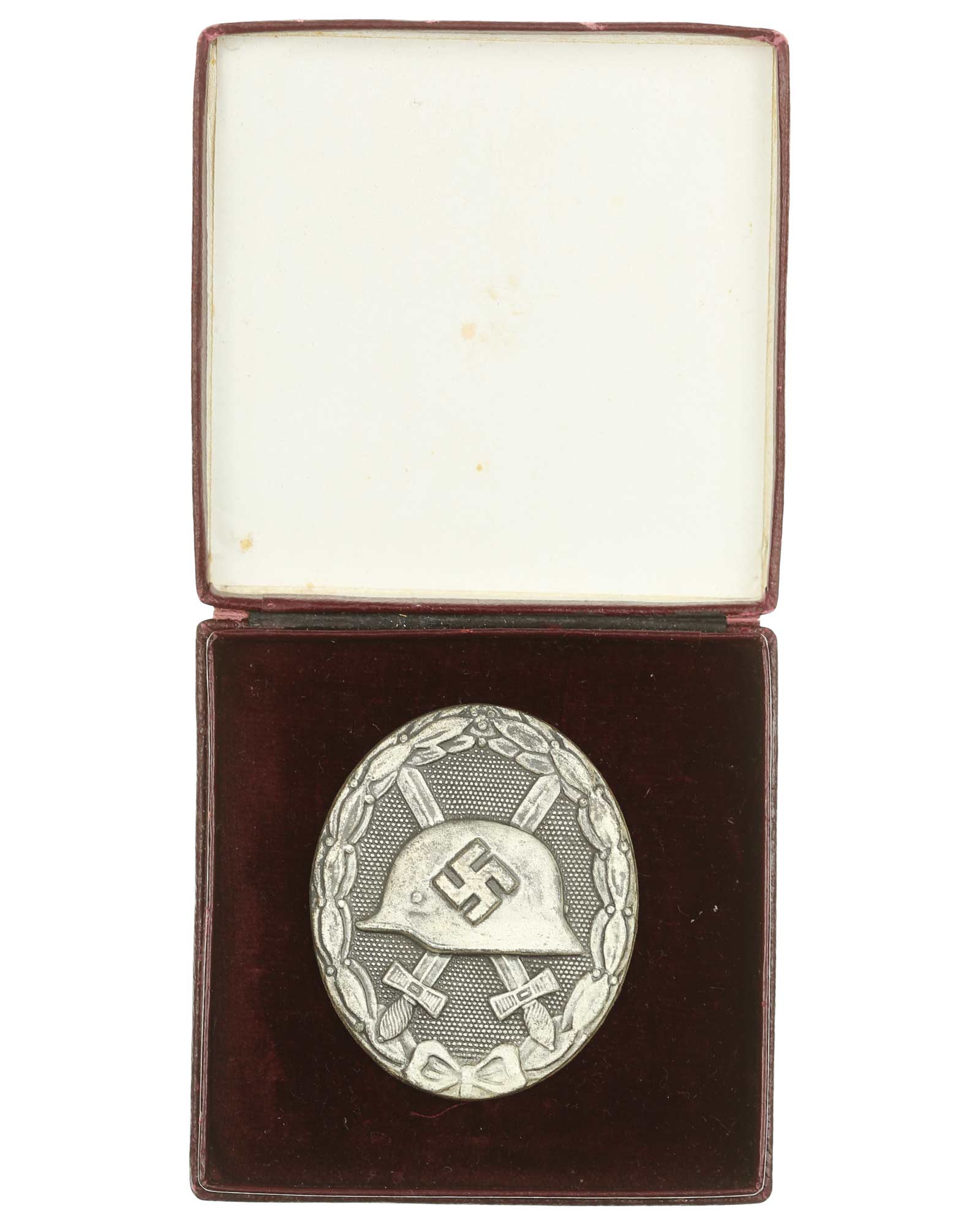 An Early Wound Badge; Silver Grade - In tombac, with marked Hymen & Co. (L/53), vertical pinback. The condition is EXC++. Total weight 25 g. Dimensions: 36,52 x 43,85 mm.