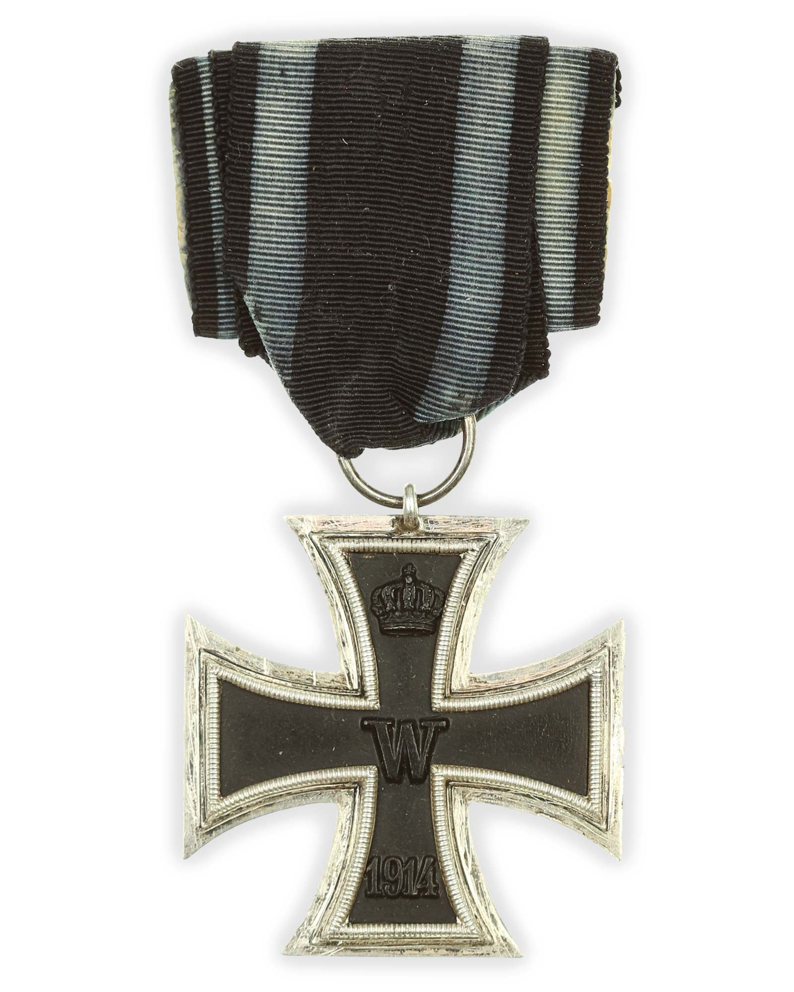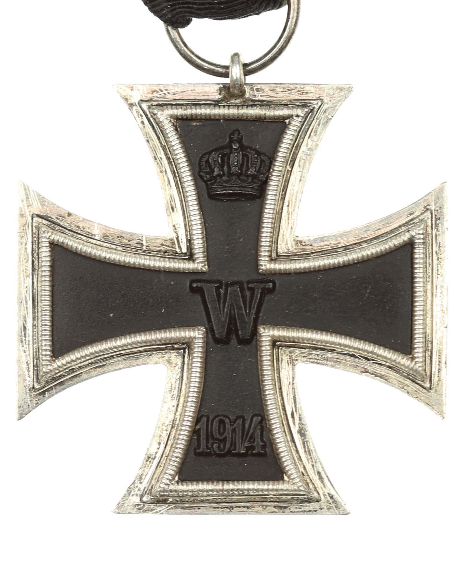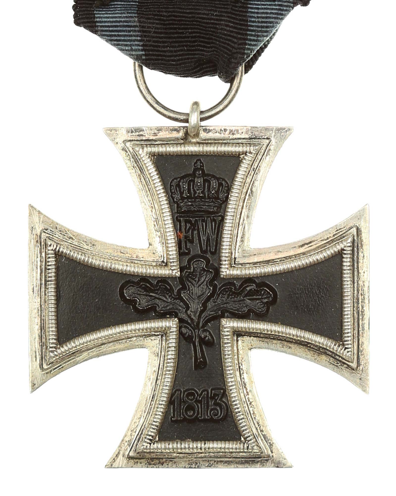 This Imperial 2nd Class Iron Cross is in EXC+ condition, the black field is still perfect on both sides. The obverse bears a Prussian crown over the initial, “W”, and the date, “1914”. The reverse features a Prussian crown over the cipher, “FW”, with oak leaves in the center and a date of “1813” at the lower leg. Total weight 20 g. Dimensions: 43,46 x 43,34 mm.