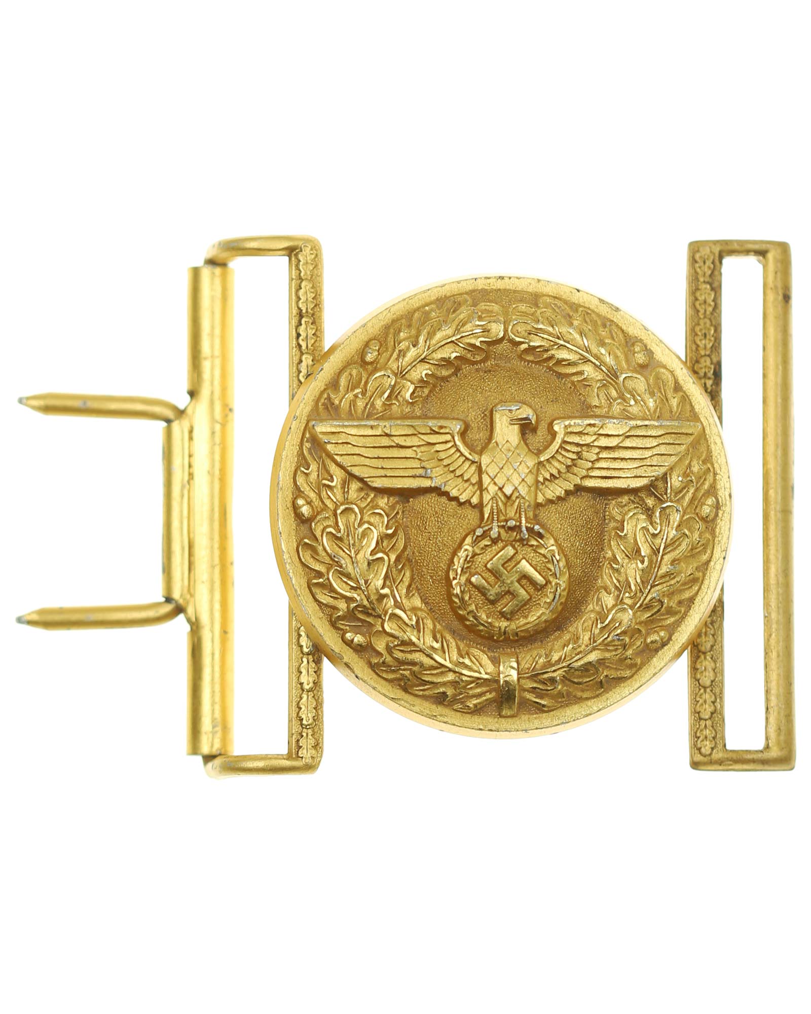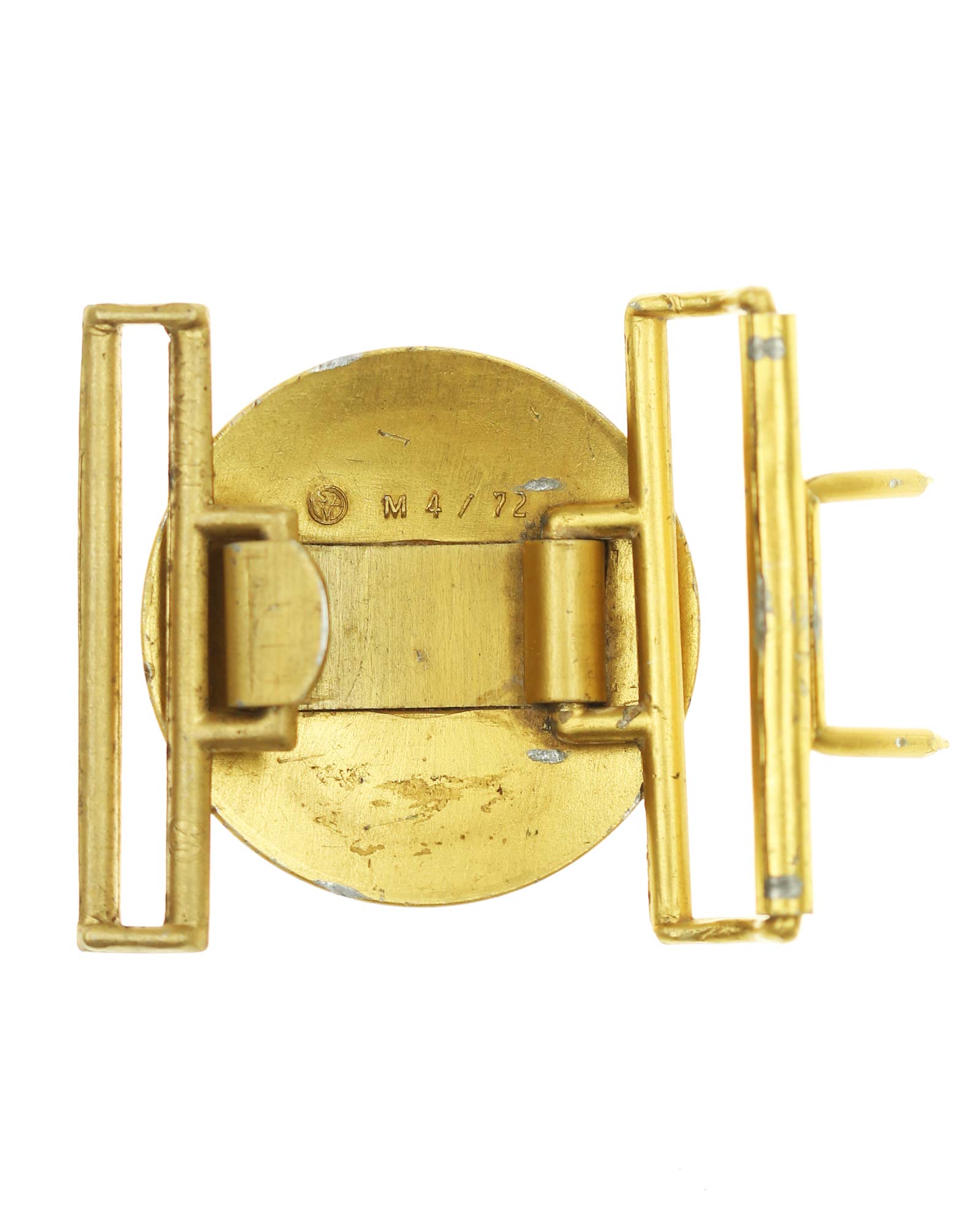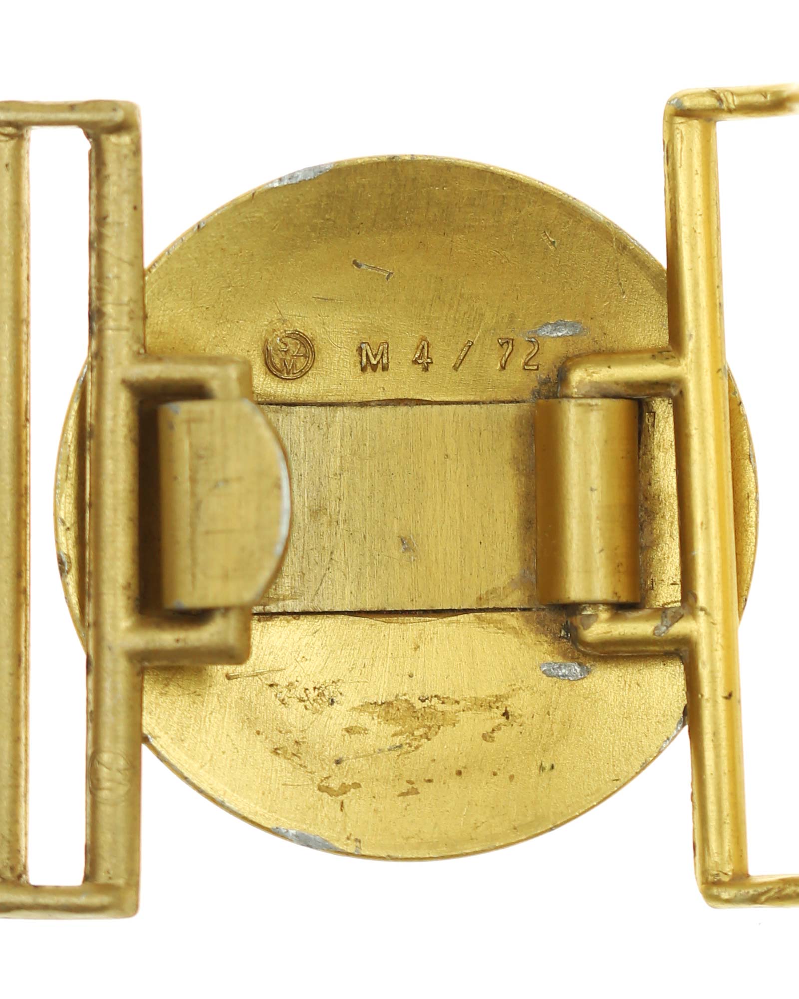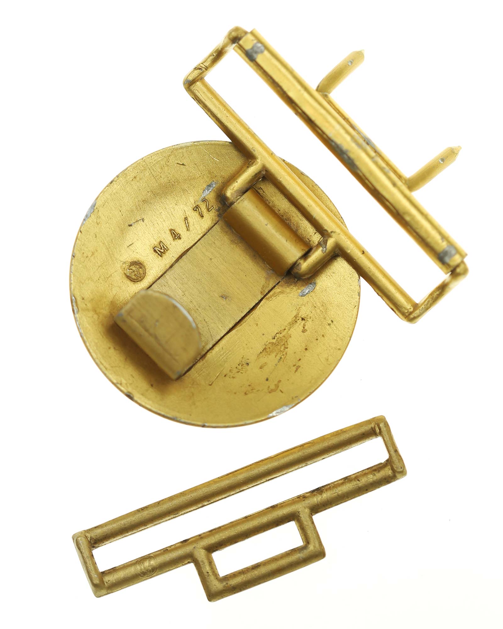 NSDAP Political Leader's Belt Buckle in aluminum design, gold anodized. On the front is the eagle with a swastika. Reverse is with RZM manufacturer RZM M4/72 - Wilhelm Deumer, Lüdenscheid. Total weight 43 g. Diameter: 57 mm.