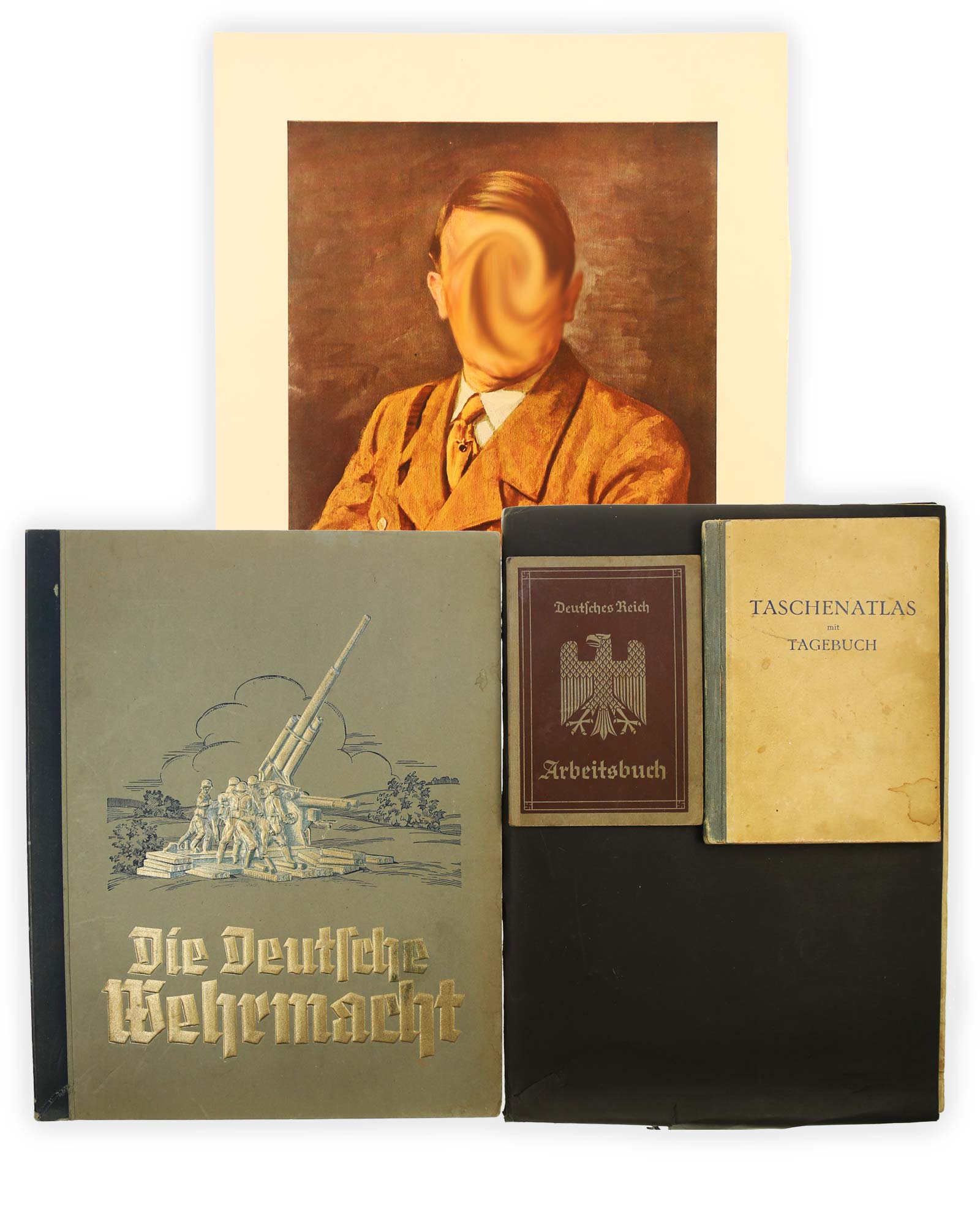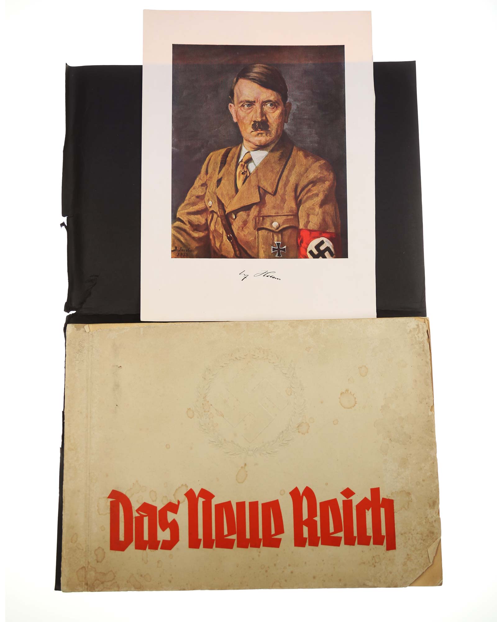 Workbook, pocket atlas with diary, cigarette picture album: The German Wehrmacht, scrapbook: The New Reich. A sequence of images of our time. Collector's picture album. Image: Adolf Hitler, by Jacobs.