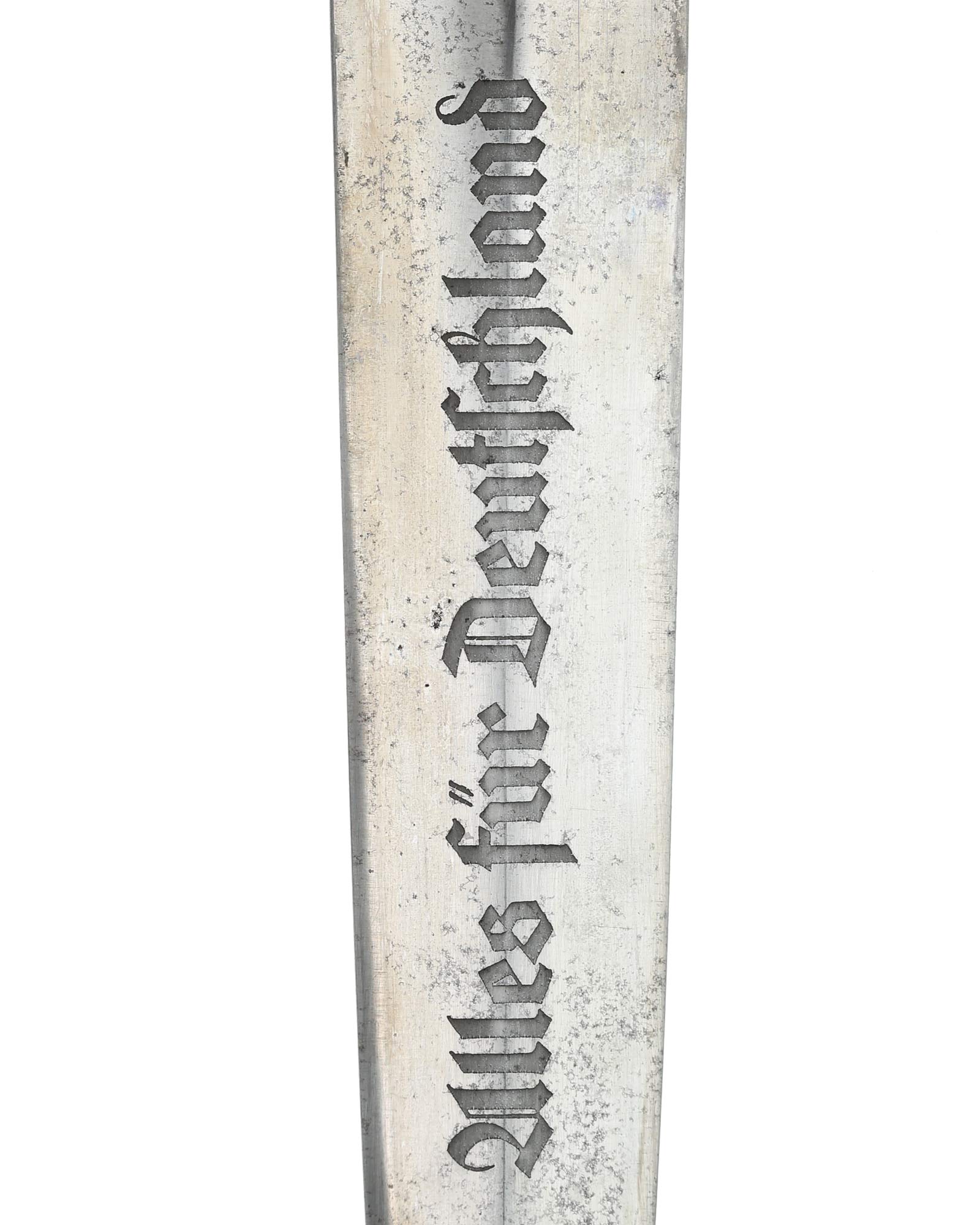 Blade: The blade of this example is in exc+ condition. The SA motto is nice and crisp. The reverse of the blade is matching etched on the ricasso with a double RZM circle with shading in the center. It is positioned above the code for the Rich. Plümacher Solingen maker, «M7/83». The blade shoulders perfectly meet the lower crossguard contour.
