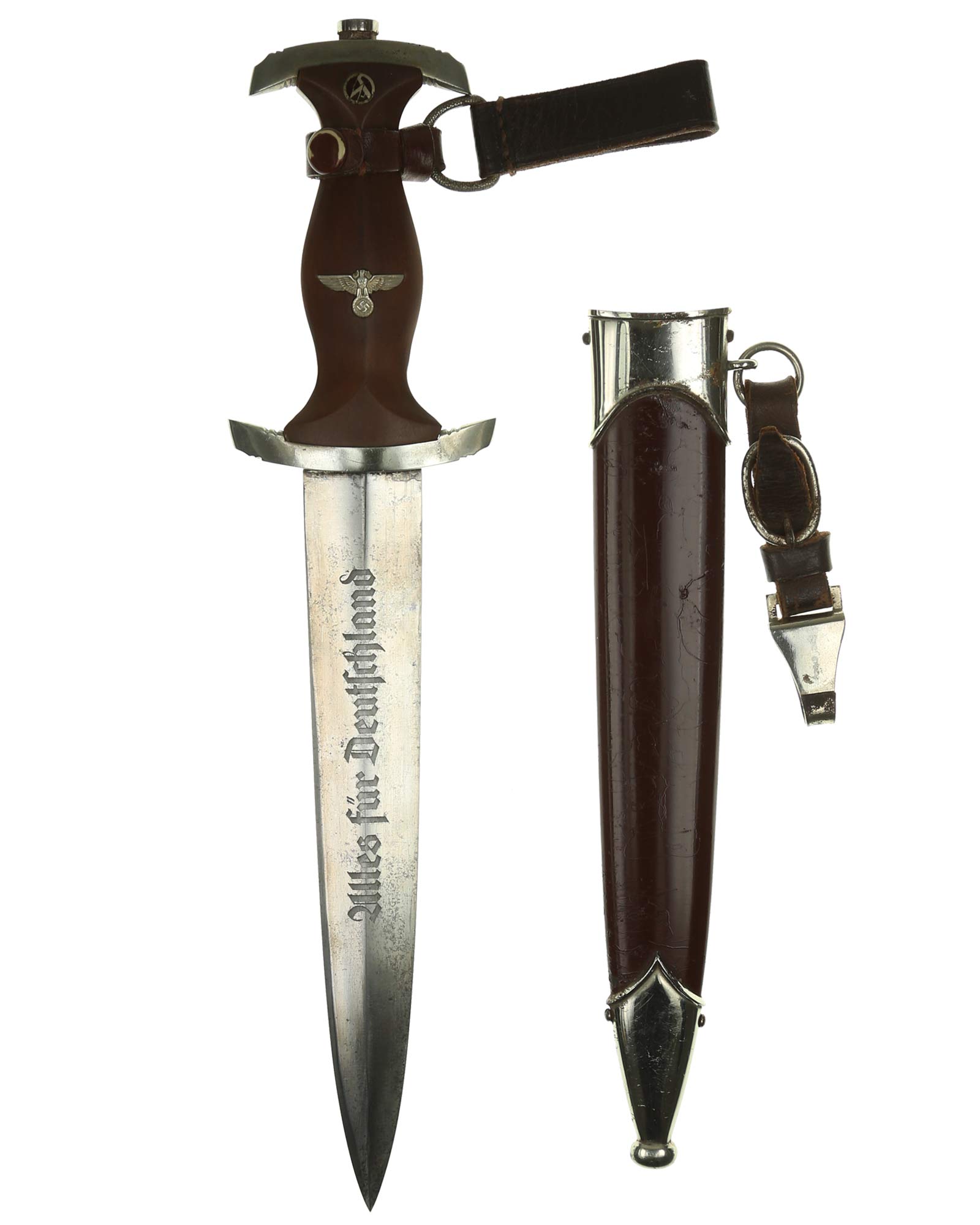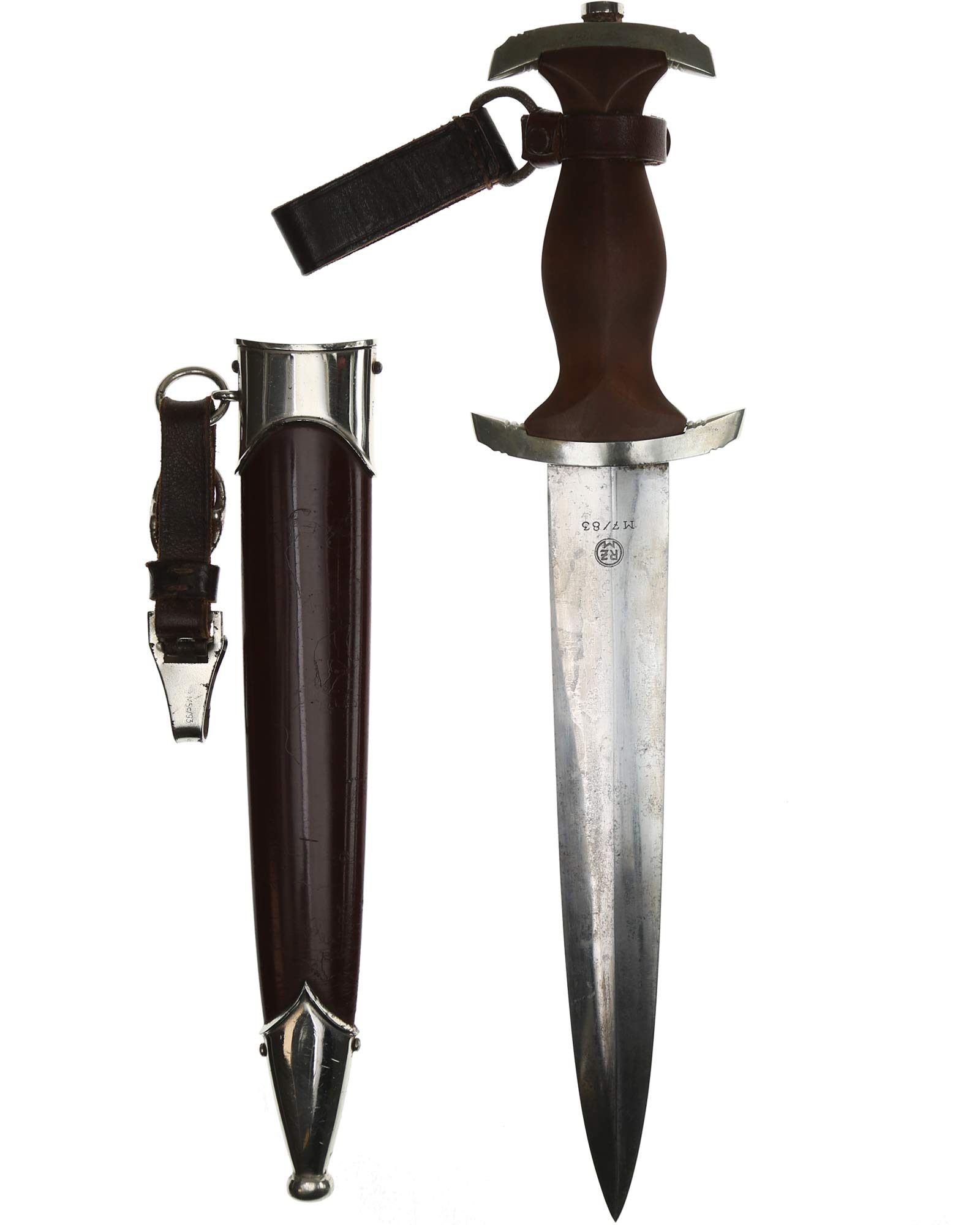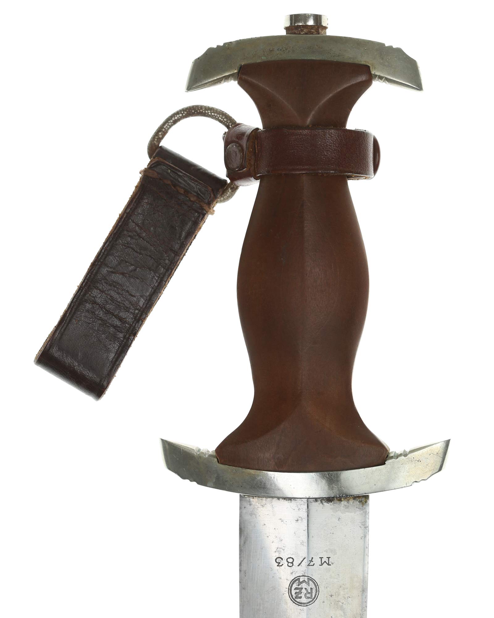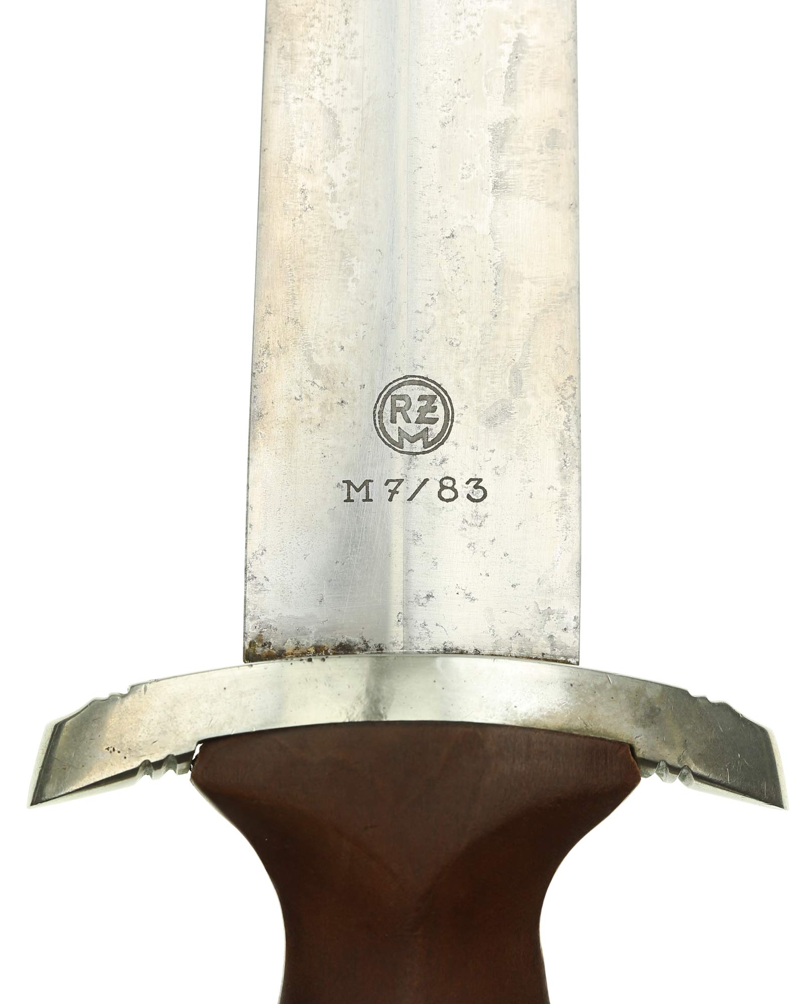 This SA [Sturmabteilung] Dagger is in EXC++ condition. Model 1939-1942. The total length is 37.3 cm. The Dagger has the rare RZM Code on the blade: RZM M7/83 (Richard Plümacher & Sohn Solingen). Leather Hanger marked with RZM M5c/93 (Paulmann & Crone Lüdenscheid).