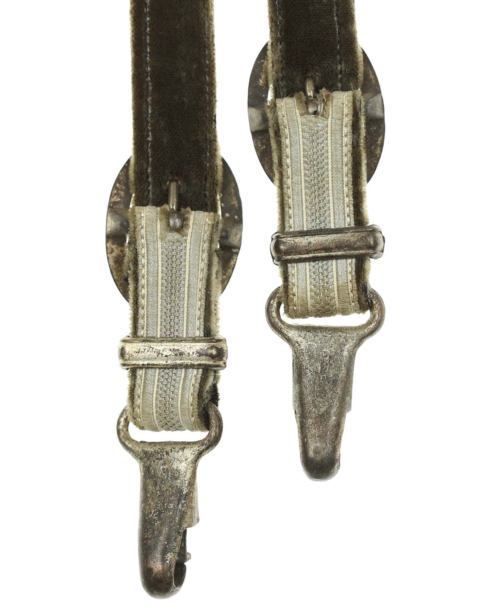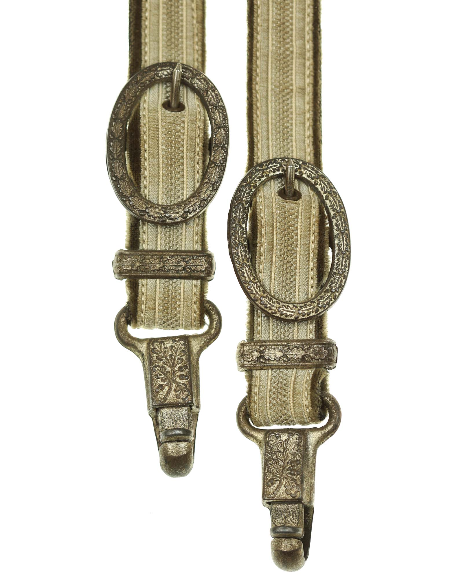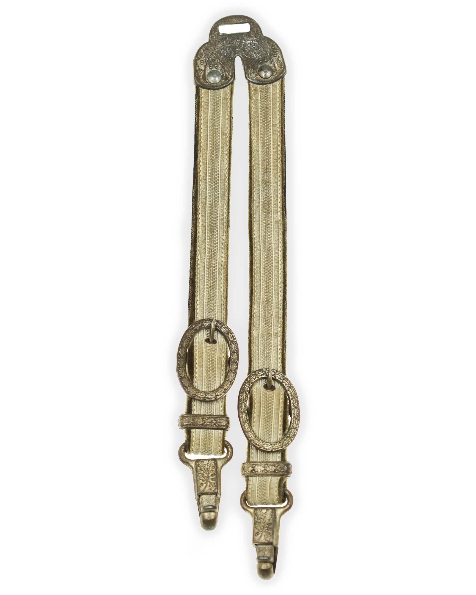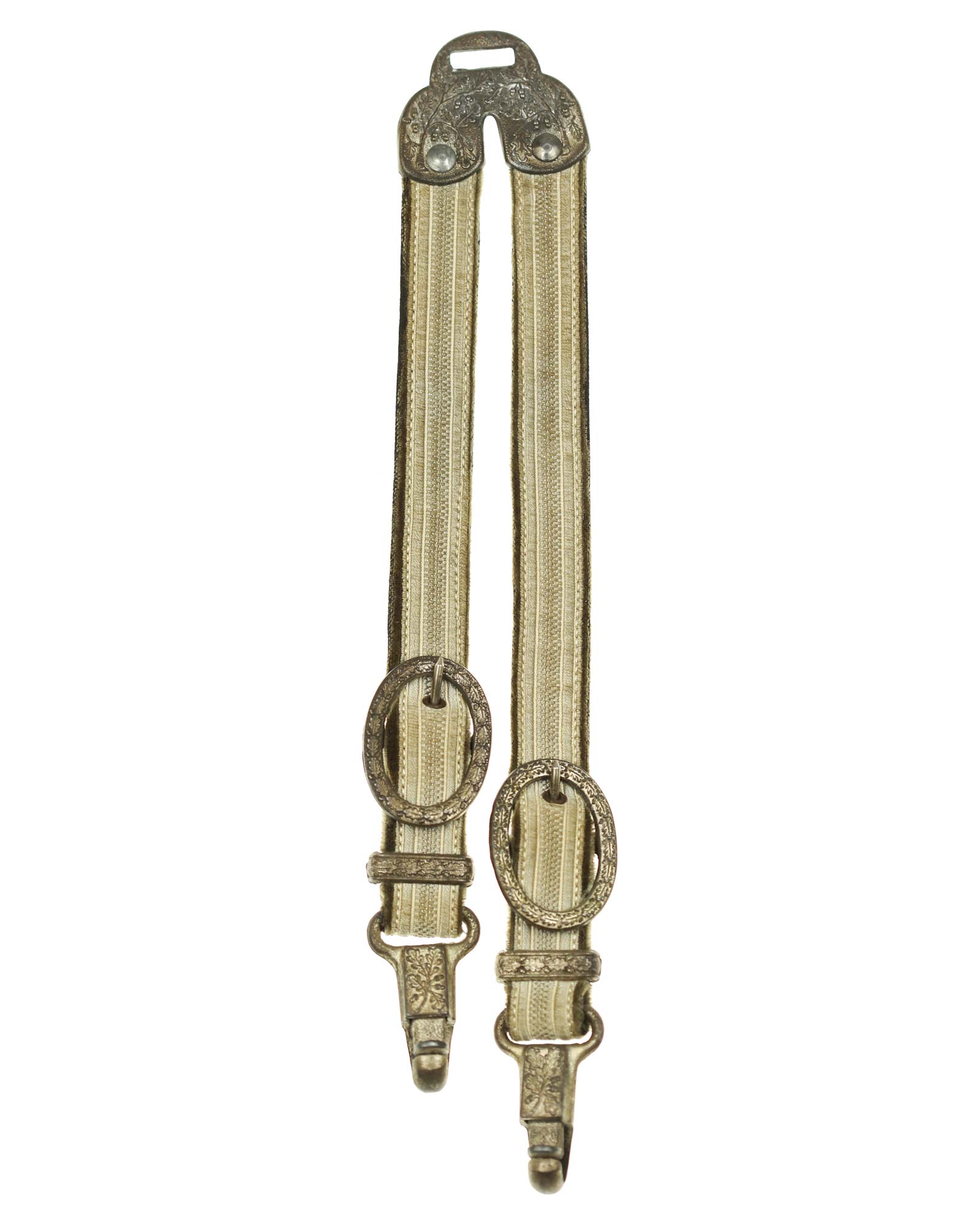 Hangers for Army Officer’s Dagger in Deluxe-Edition. Two-piece silver hanger cast lined. Back marked with DRGM.
