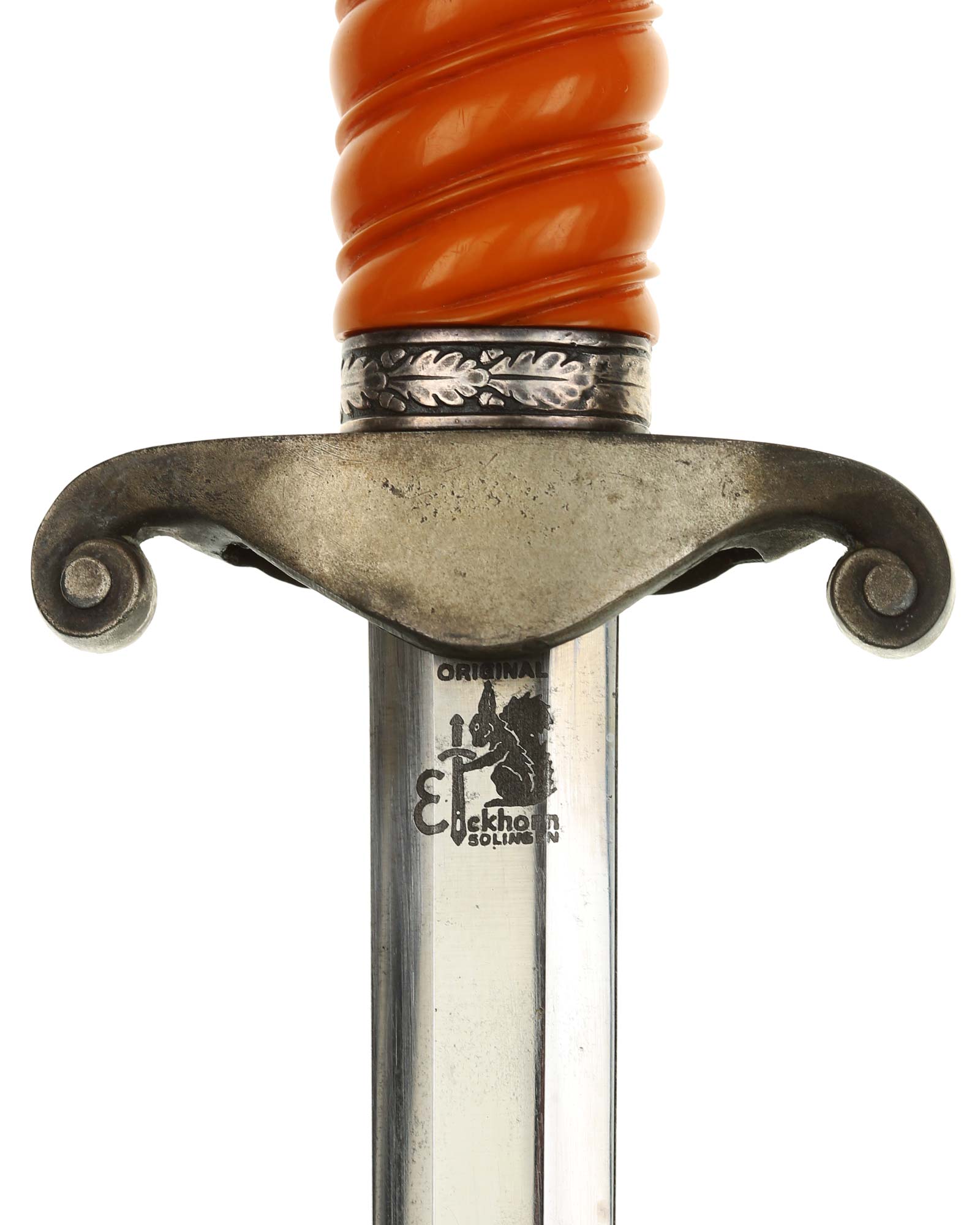 This Army Officer's Dagger is in Near Mint condition. Model 1935. The total length is 39.8 cm. The Dagger has the maker mark on the blade: Original Eickhorn Solingen.