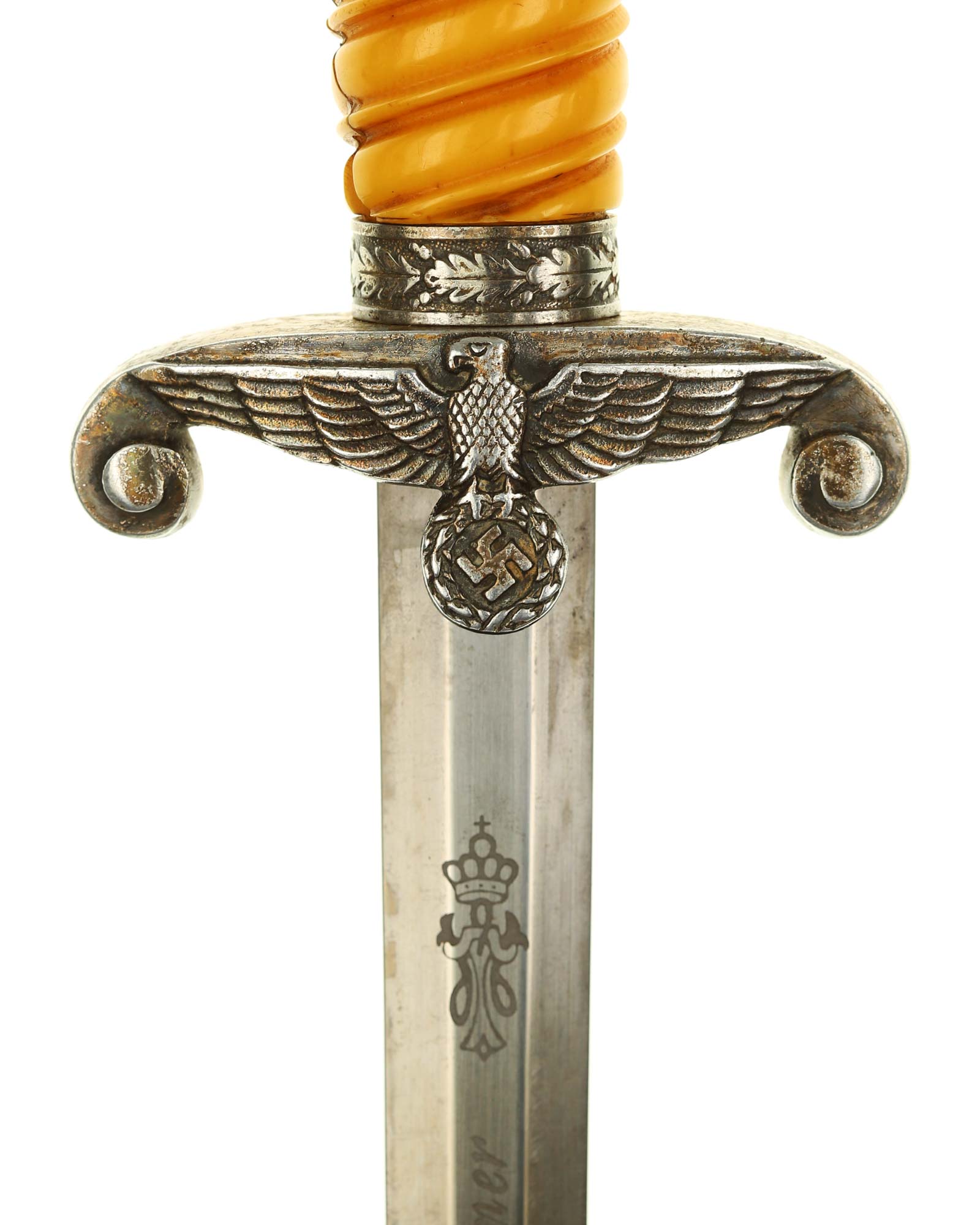This Army Officer's Dagger is in EXC+ condition. Model 1935. The total length is 40.0 cm. The Dagger has the maker mark on the blade: Carl Eickhorn Solingen.