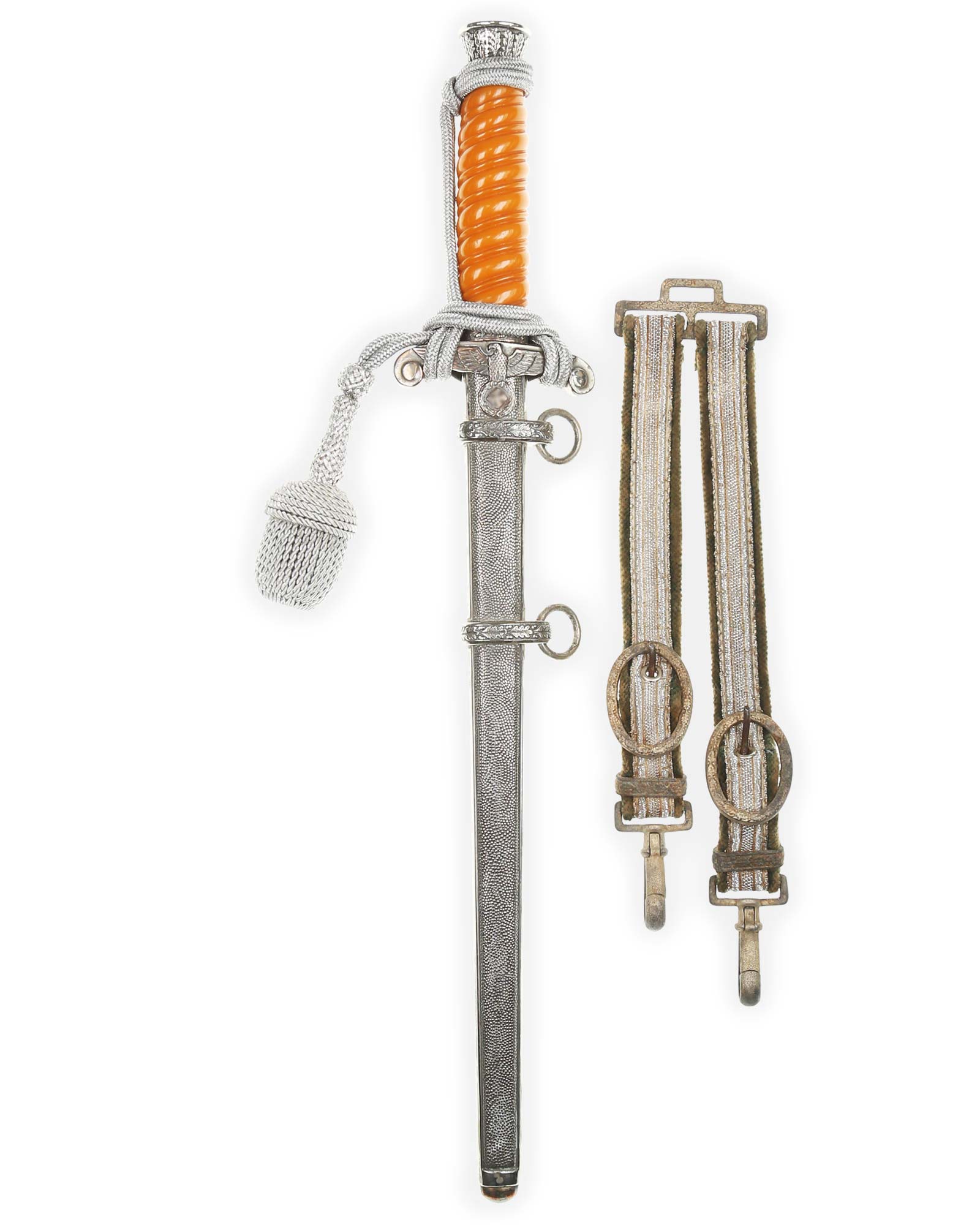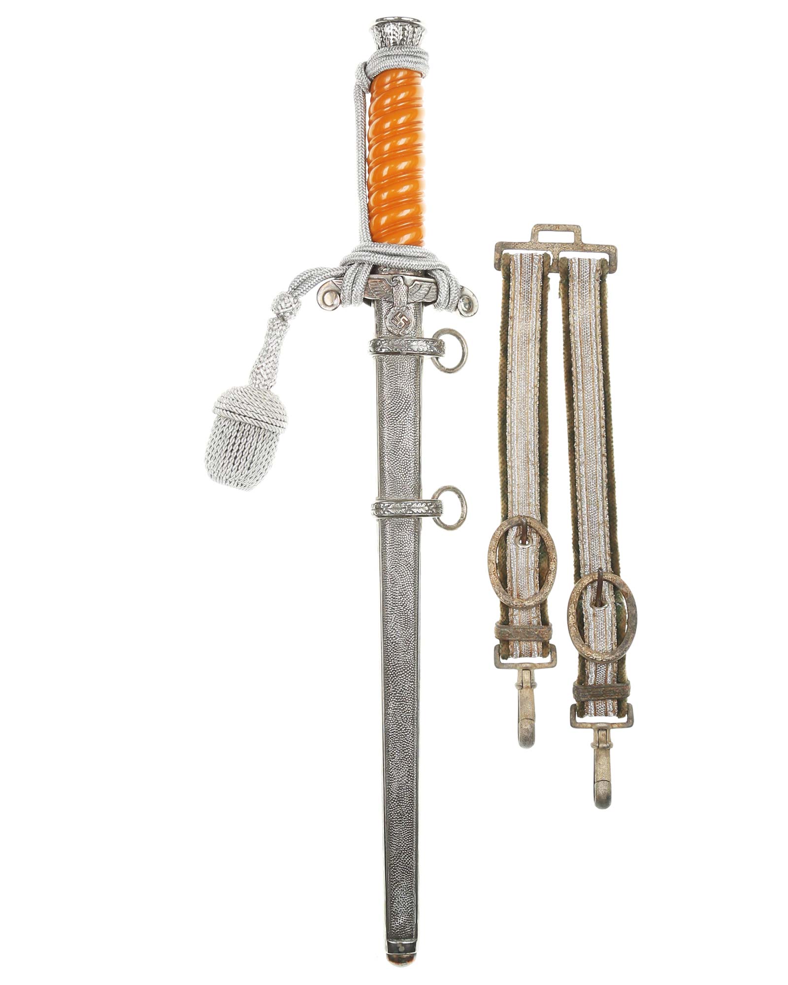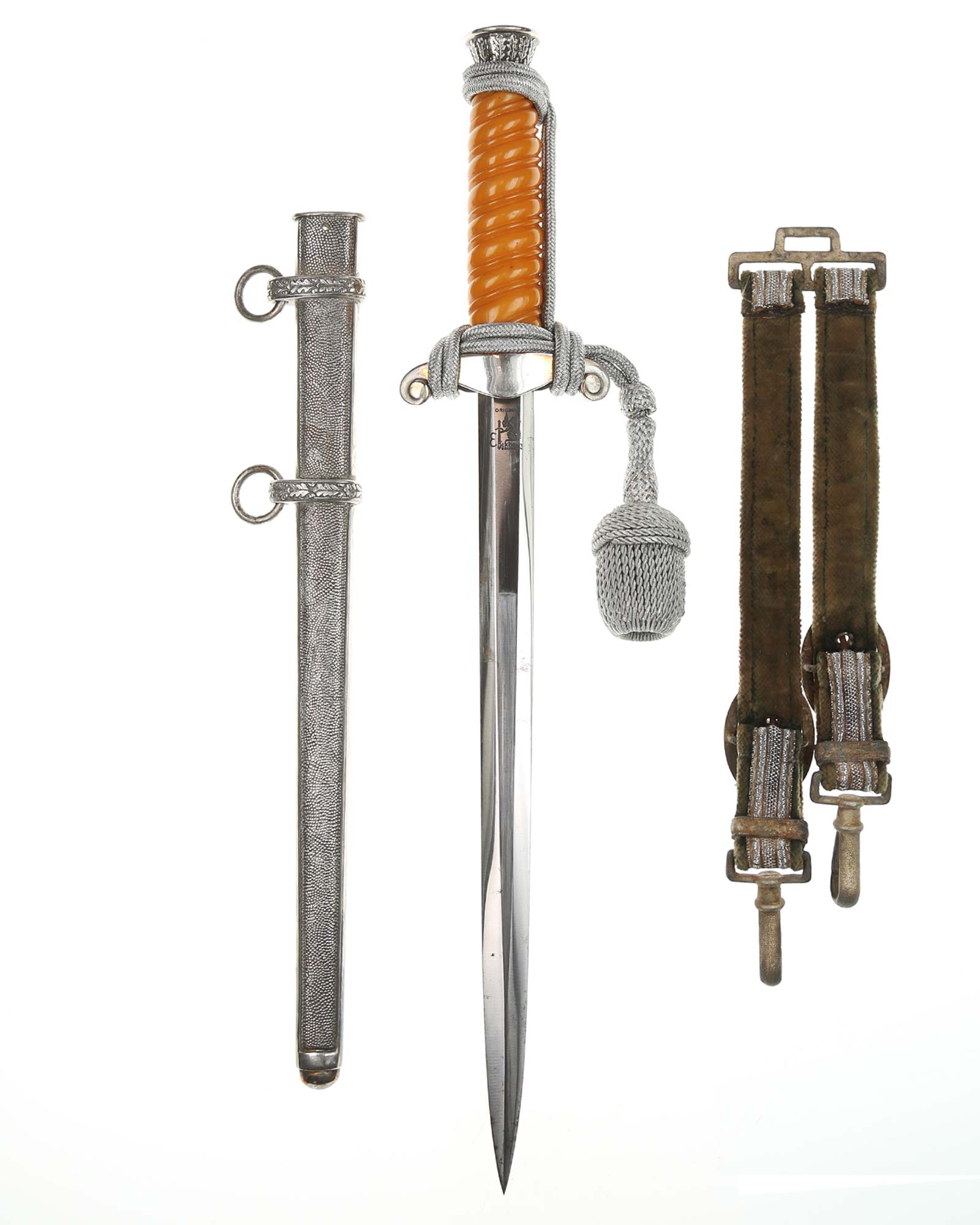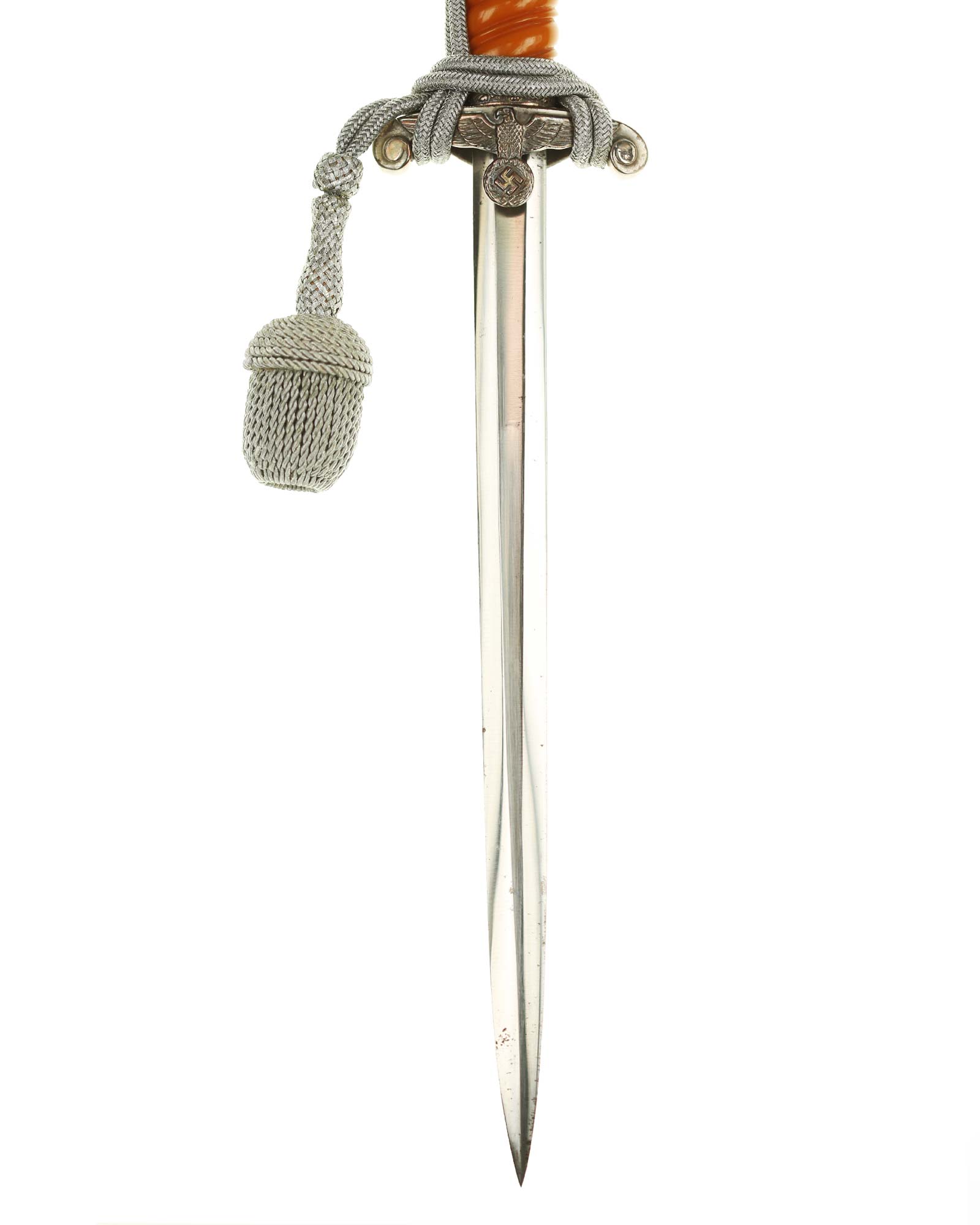 This Army Officer's Dagger is in mint condition. Model 1935. The total length is 40.0 cm. The Dagger has the maker mark on the blade: Carl Eickhorn Solingen. Dagger with Hangers and Portepee.